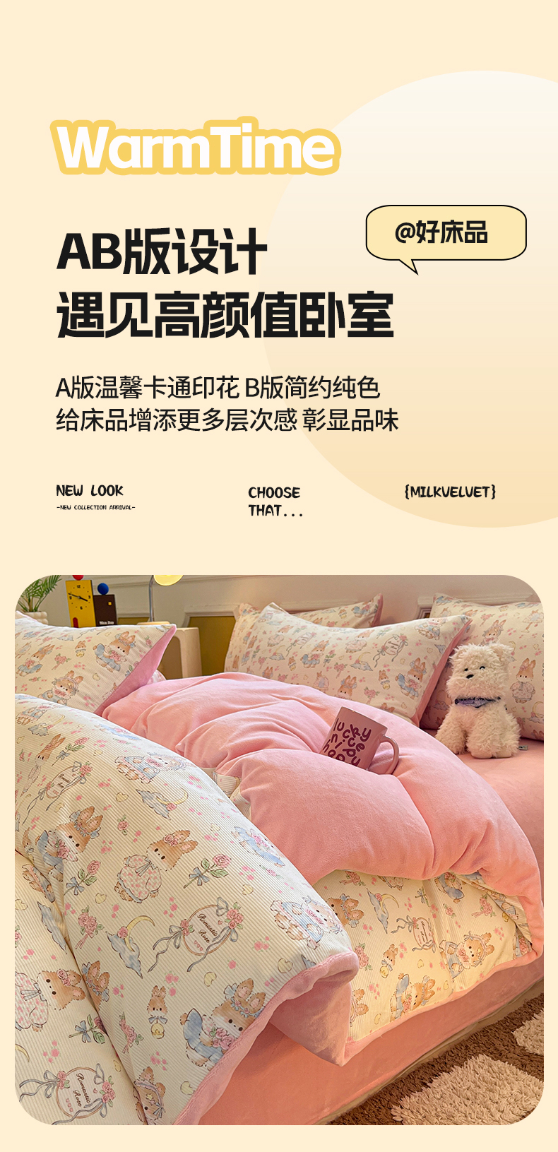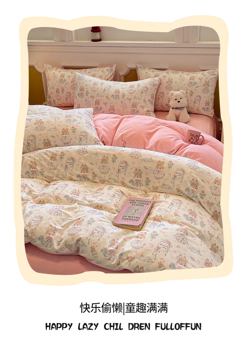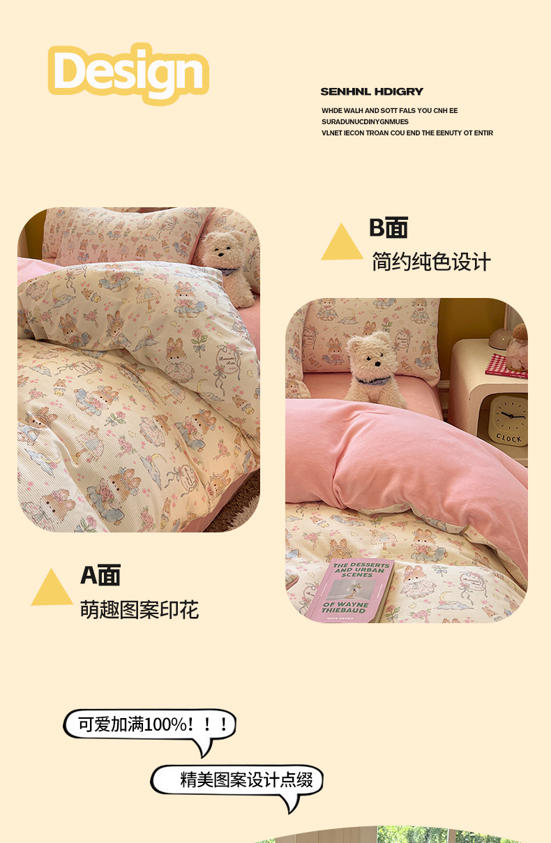 (总)羚羊语家纺 2025新款灯芯绒 温暖颂系列-印花牛奶绒四件套高克重简约卡通花卉提花加厚保暖床单床笠三件套(买家秀请联系客服!),温暖颂-宠物乐园,温暖颂-漫野春息,温暖颂-初绽,温暖颂-樱桃日记,温暖颂-花间兔,温暖颂-叶知秋,温暖颂-卡皮小布,温暖颂-小熊奇遇,温暖颂-兔儿啵啵