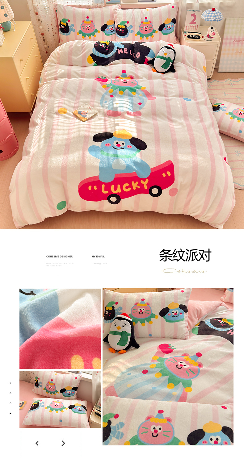 当前位置: 91家纺网 > 商品网购 > 床品套件 > 四件套 > 牛奶绒四件套 > 希诺家居 2025新款大版卡通牛奶绒数码印花四件套 牛奶绒-条纹派对