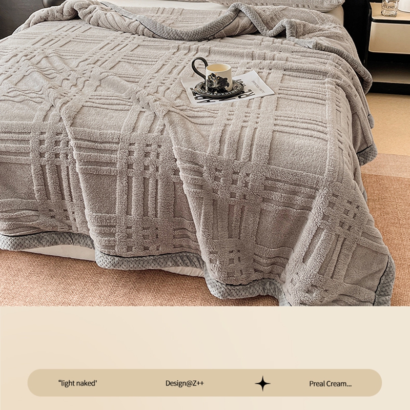 欧邦 2025新款包边舒棉绒双面绒毛毯-格调系列 格调-中灰