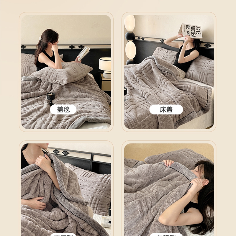 (总)欧邦 2025新款提花暖阳绒羊羔绒毛毯多功能盖毯-梦境系列,梦境-粉玉,梦境-幻白,梦境-米驼,梦境-桑绿,梦境-雾灰