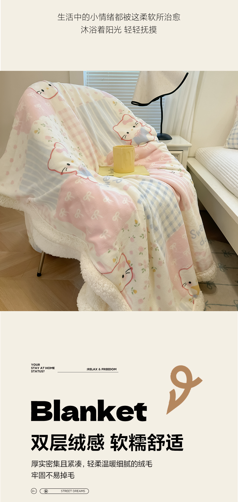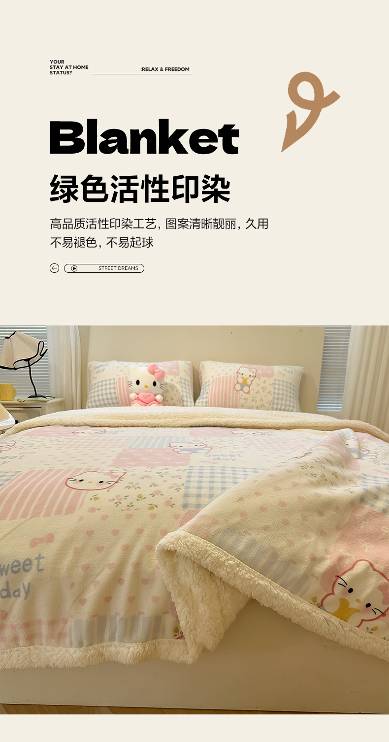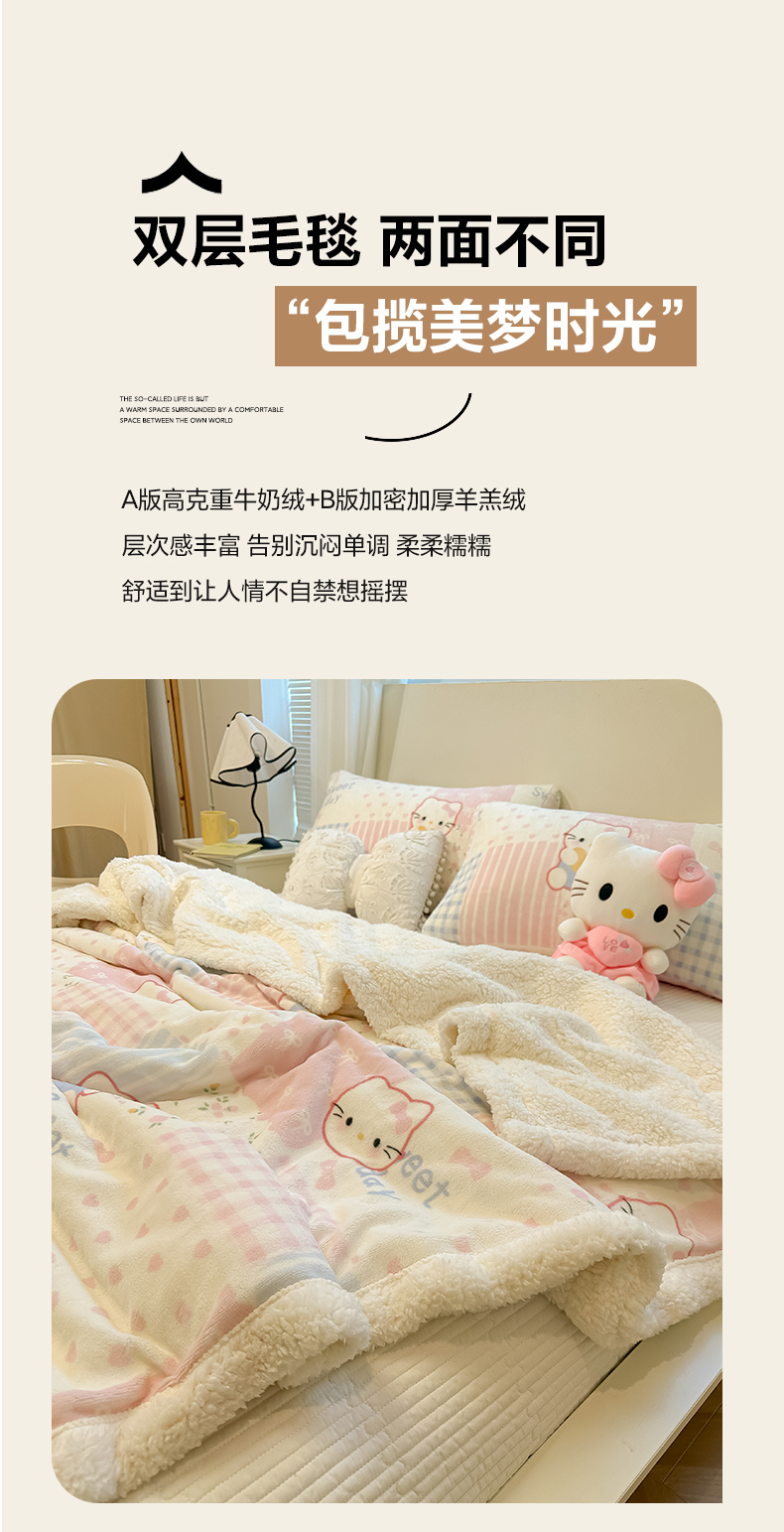 当前位置: 91家纺网 > 商品网购 > 毛毯休闲毯绒毯 > 毛毯 > 盼季家纺 2025新款日韩奶油风羊羔绒+牛奶绒可爱卡通毛毯沙发毯盖毯 羊羔绒毛毯-少女心KK瞄