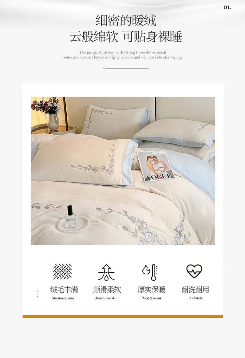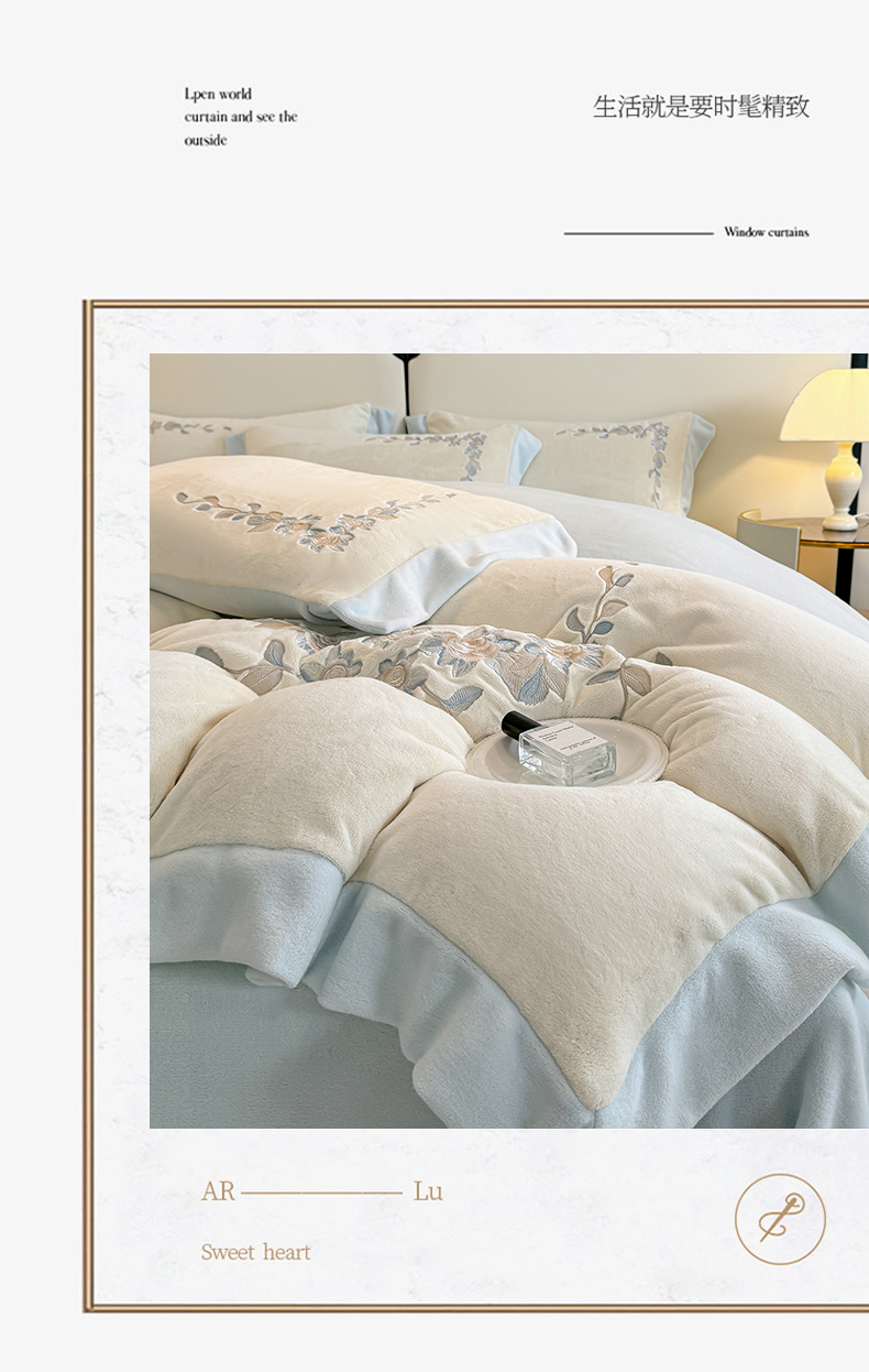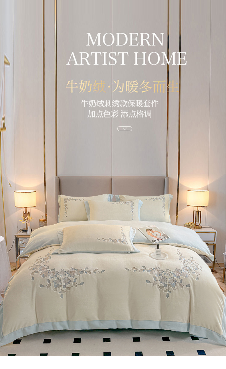 (总)KA家纺 2025新款冬季设计师款牛奶绒刺绣四件套沐言系列,沐言白+卡其,沐言白+蓝,沐言粉,沐言蓝
