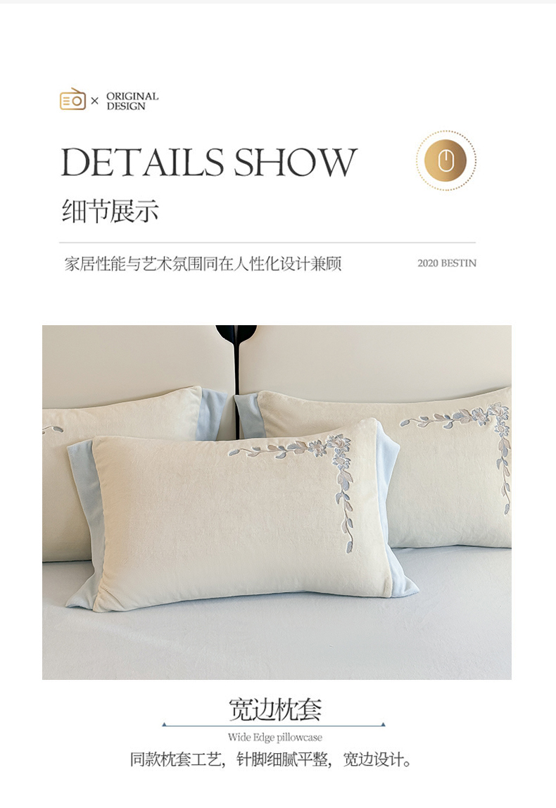 (总)KA家纺 2025新款冬刺绣款宽边拼角牛奶绒四件套-沐言系列,沐言蓝,沐言白+卡其,沐言白+蓝,沐言粉