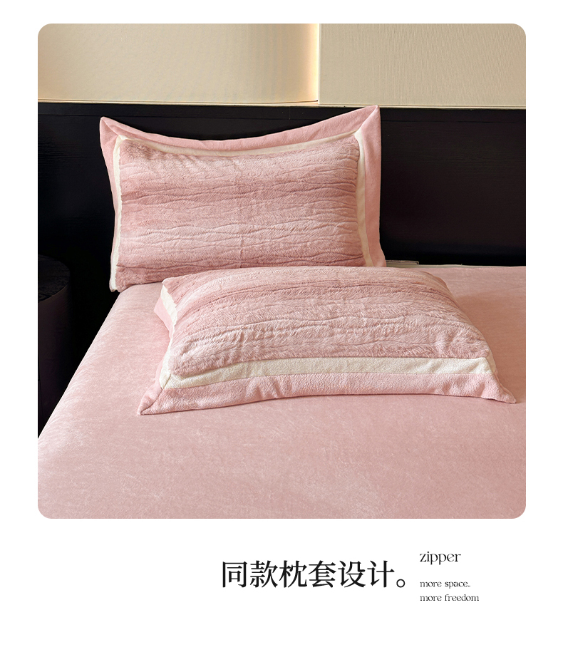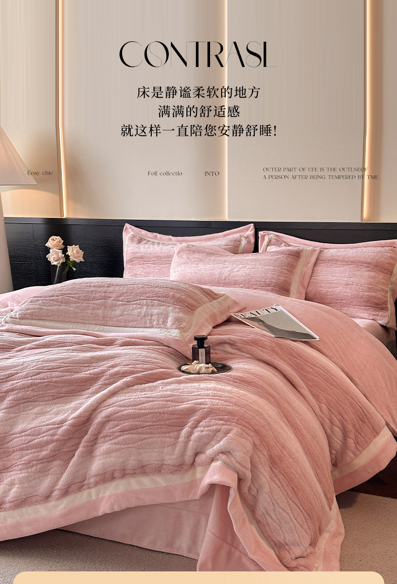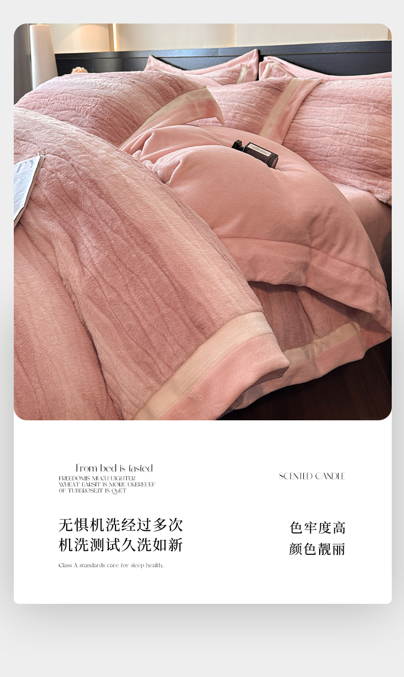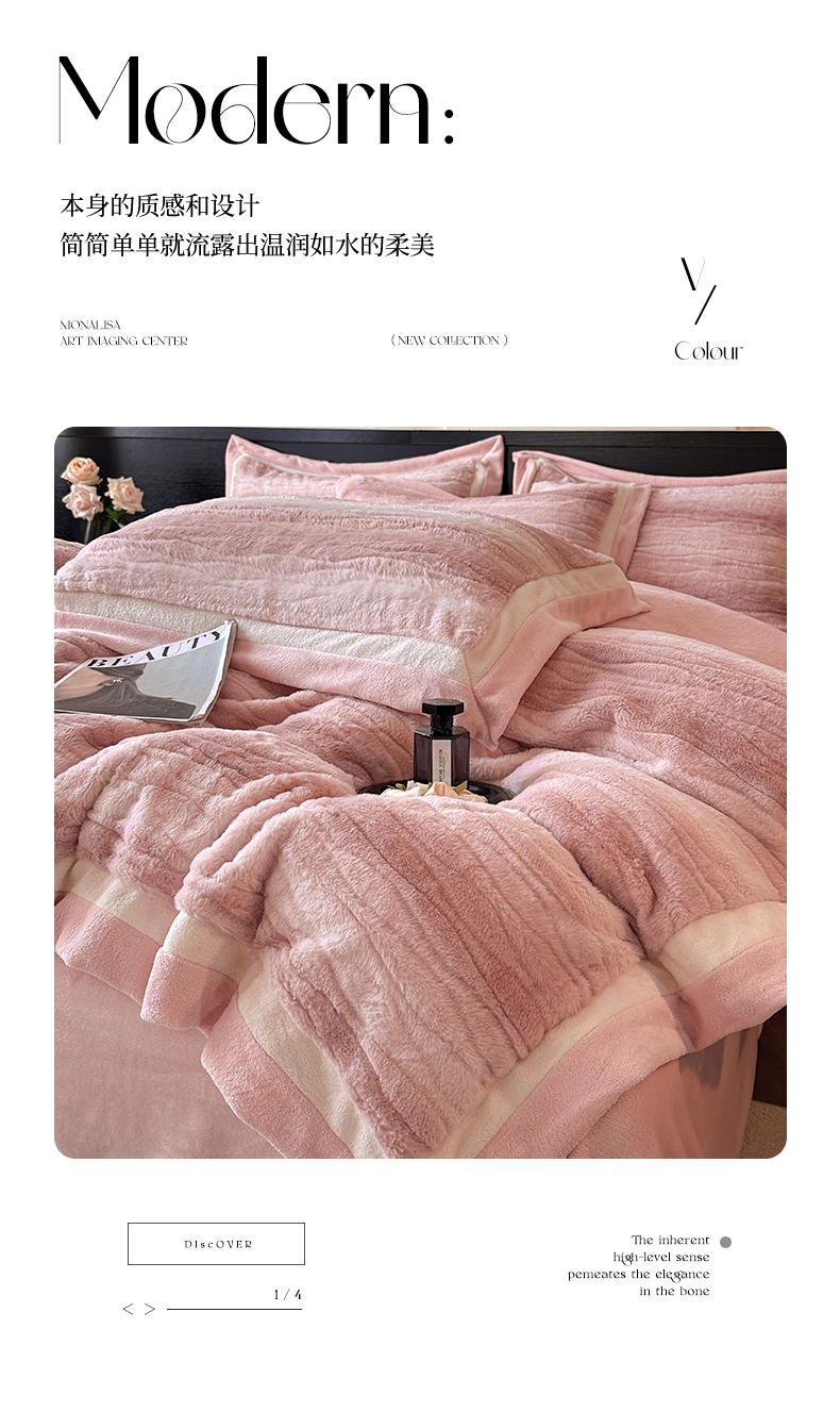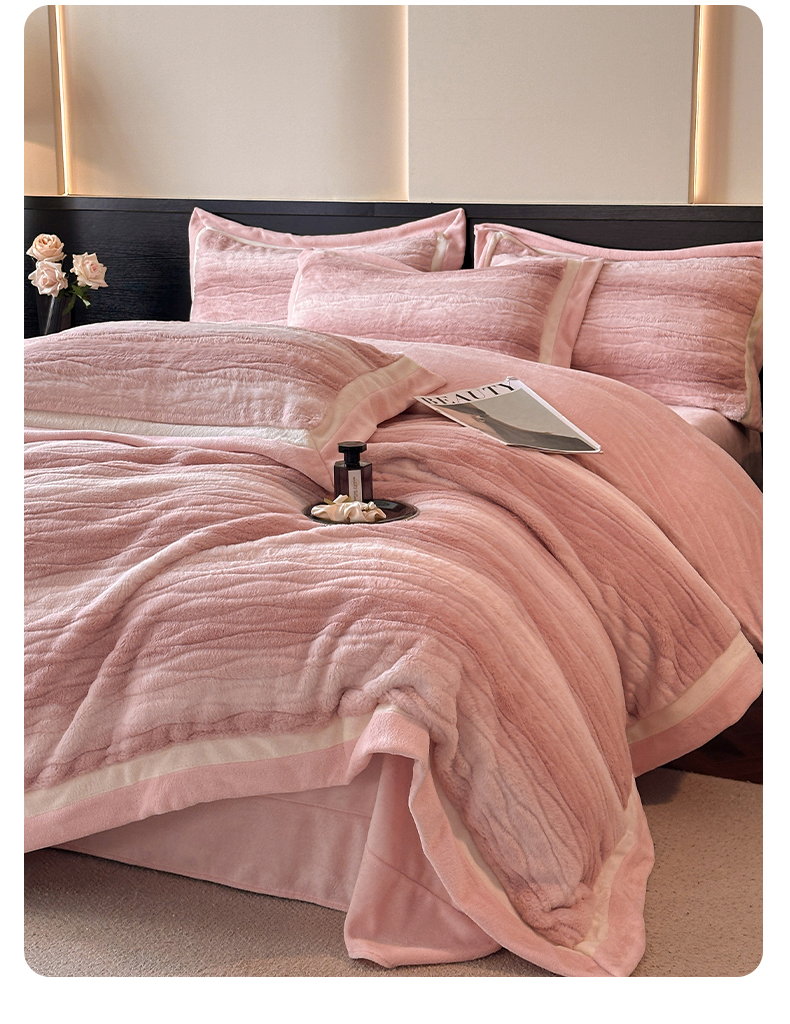 商品名称:绘萱家居 2025新款亲肤舒适双拼边雕花兔毛绒四件套-爱丁堡 爱丁堡-粉