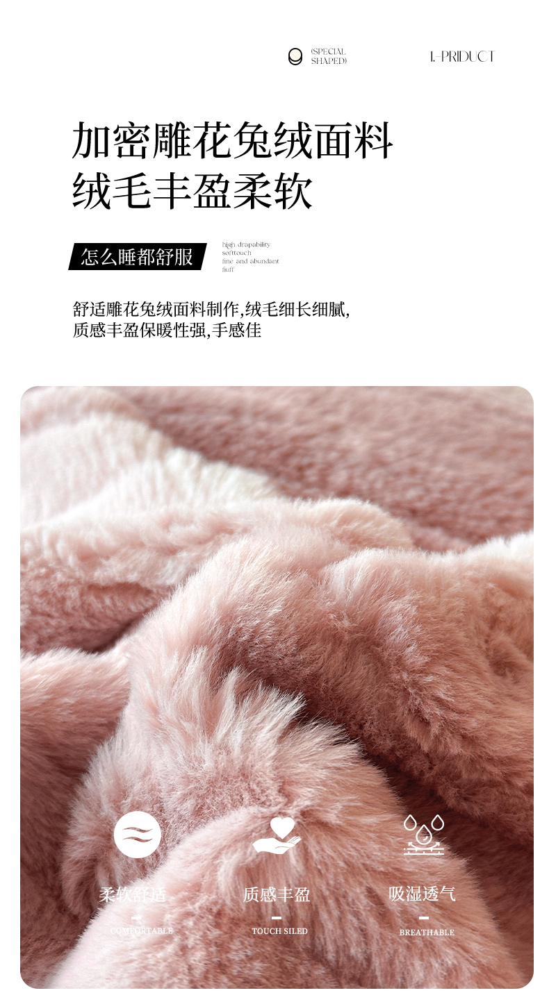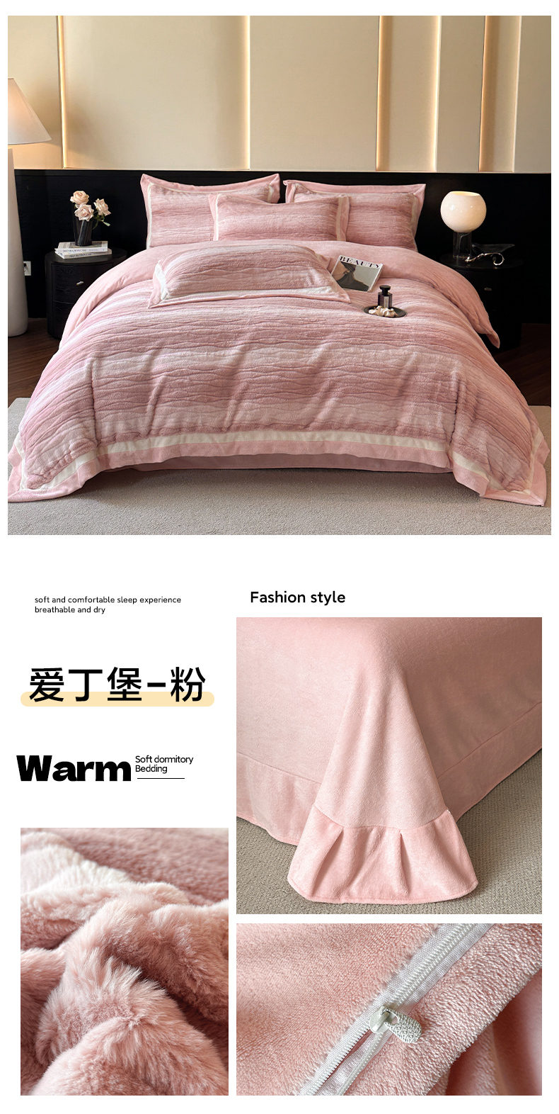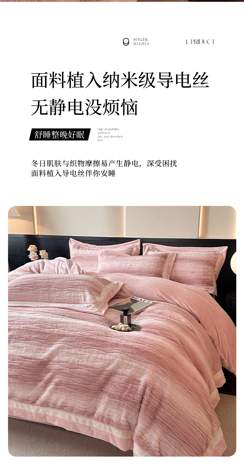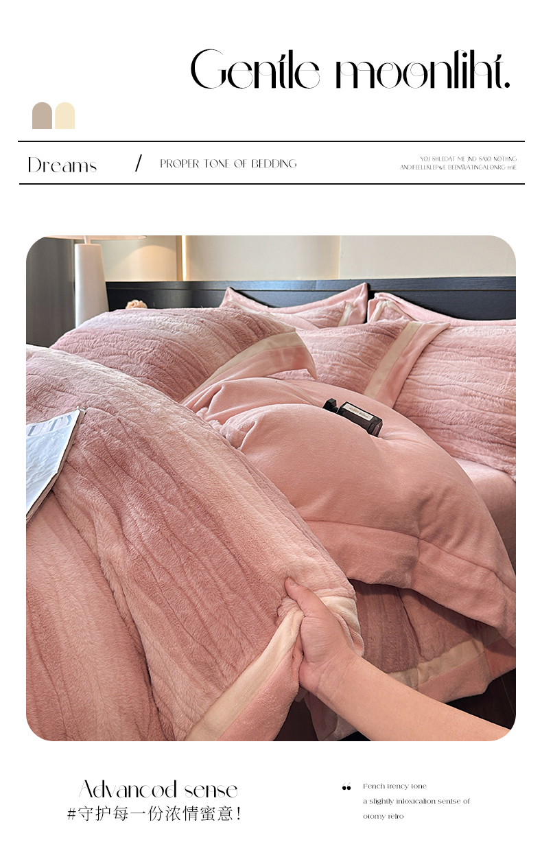 商品名称:绘萱家居 2025新款亲肤舒适双拼边雕花兔毛绒四件套-爱丁堡 爱丁堡-粉