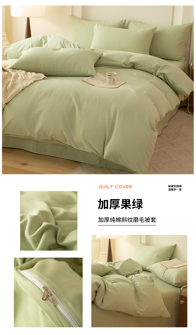 (总)八十八家纺 2025新款纯棉加厚磨毛四件套及单品系列-四件套,加厚果绿,加厚红豆,加厚卡其,加厚浅紫,加厚天蓝,加厚银灰,加厚中灰