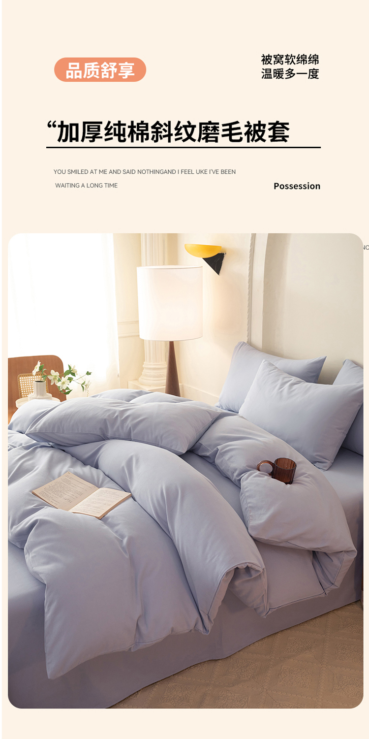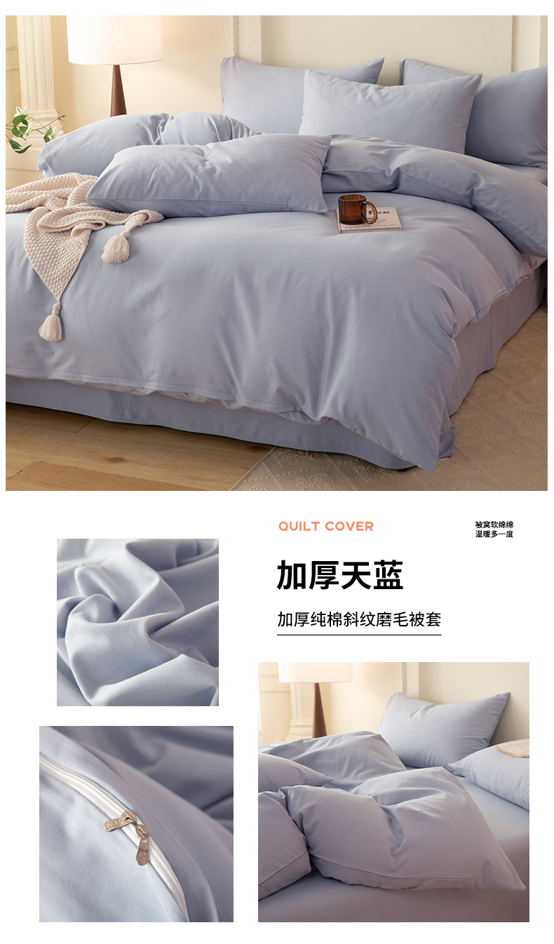 八十八家纺 2025新款纯棉加厚磨毛四件套及单品系列-单被套 加厚天蓝