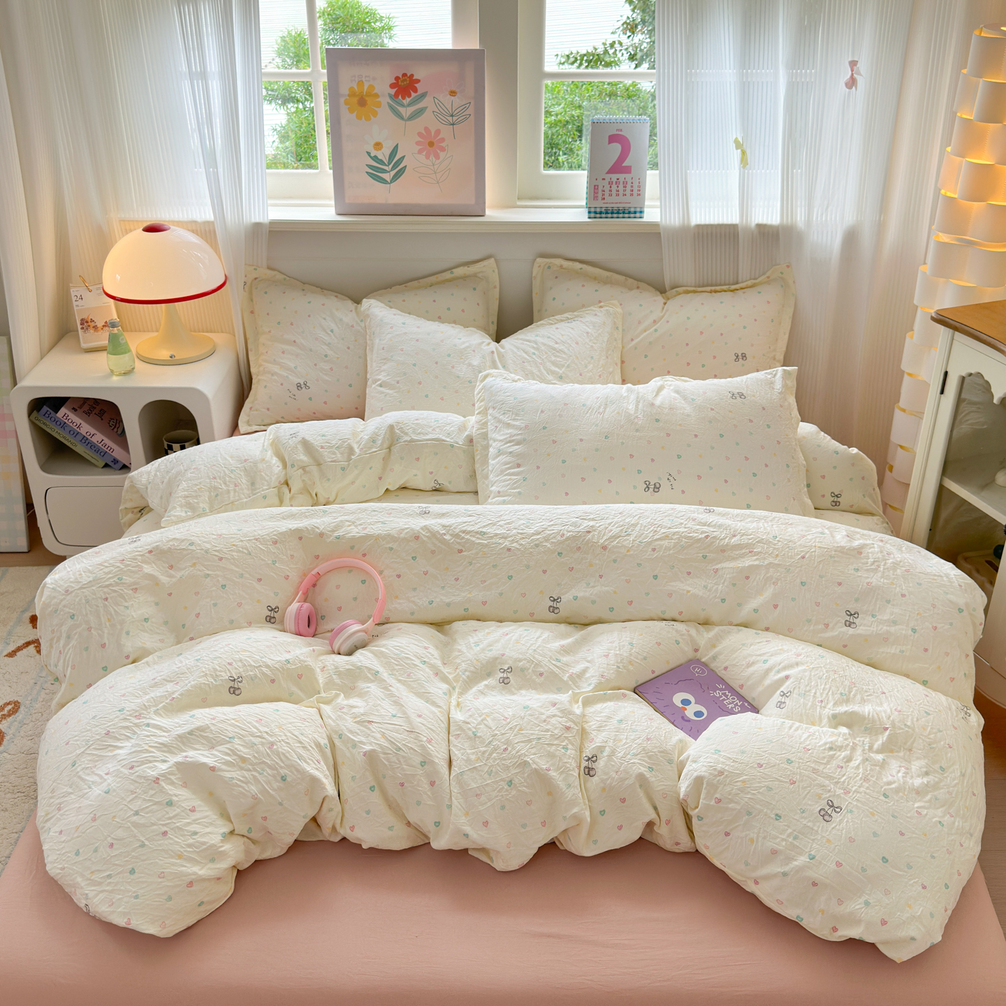 德比尔斯 2025新款爆款韩国小布袋古法水洗棉云感棉四件套 甜心樱桃