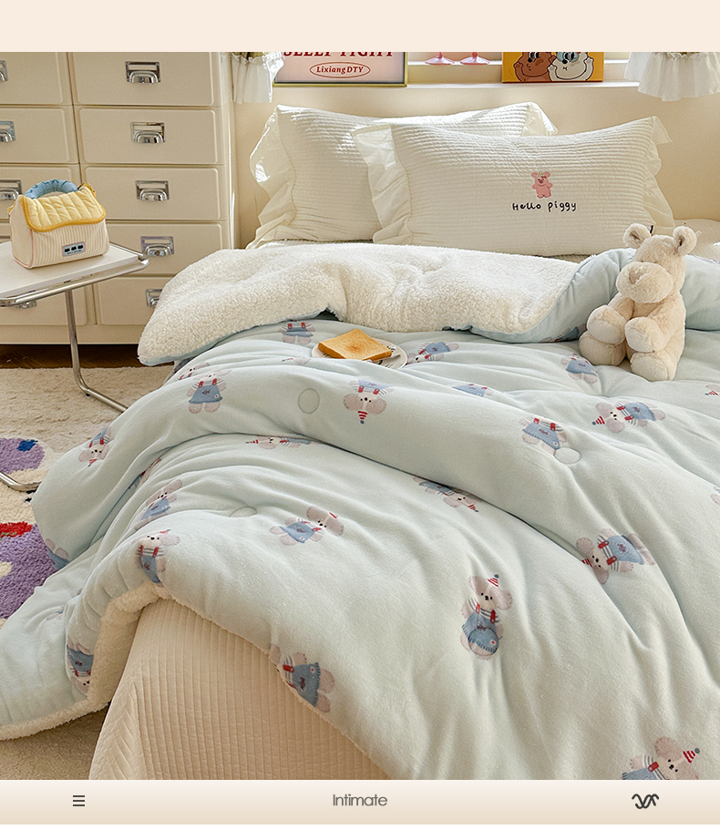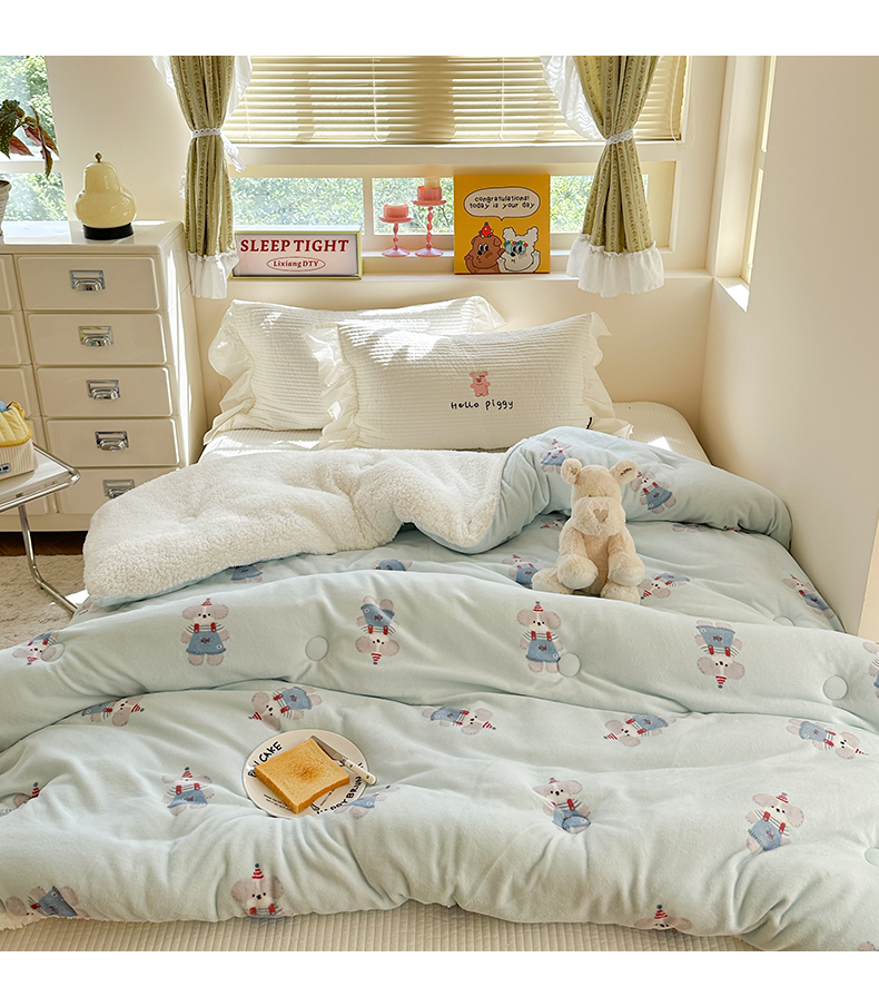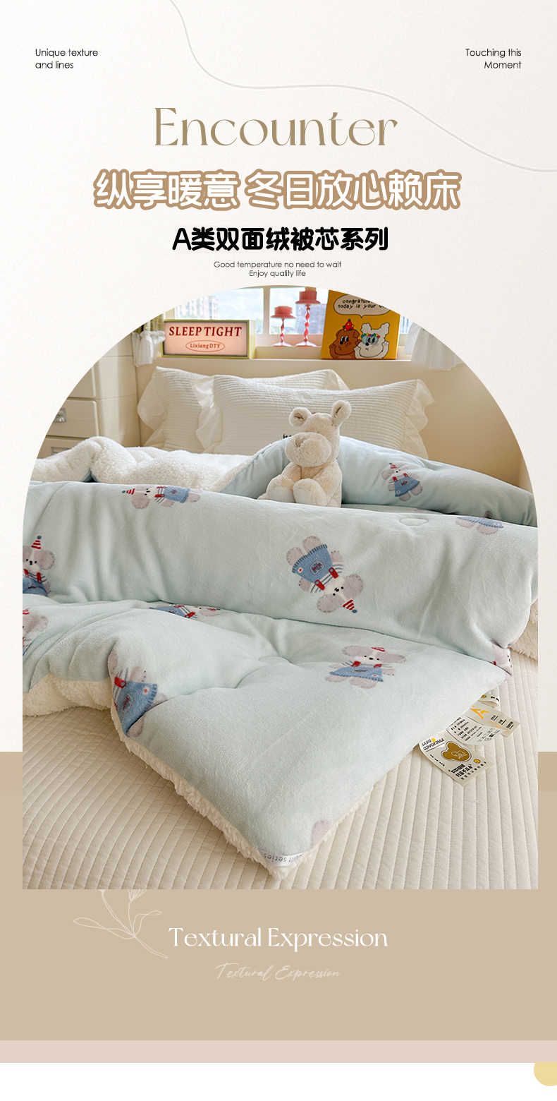 商品名称:寐居家纺 2025新款牛奶绒+羊羔绒被子被芯 洛洛小狗