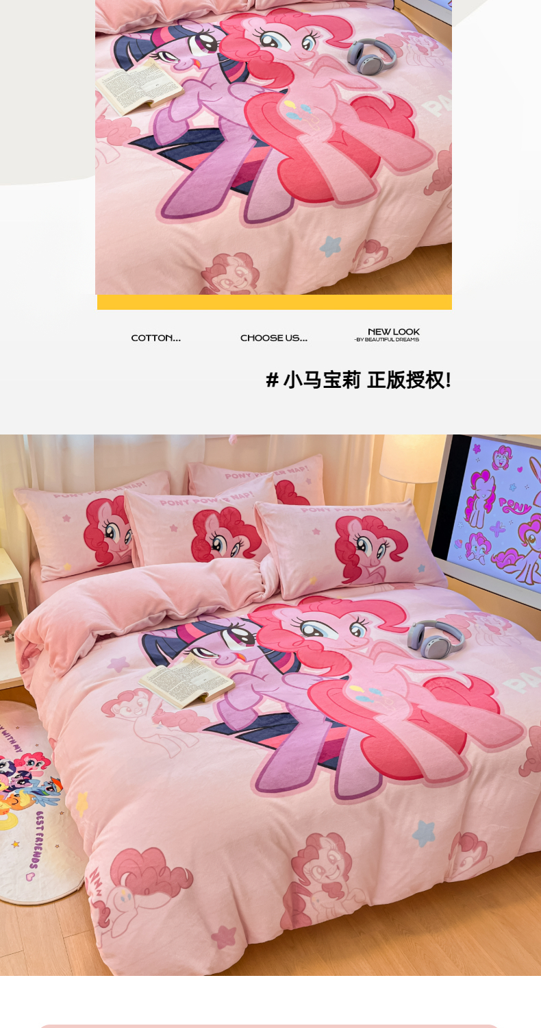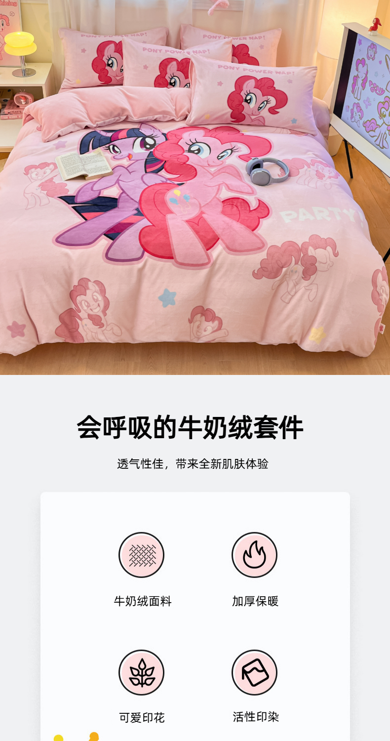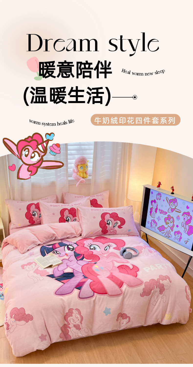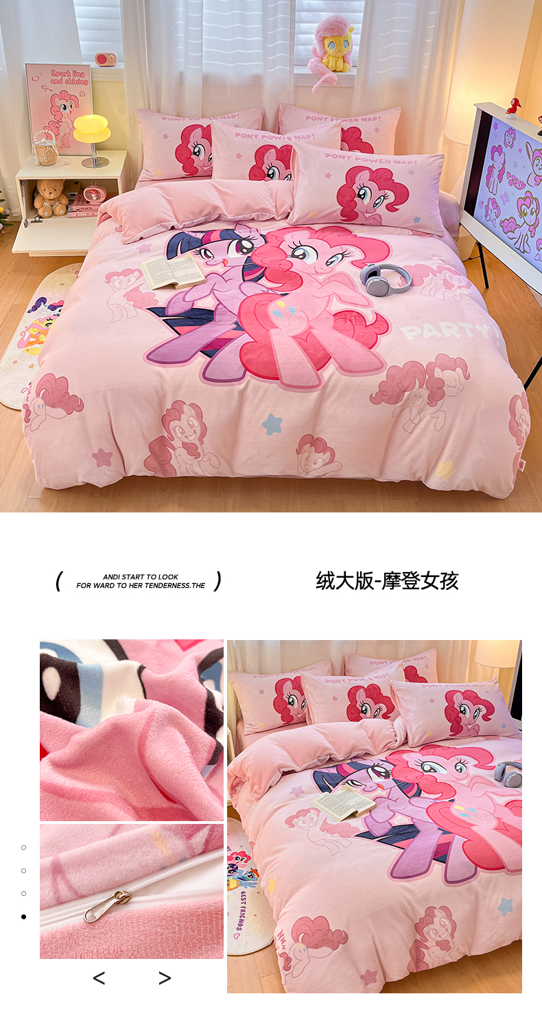 当前位置: 91家纺网 > 商品网购 > 床品套件 > 四件套 > 牛奶绒四件套 > 金爱家 2025新款正版小马宝莉授权大版卡通平网数码印花加厚高克重牛奶绒系列四件套 绒大版-摩登女孩
