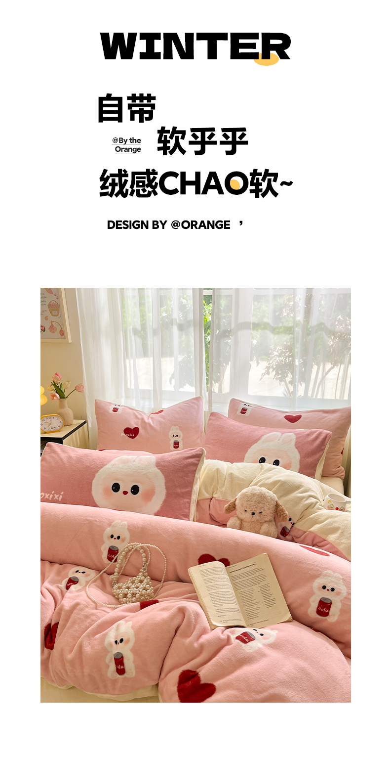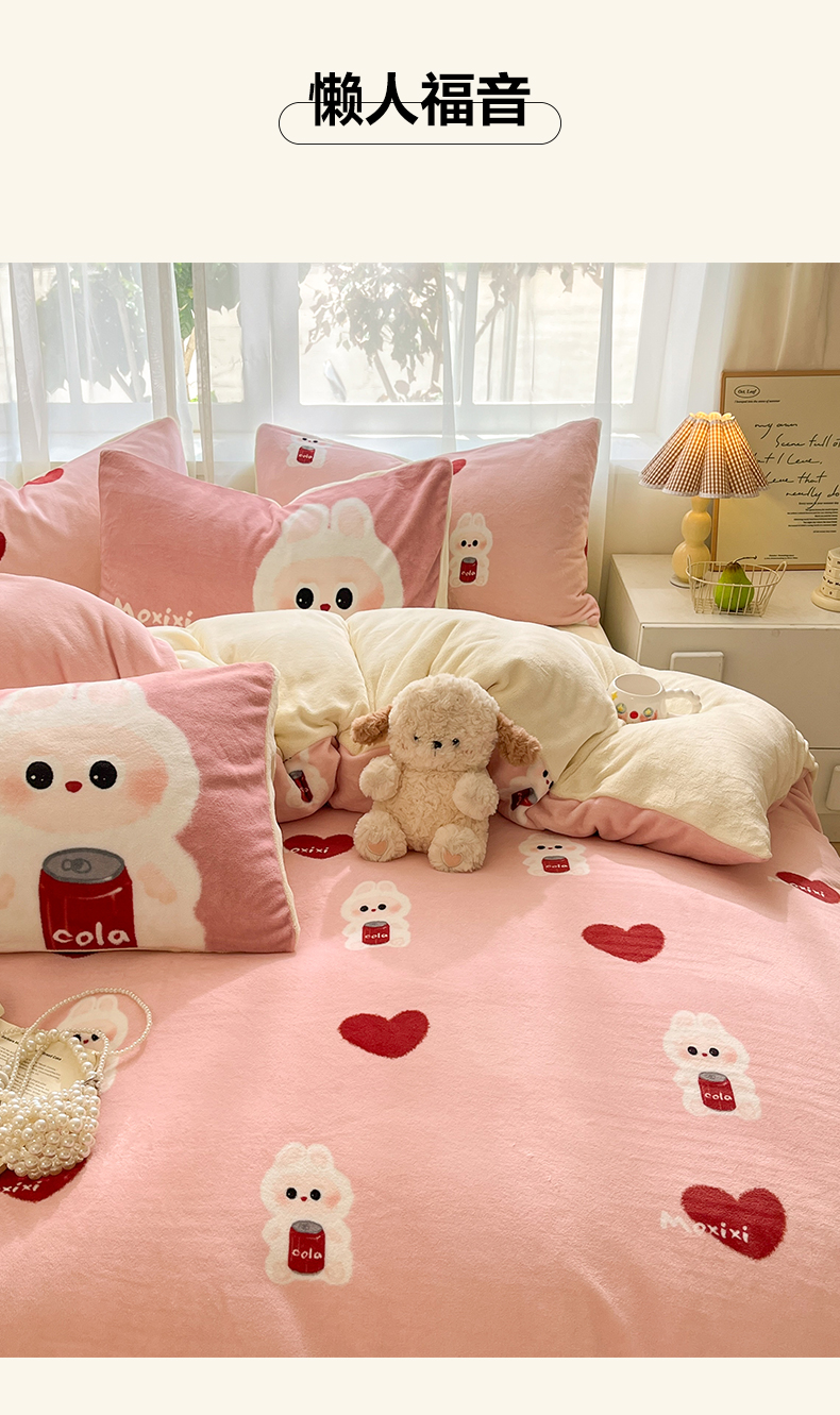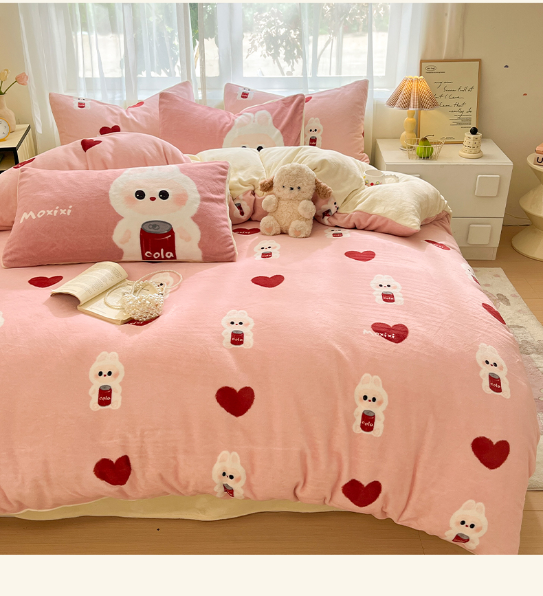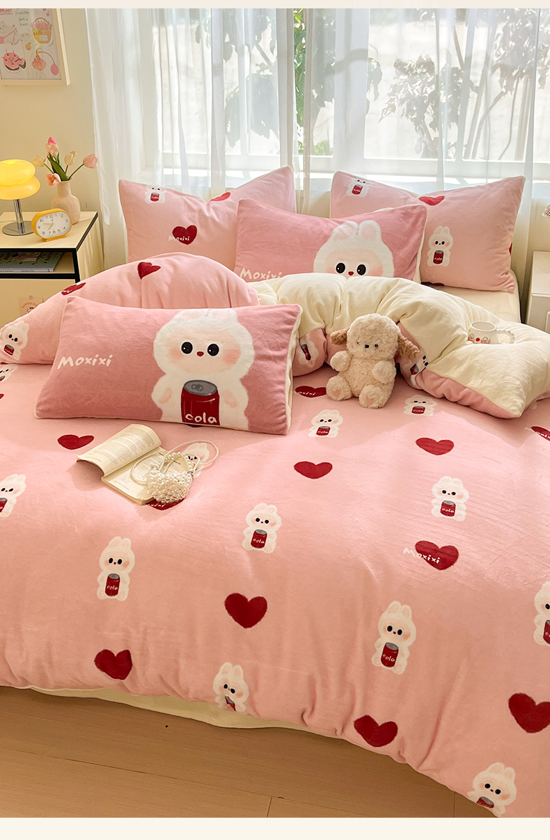 如一 2025新款高克重卡通印花牛奶绒四件套第二批 莫西西
