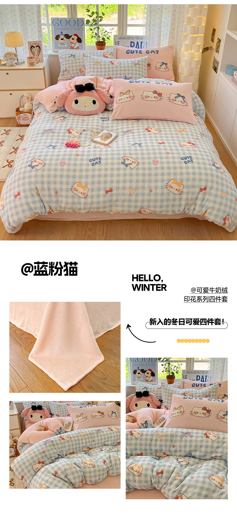 (总)如一 2025新款高克重卡通贴布绣牛奶绒四件套,爱心猫,狮毛狗,雪纳瑞,线团狗,豹纹兔,蓝格猫,粉格猫,咖啡狗,雨伞猫