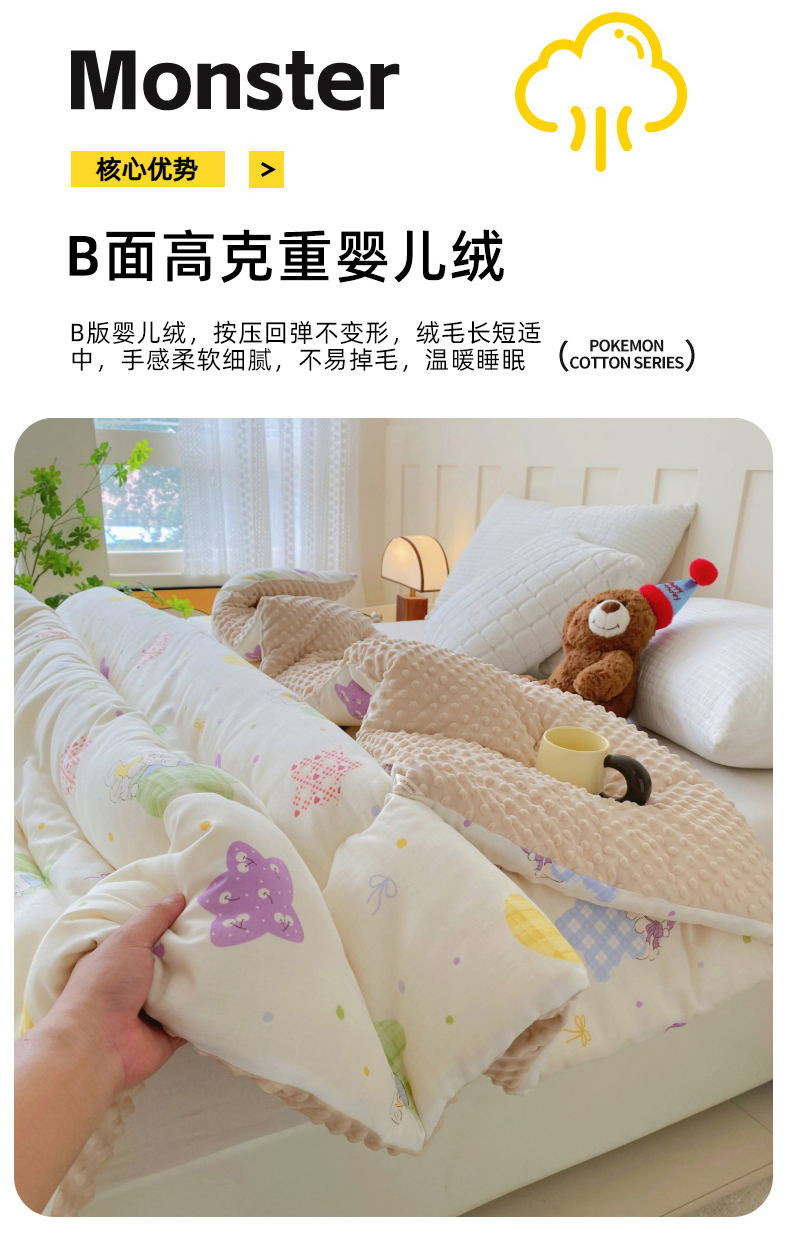 • 91家纺网 家纺一手货源 找家纺 小叮当家纺仓储工厂店 2025新款A类母婴级全棉双层纱婴儿绒210g豆豆被20%大豆纤维单人双人被芯 蜜桃小姐
