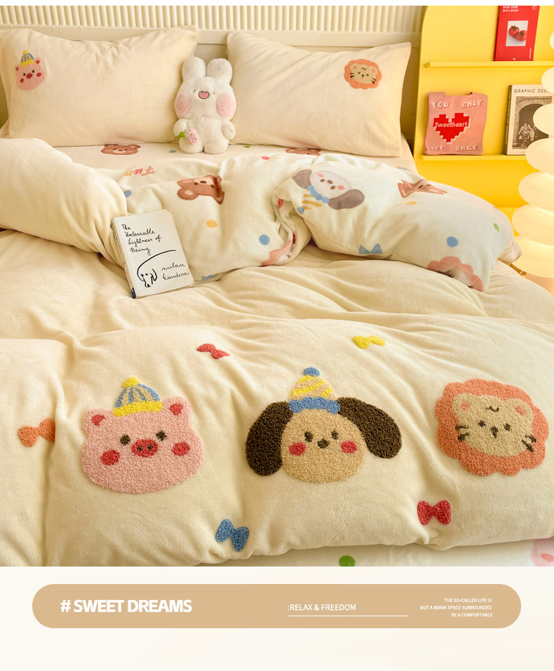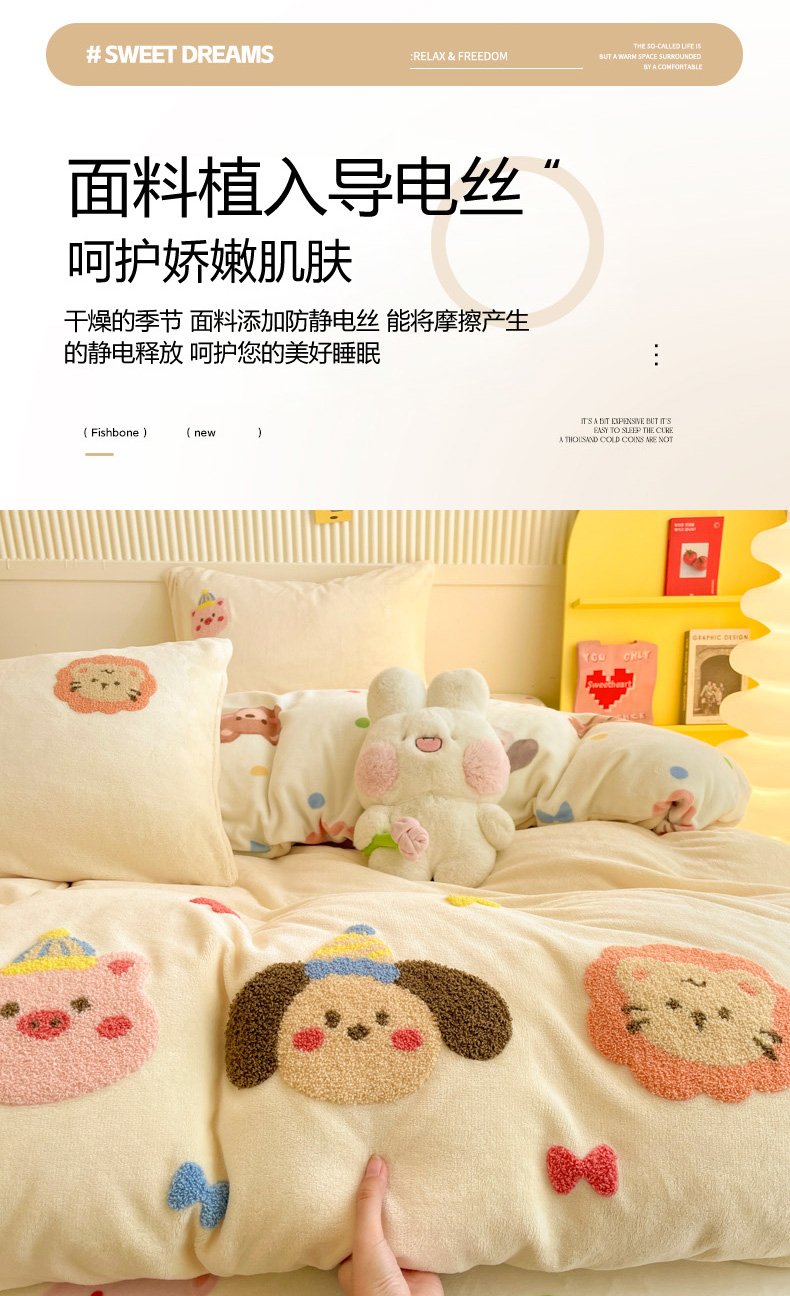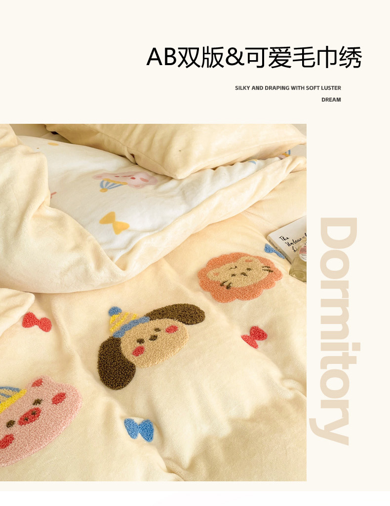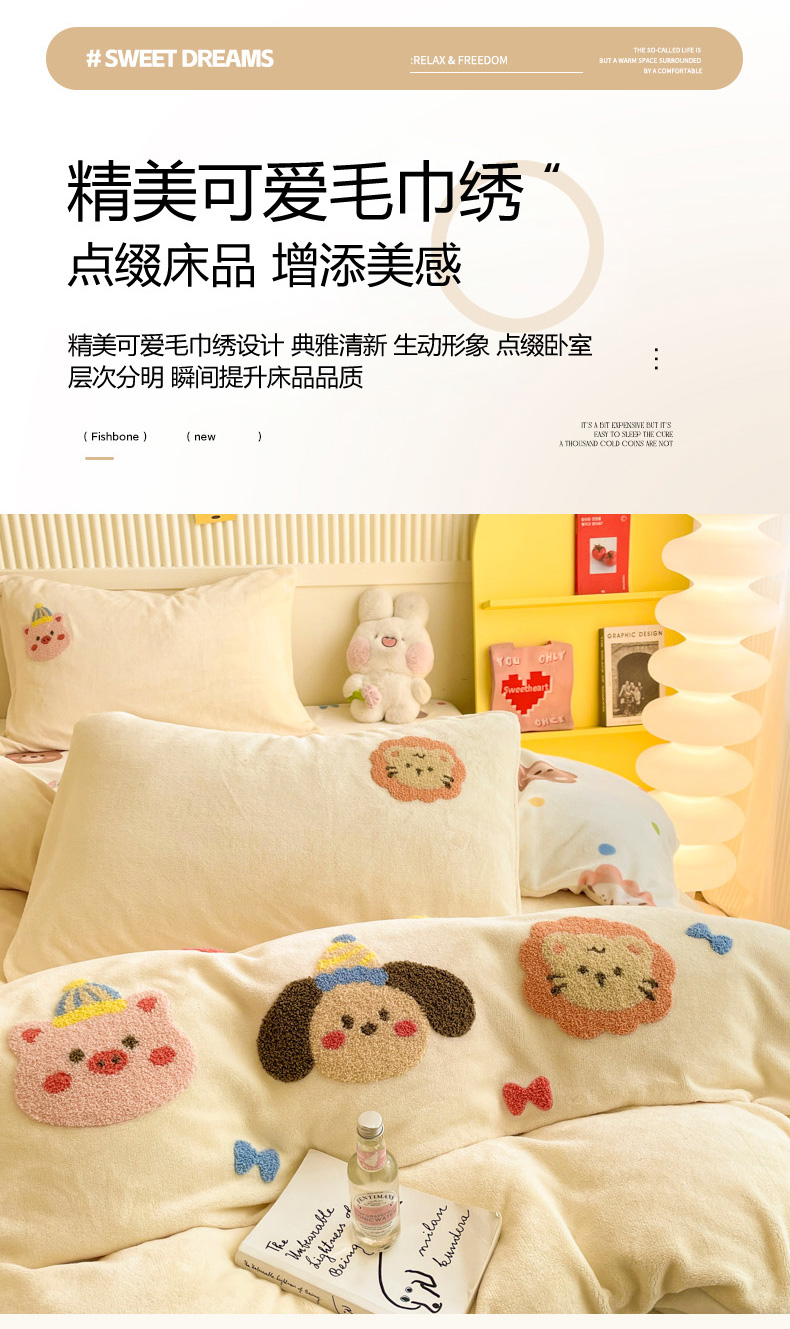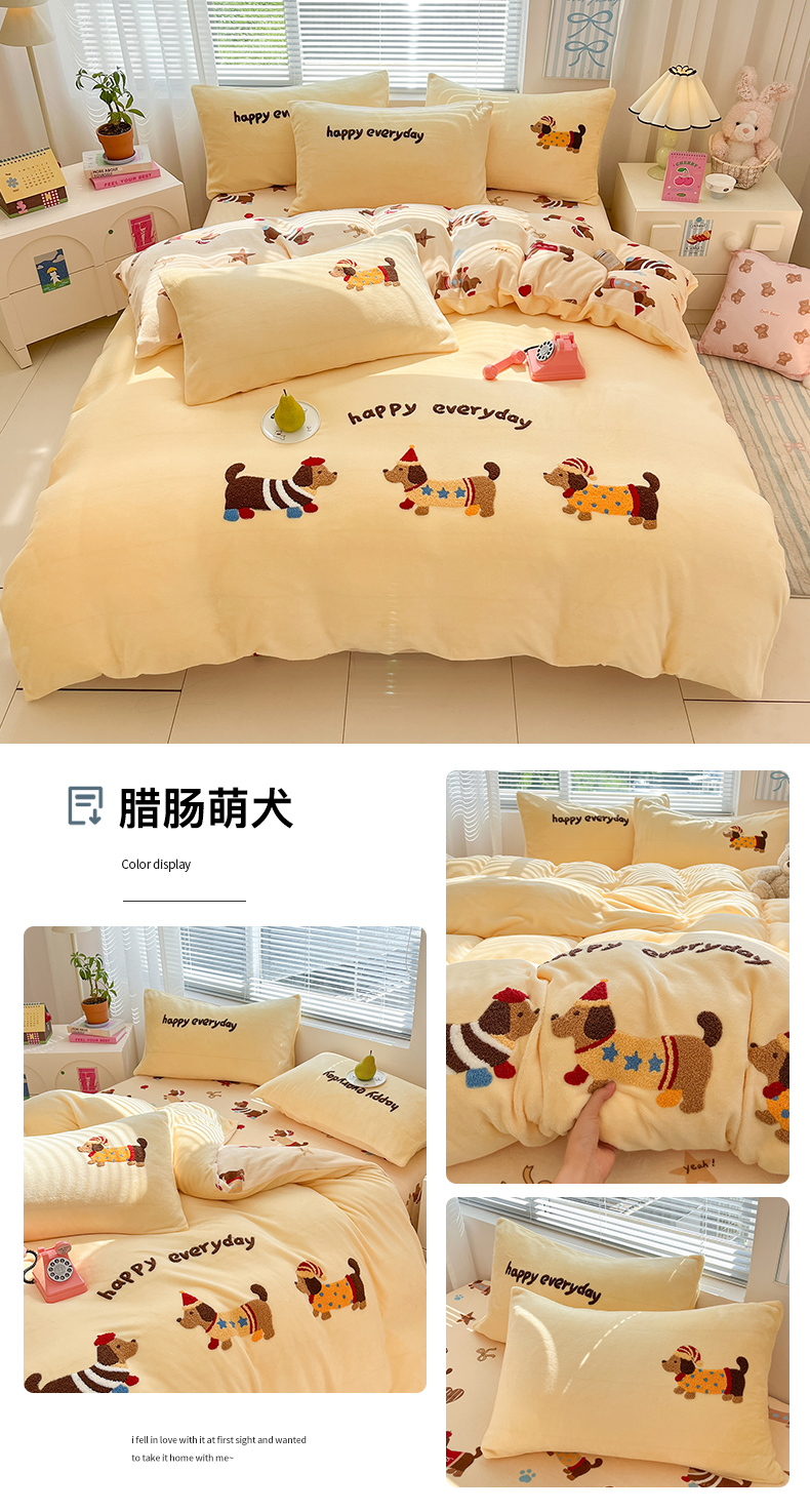 当前位置: 91家纺网 > 商品网购 > 床品套件 > 四件套 > 牛奶绒四件套 > 寐居家纺 2025新款牛奶绒大版毛巾绣床单款四件套 宠物大会