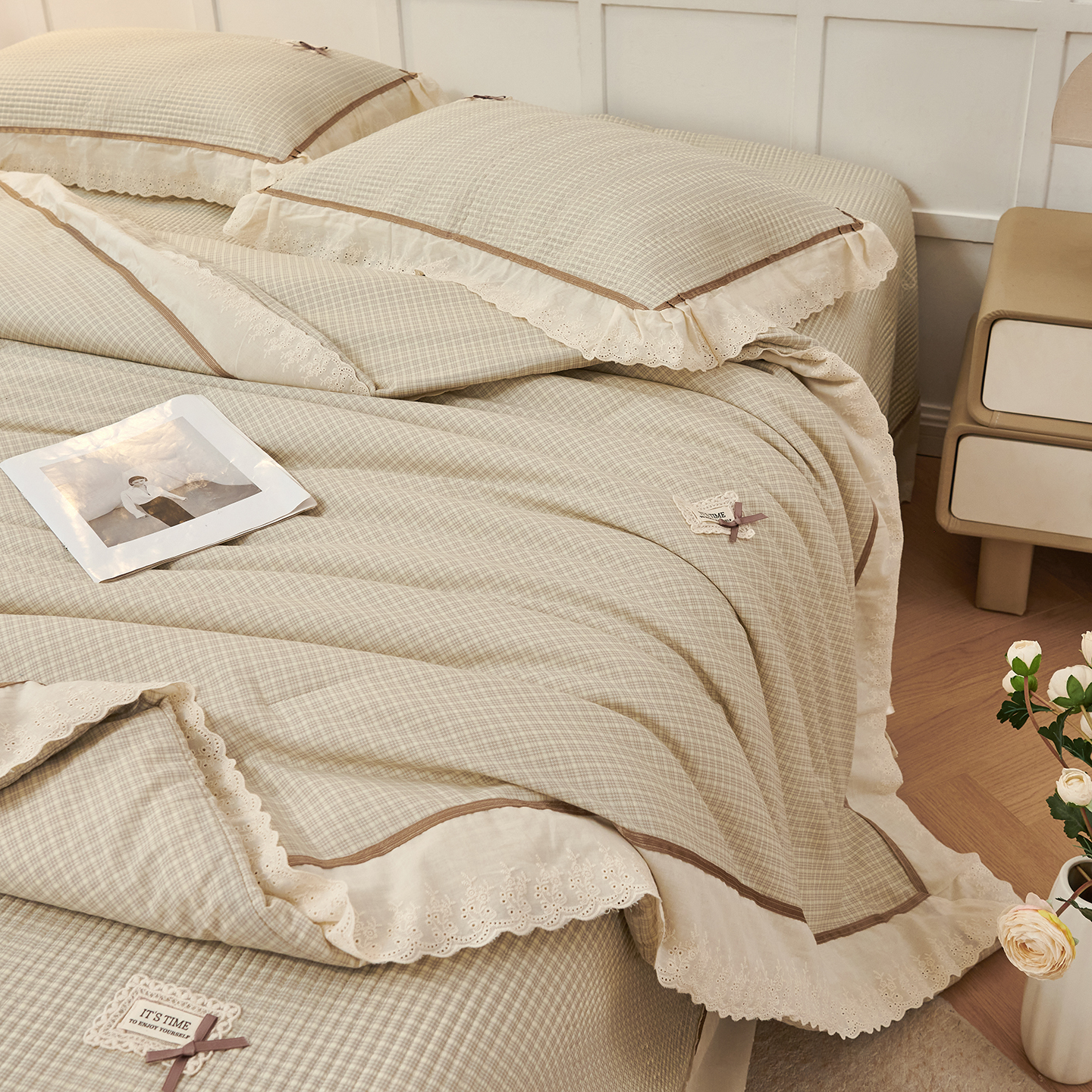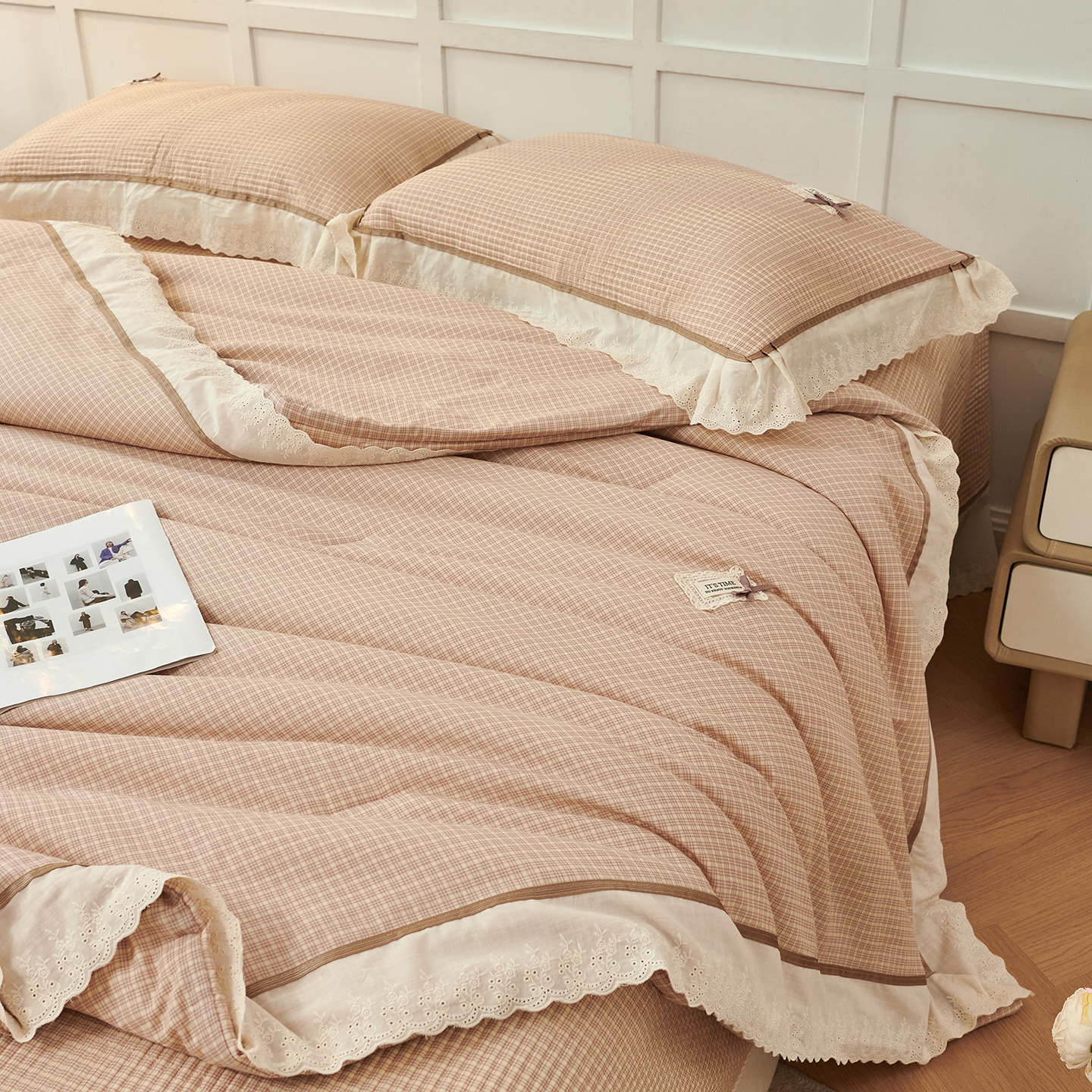 (总)优希家纺 2025新款安雅夏被床盖四件套,粉色,黄色,灰色,卡其