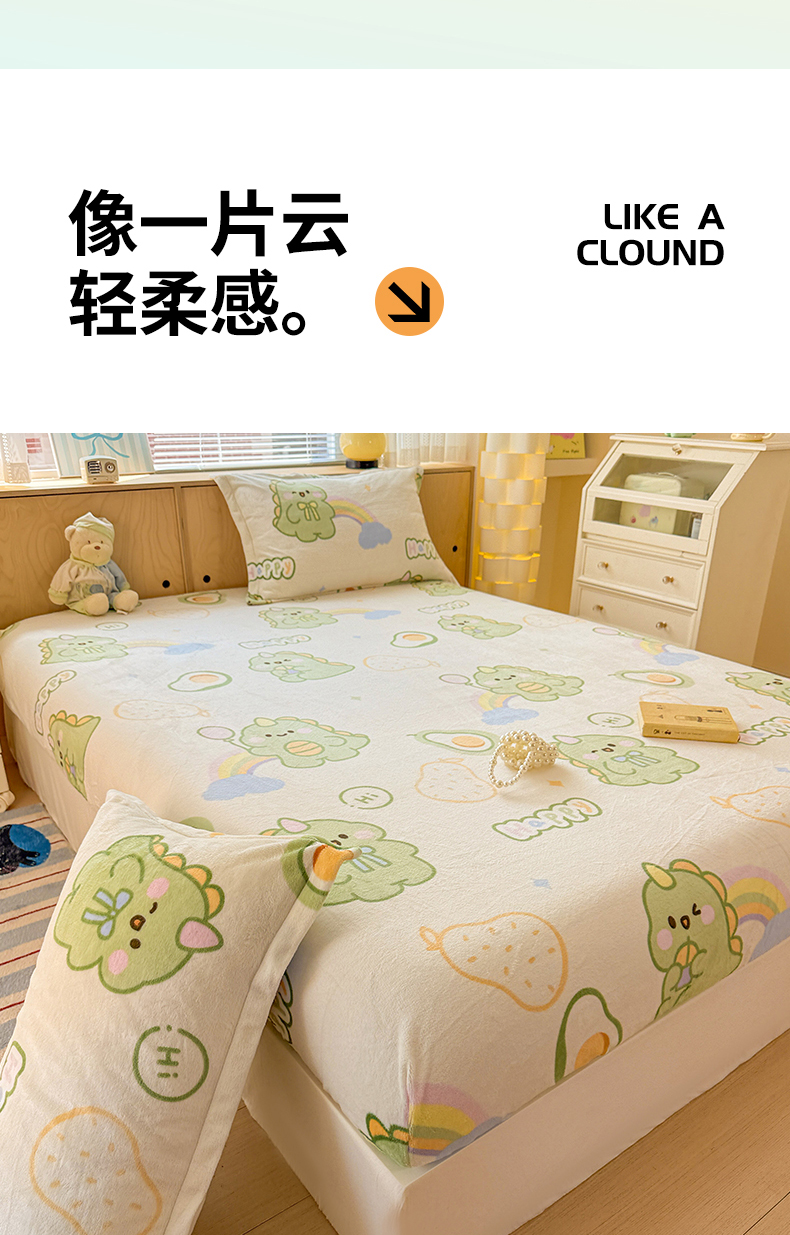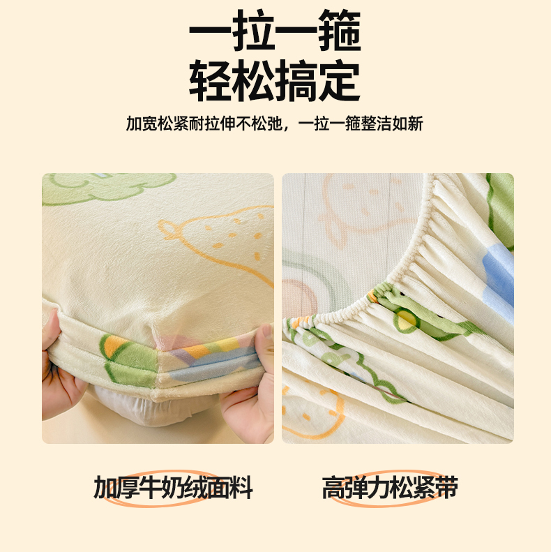 名兮家居 2025新款高克重印花牛奶绒单床笠床笠单件 字母熊猫