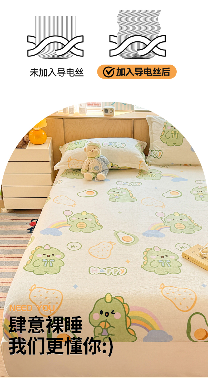 • 91家纺网 家纺一手货源 找家纺 名兮家居 2025新款高克重印花牛奶绒单床笠床笠单件 字母熊猫