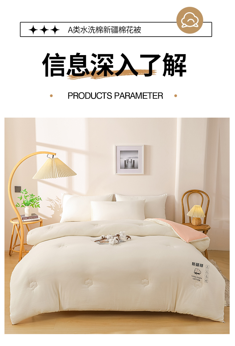 当前位置: 91家纺网 > 商品网购 > 被子 > 冬被 > 小叮当家纺仓储工厂店 2025新款A类水洗棉新疆棉花全棉纯棉被无印风冬被加厚保暖被子被芯四季通用 新疆棉花被-白拼粉