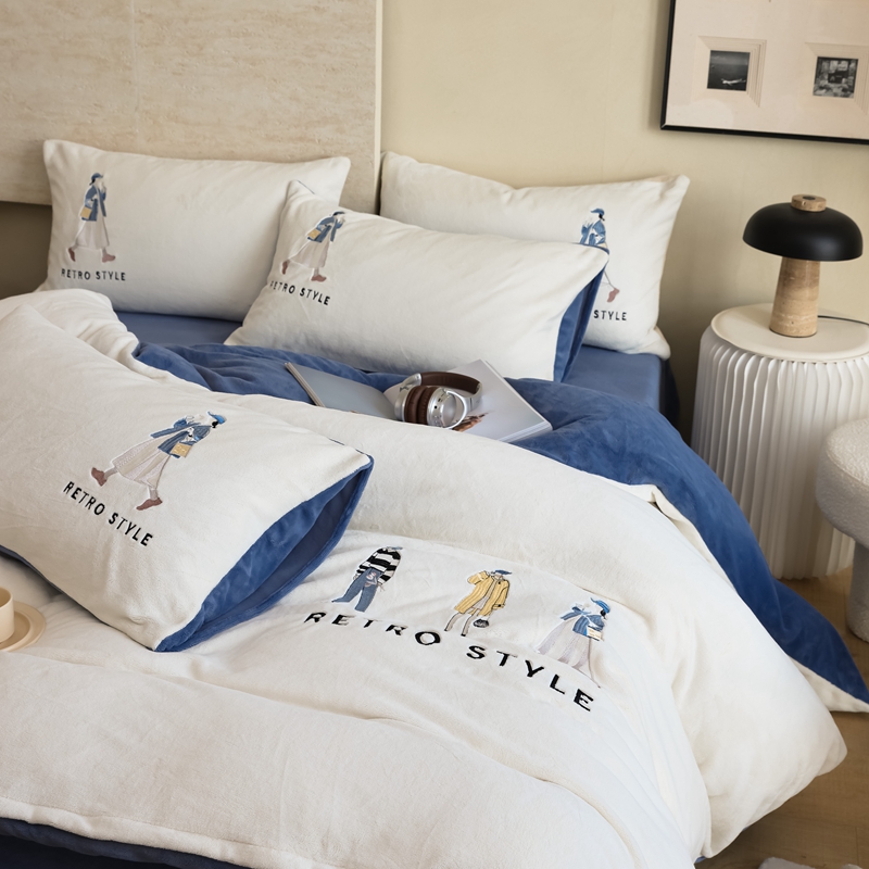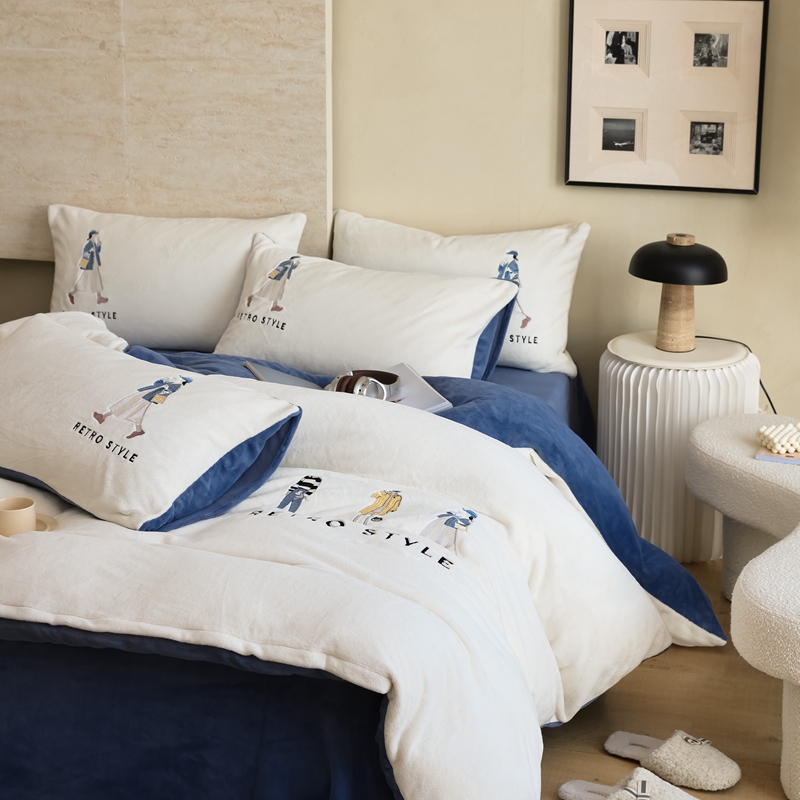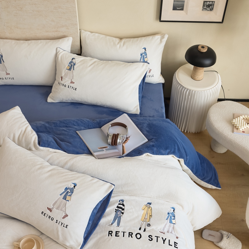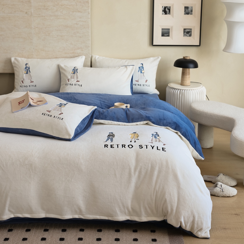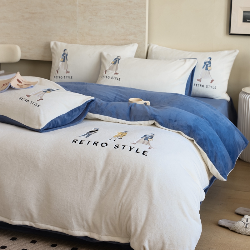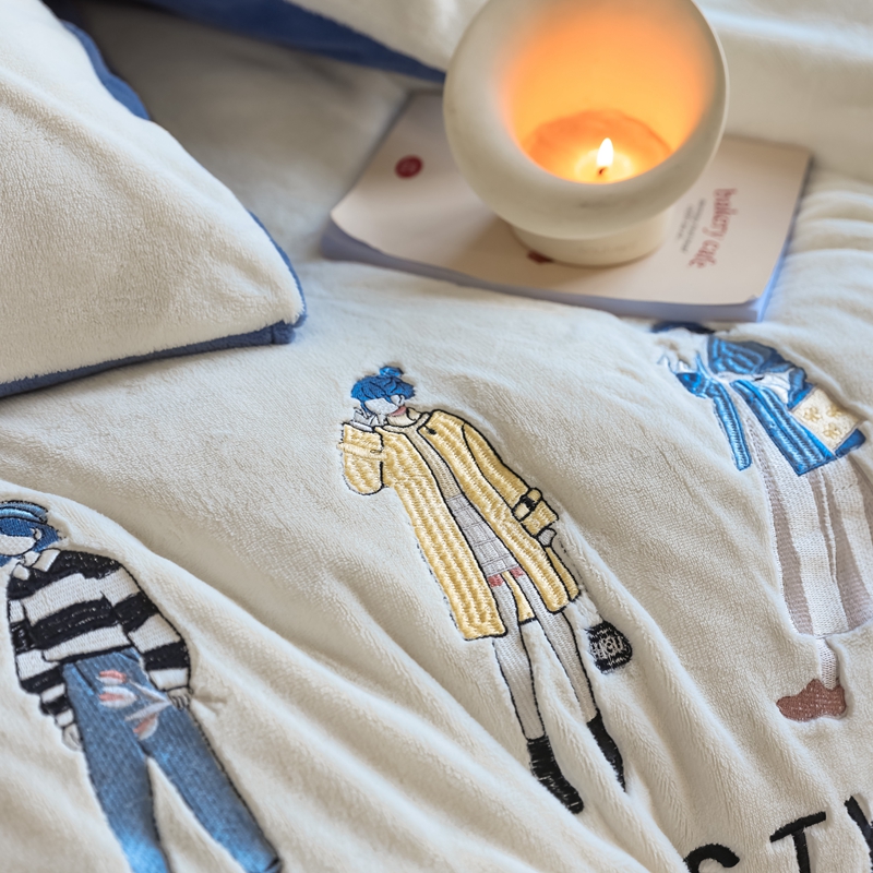 121【牛奶绒刺绣四件套】2025新款毛毯被子四件套单件床单被套床笠珊瑚绒牛奶绒冬被法兰绒兔毛绒刺绣男孩-Boy系列场景二 baby-雾兰