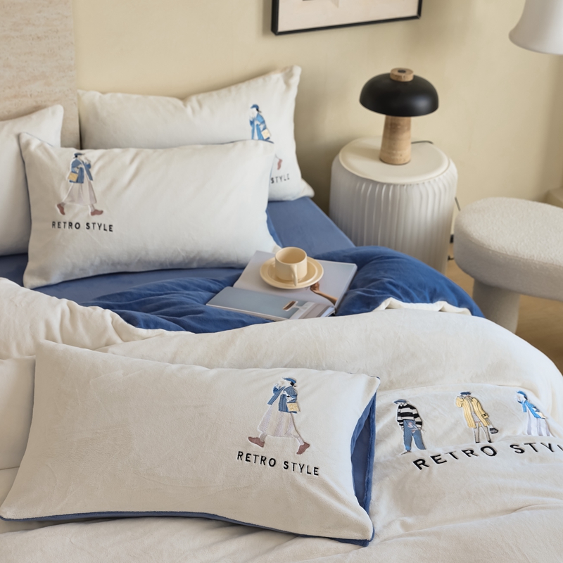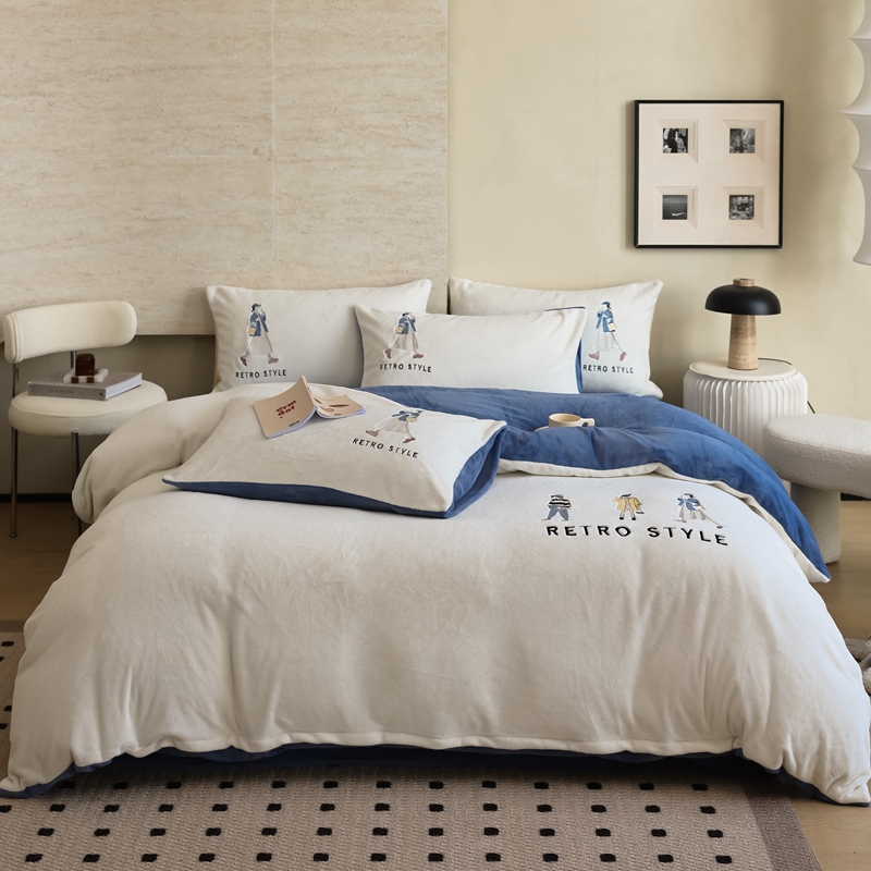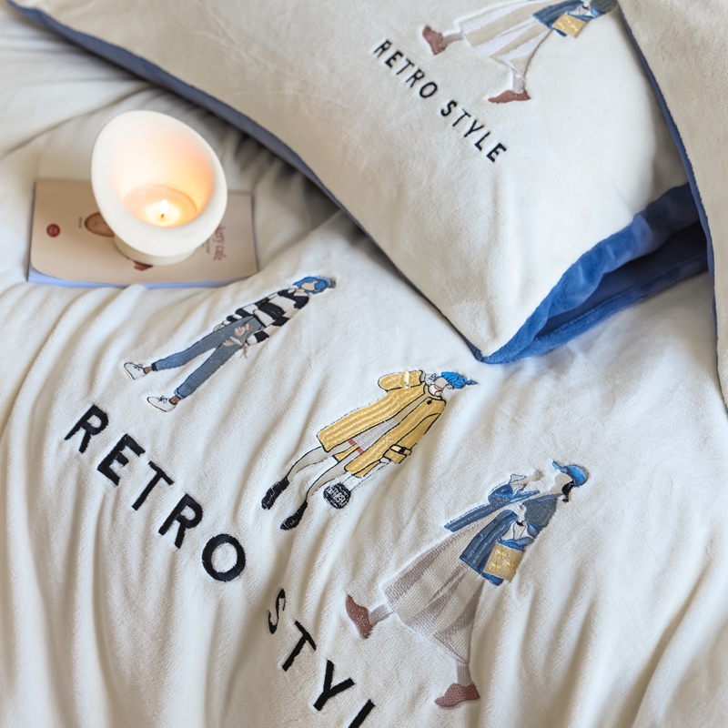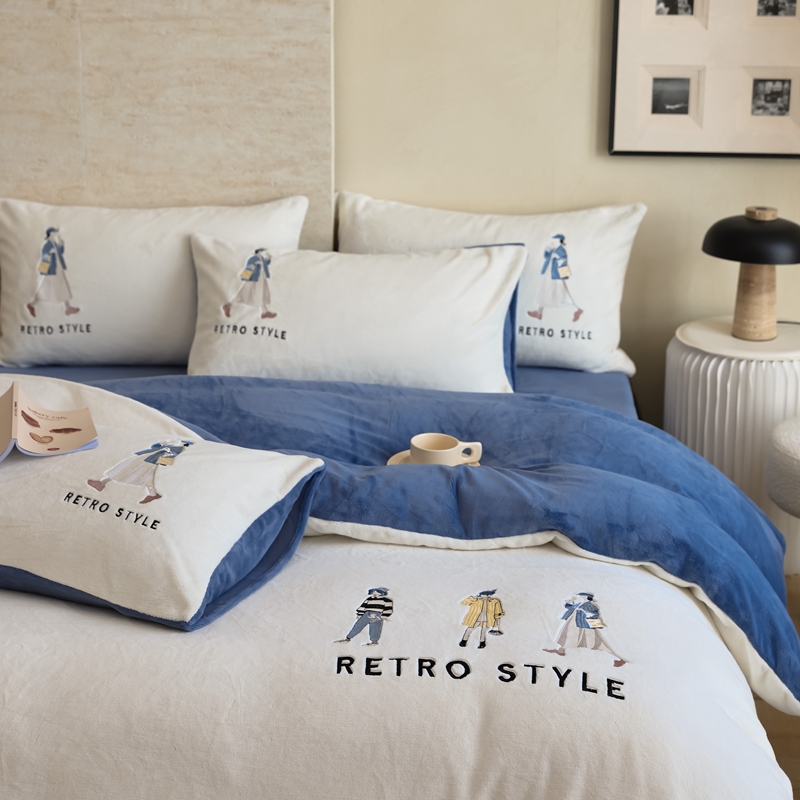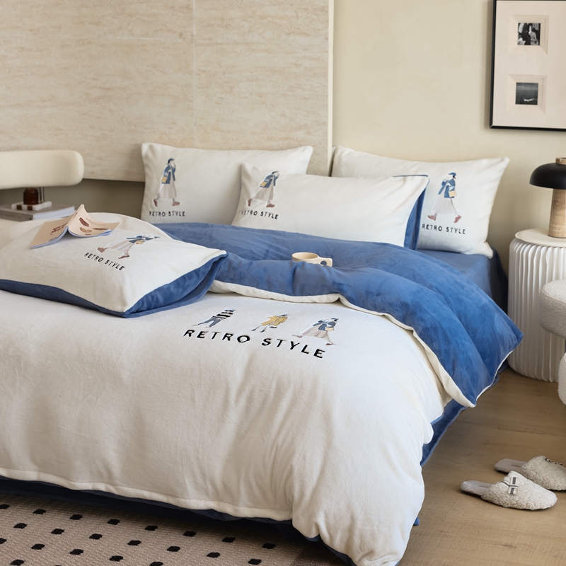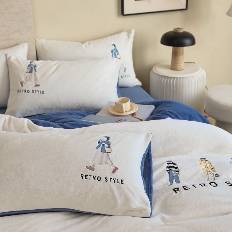 121【牛奶绒刺绣四件套】2025新款毛毯被子四件套单件床单被套床笠珊瑚绒牛奶绒冬被法兰绒兔毛绒刺绣男孩-Boy系列场景二 baby-雾兰