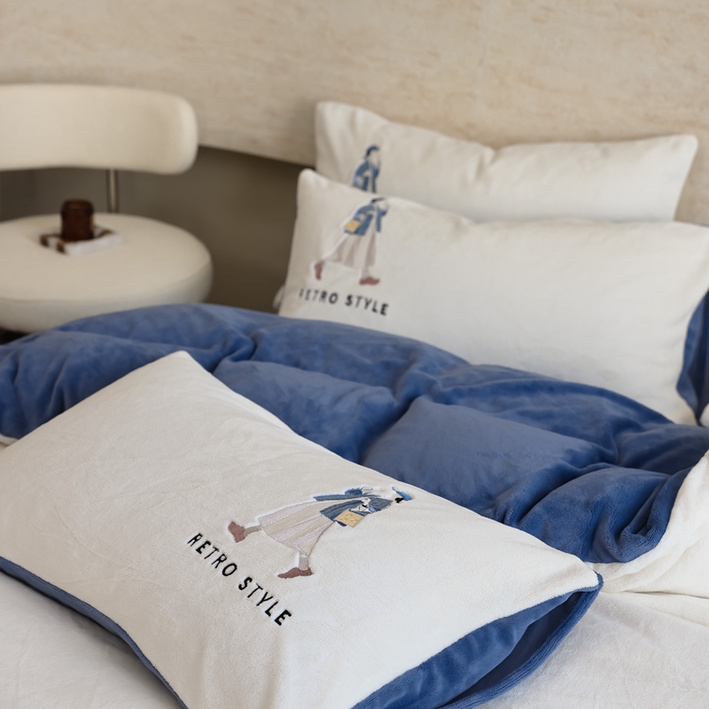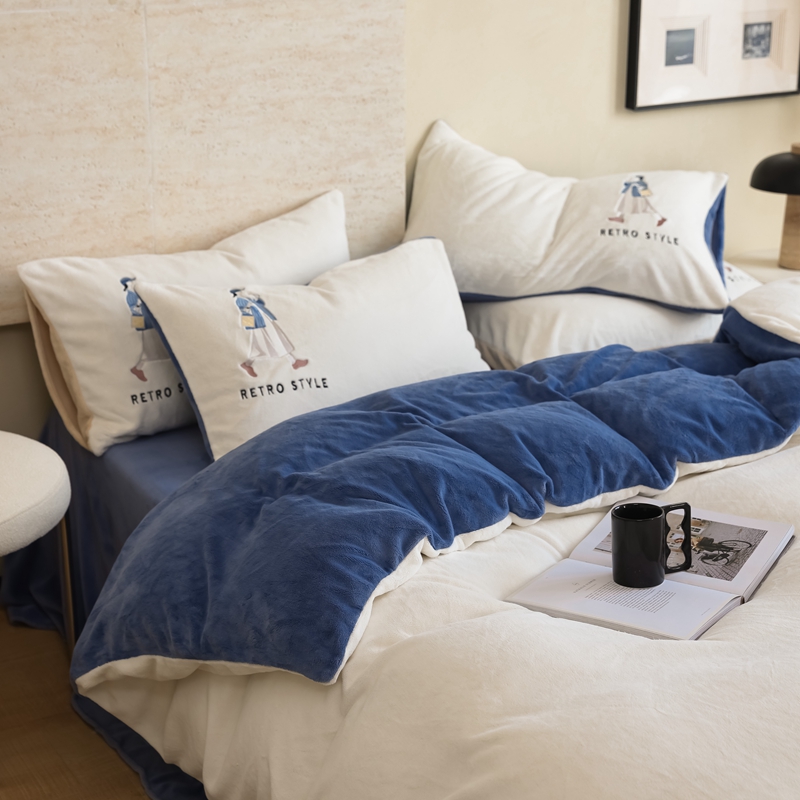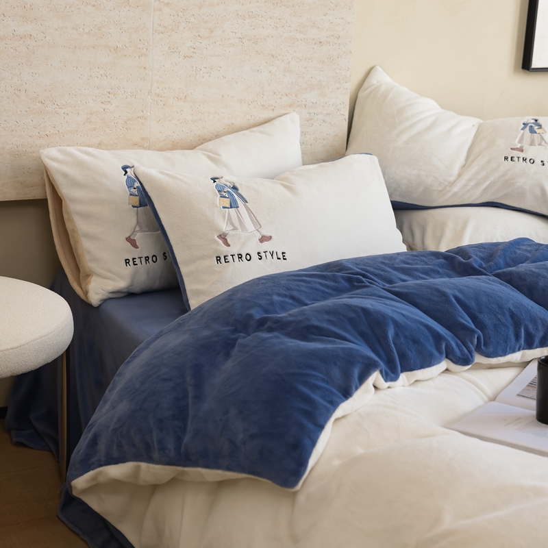 商品名称:121【牛奶绒刺绣四件套】2025新款毛毯被子四件套单件床单被套床笠珊瑚绒牛奶绒冬被法兰绒兔毛绒刺绣男孩-Boy系列场景二 baby-雾兰