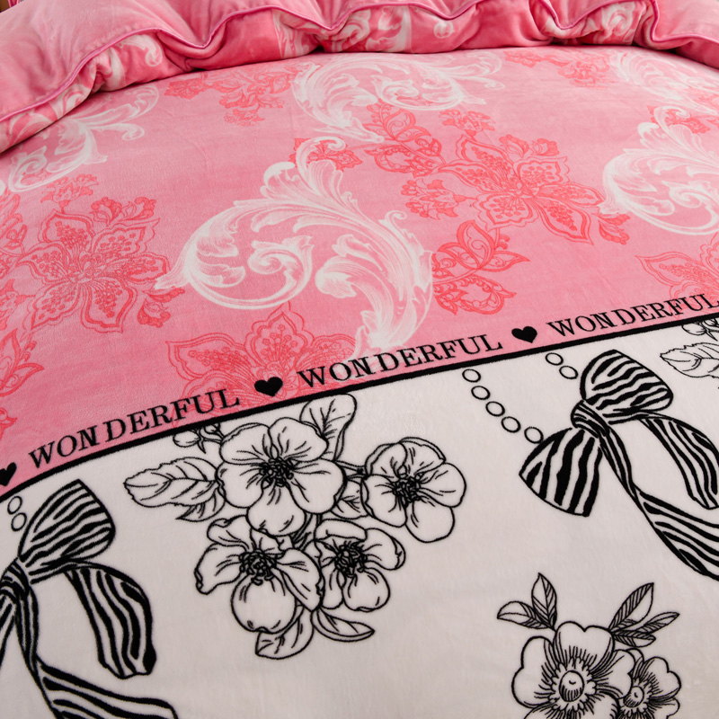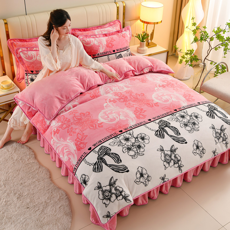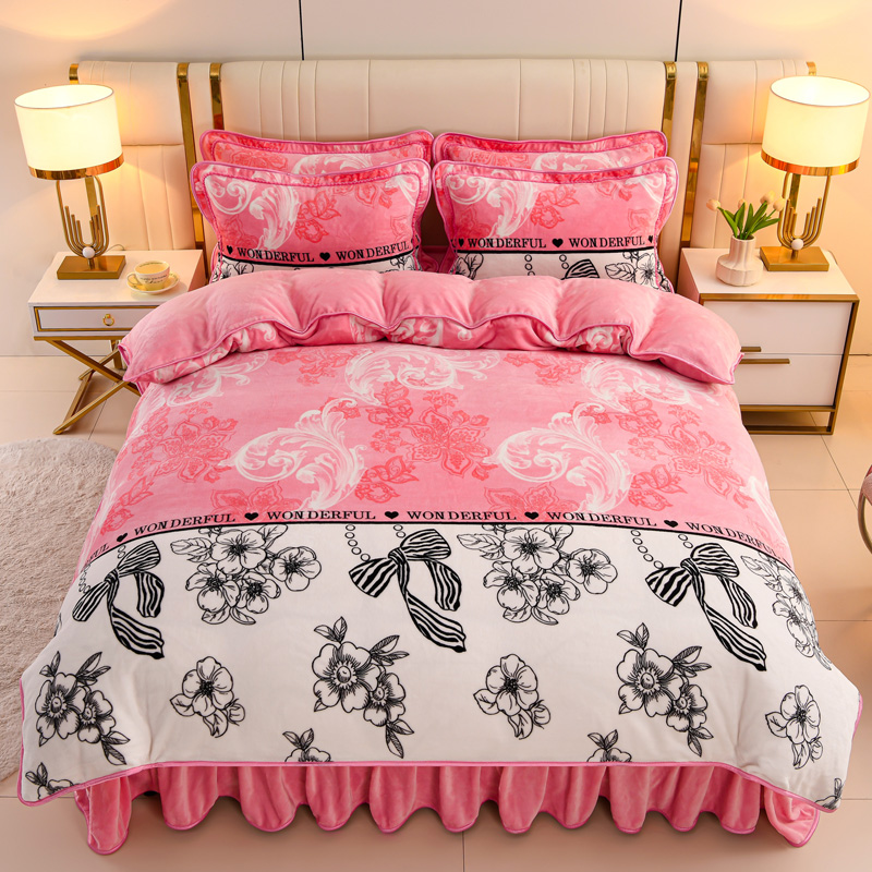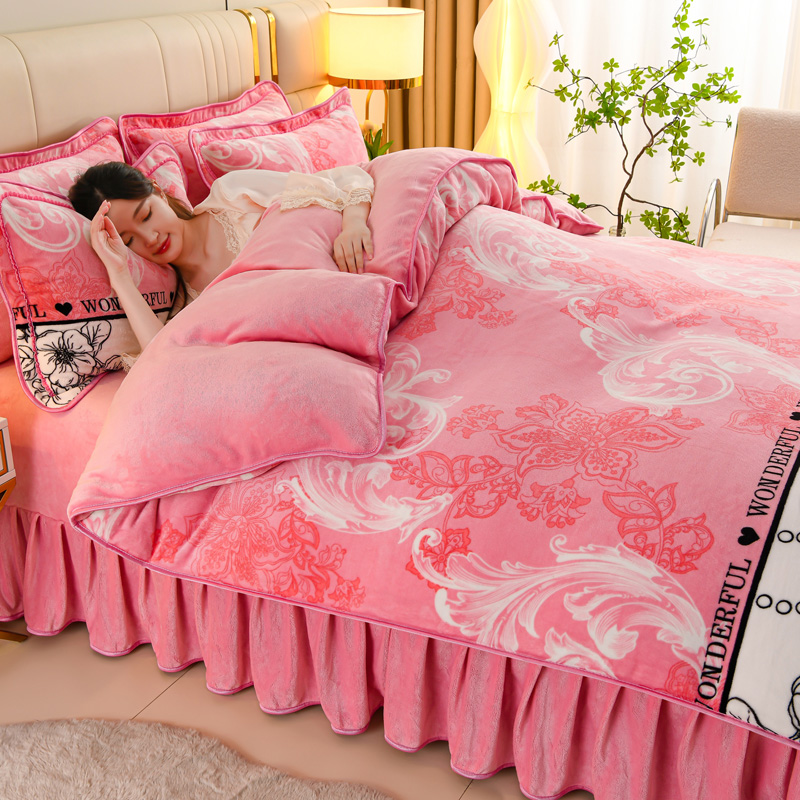 沐妍家纺 2024新款7斤牛奶法莱绒金貂绒印花四件套 粉黛佳人,粉黛佳人