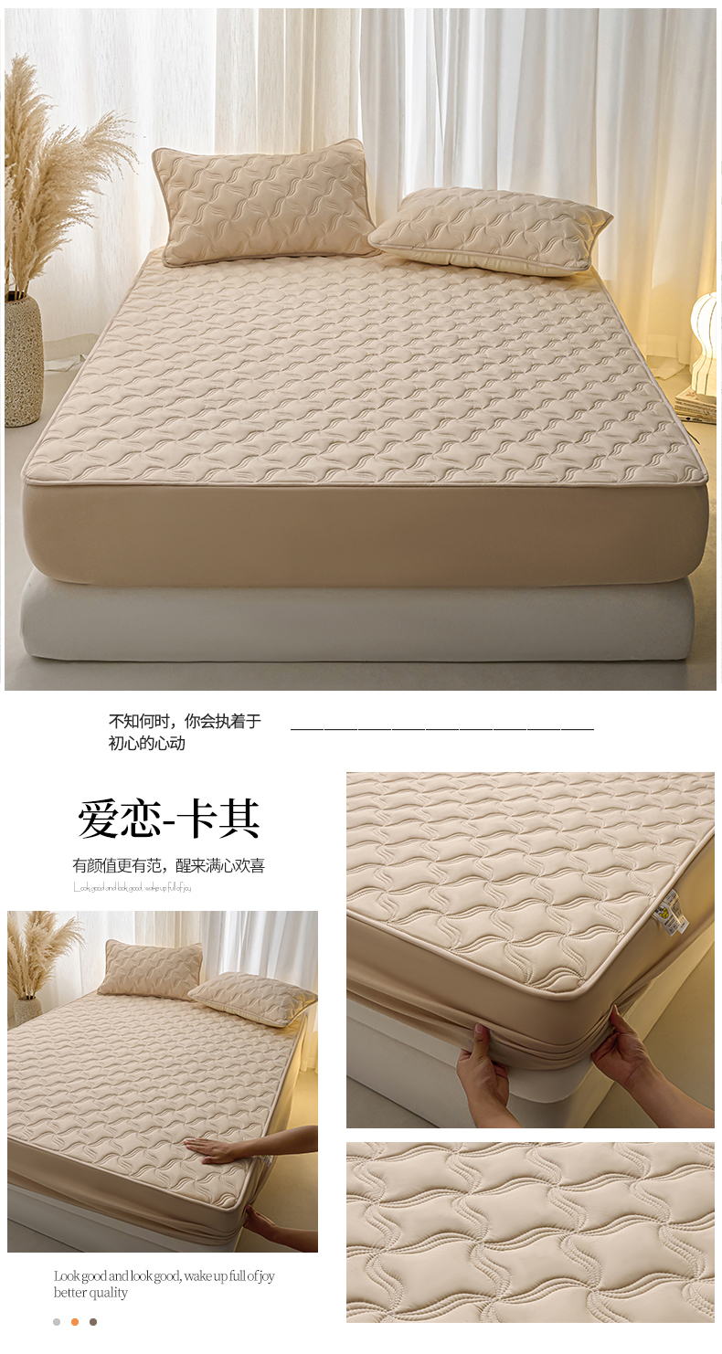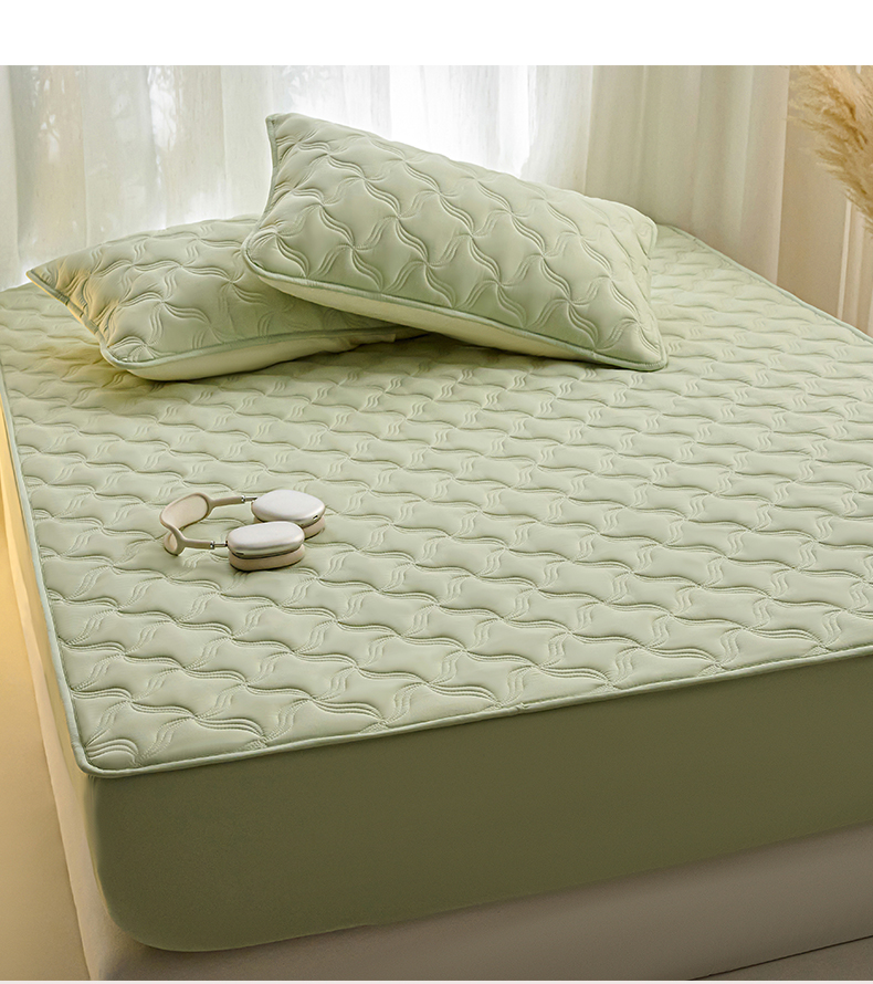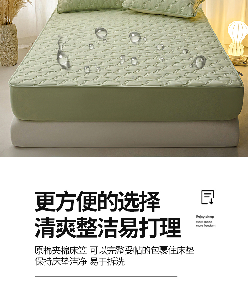 小叮当家纺仓储工厂店 2025新款A类原棉大豆防水床笠单品床笠单件单床笠隔尿夹棉床笠床垫保护罩外贸跨境 爱恋-草绿