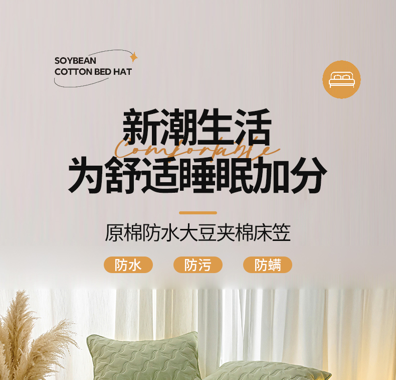 • 91家纺网 家纺一手货源 找家纺 小叮当家纺仓储工厂店 2025新款A类原棉大豆防水床笠单品床笠单件单床笠隔尿夹棉床笠床垫保护罩外贸跨境 爱恋-草绿