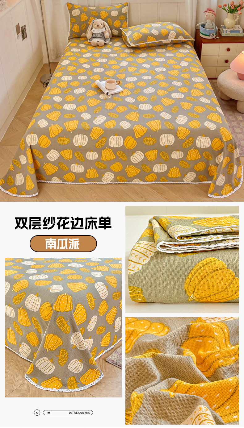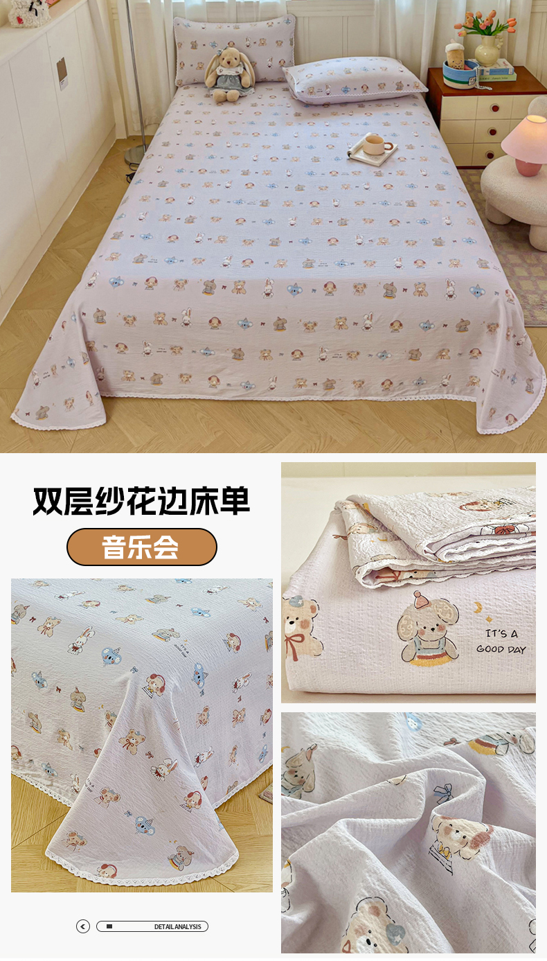 小叮当家纺仓储工厂店 2025新款云感提花双层纱花边单床单单件床单单品床单 繁花