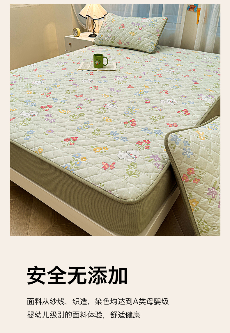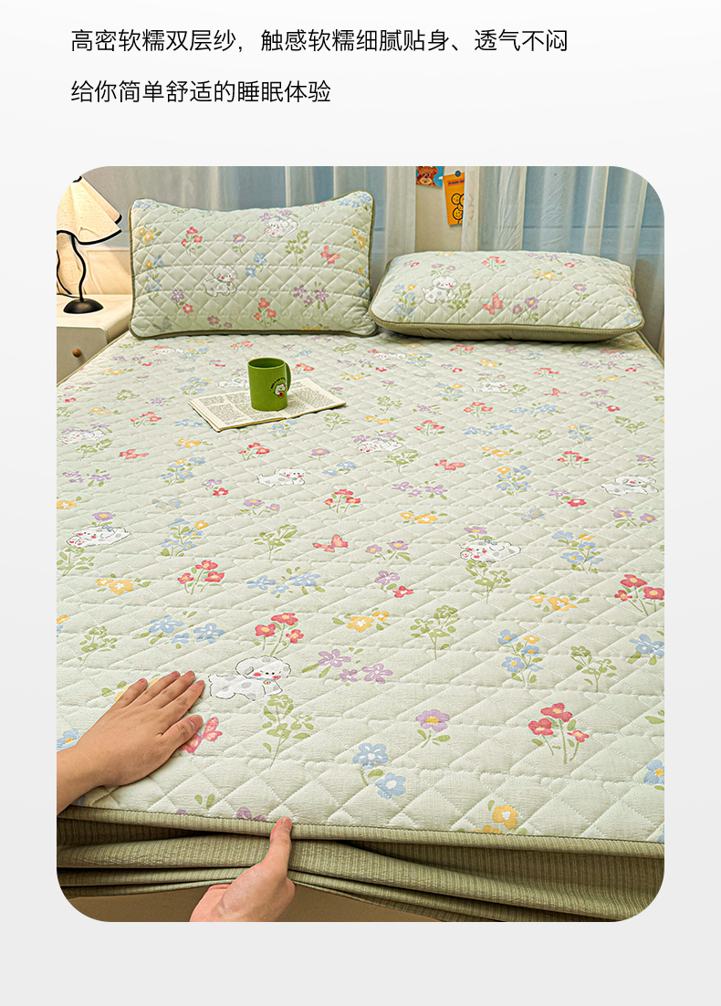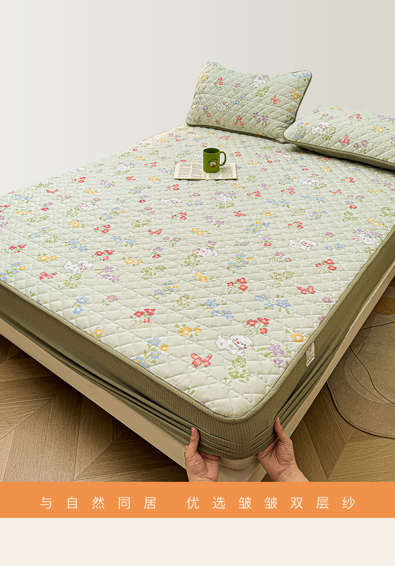 (总)雯豆家纺 2025新款复古风皱皱棉印花夹棉床笠三件套加厚床垫保护套,小南瓜,春日小狗,初夏,浪漫花语,爱尔蓝,初心,蝴蝶结小猫,花小愈,可爱TK,快乐萌宝,快乐时光,毛球团团,蘑菇仙子,奶萌小狗,小苍兰