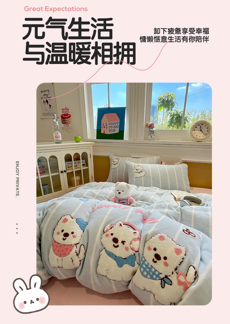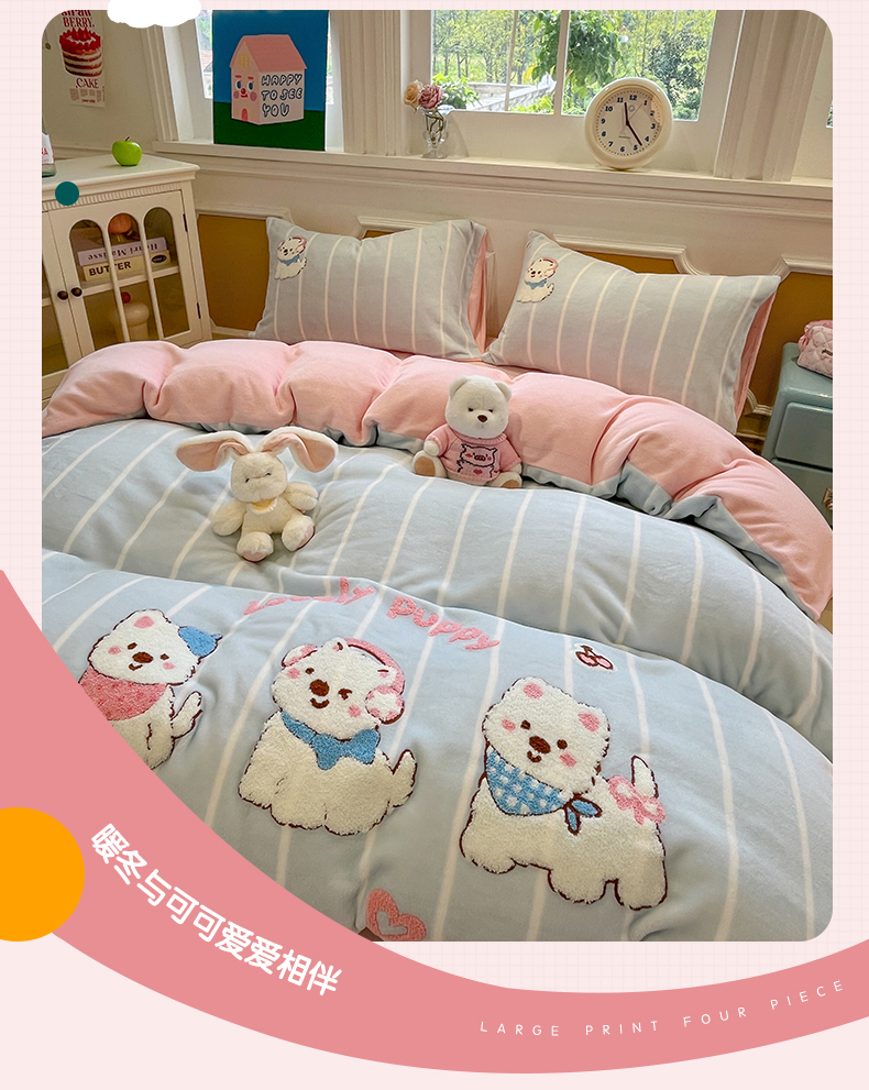 (总)星座家纺 2025新款A类卡通200g牛奶绒毛巾绣四件套,萌汪乐园,彩虹梦乡,春日漫游,粉糯猫咪,粉甜喵语,煤球精灵,萌宠奶油,企鹅伙伴,森林派对,甜心莓果,小狗暖居,小兔花漾