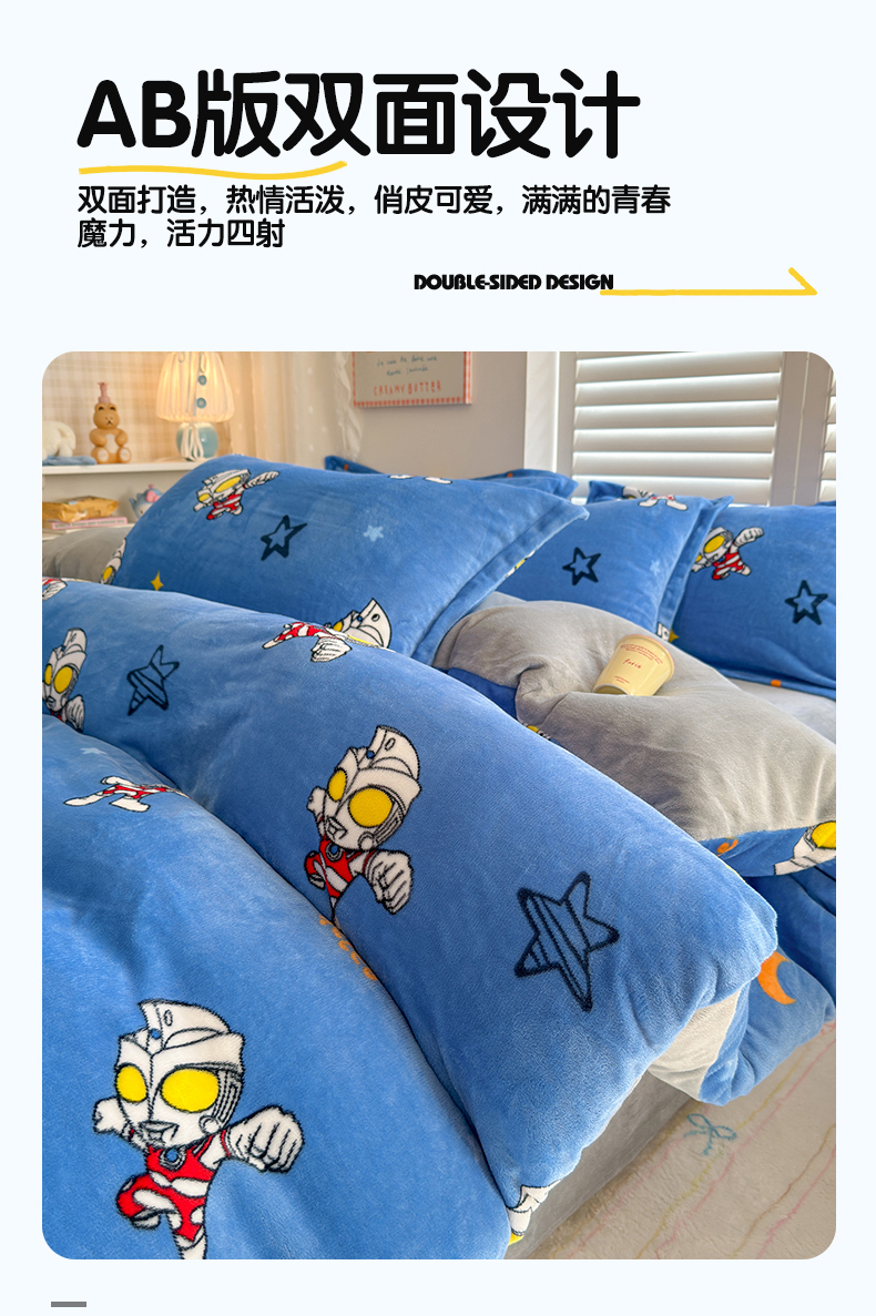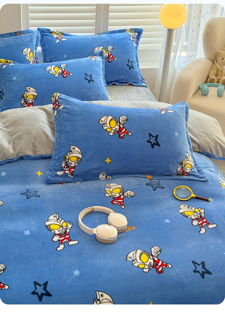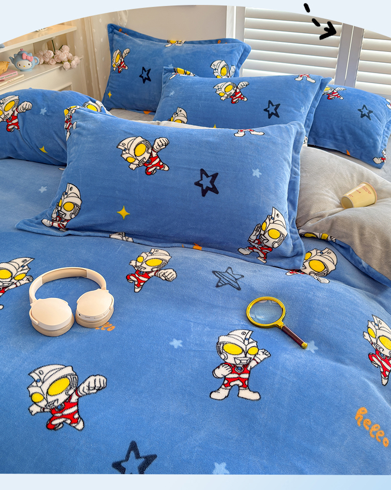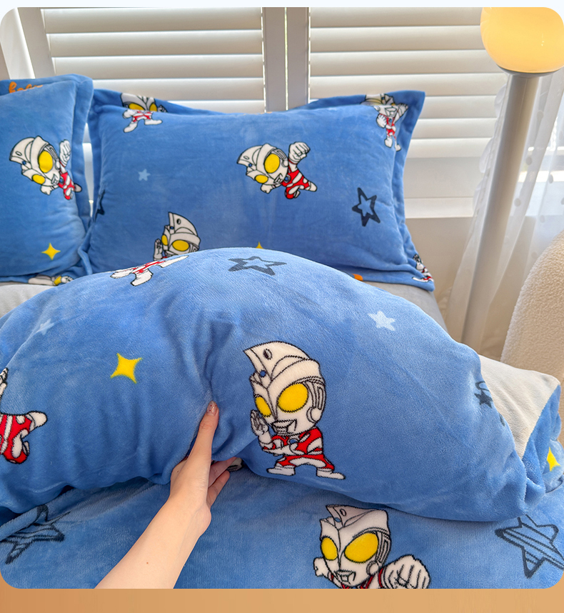 • 91家纺网 家纺一手货源 找家纺 名兮家居 2025新款经典奥特曼-三丽鸥加厚牛奶绒单被套 艾斯