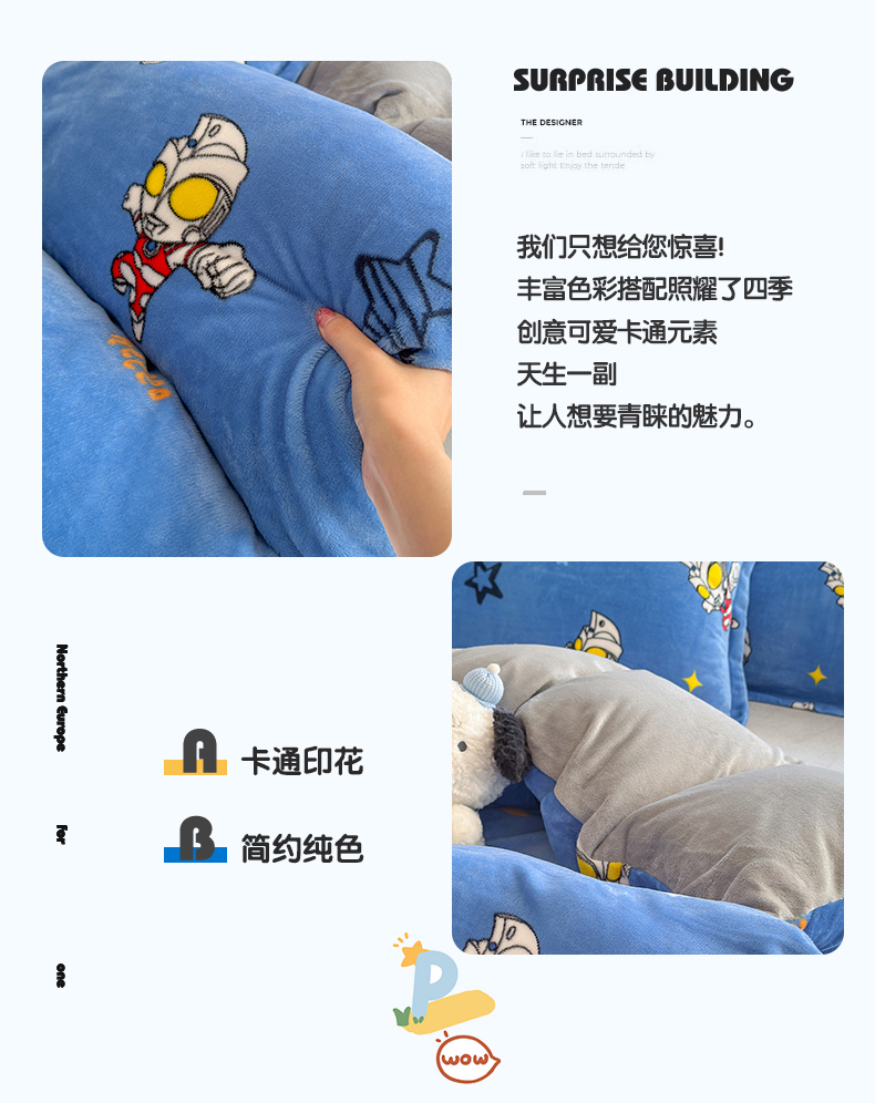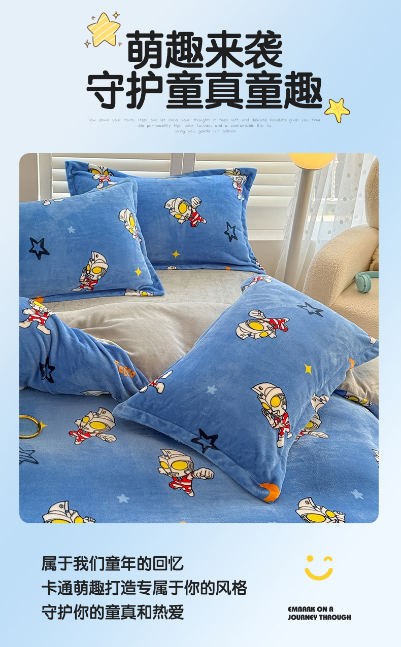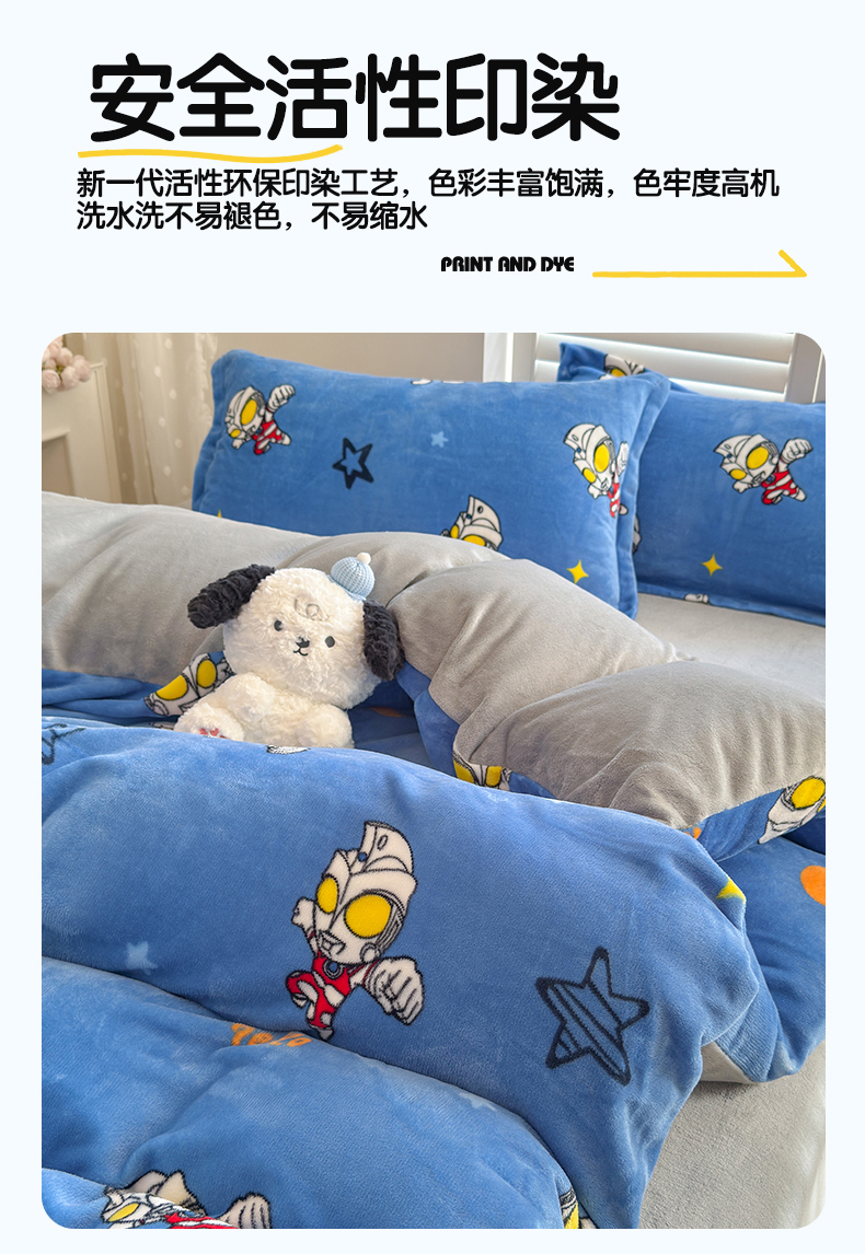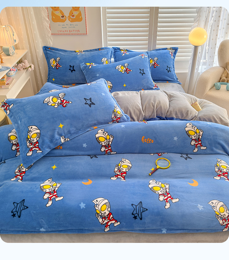 • 91家纺网 家纺一手货源 找家纺 名兮家居 2025新款经典奥特曼-三丽鸥加厚牛奶绒单被套 艾斯