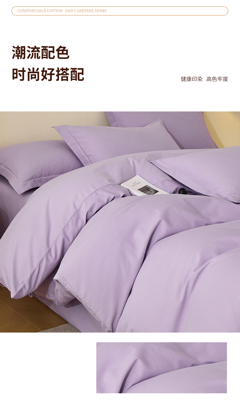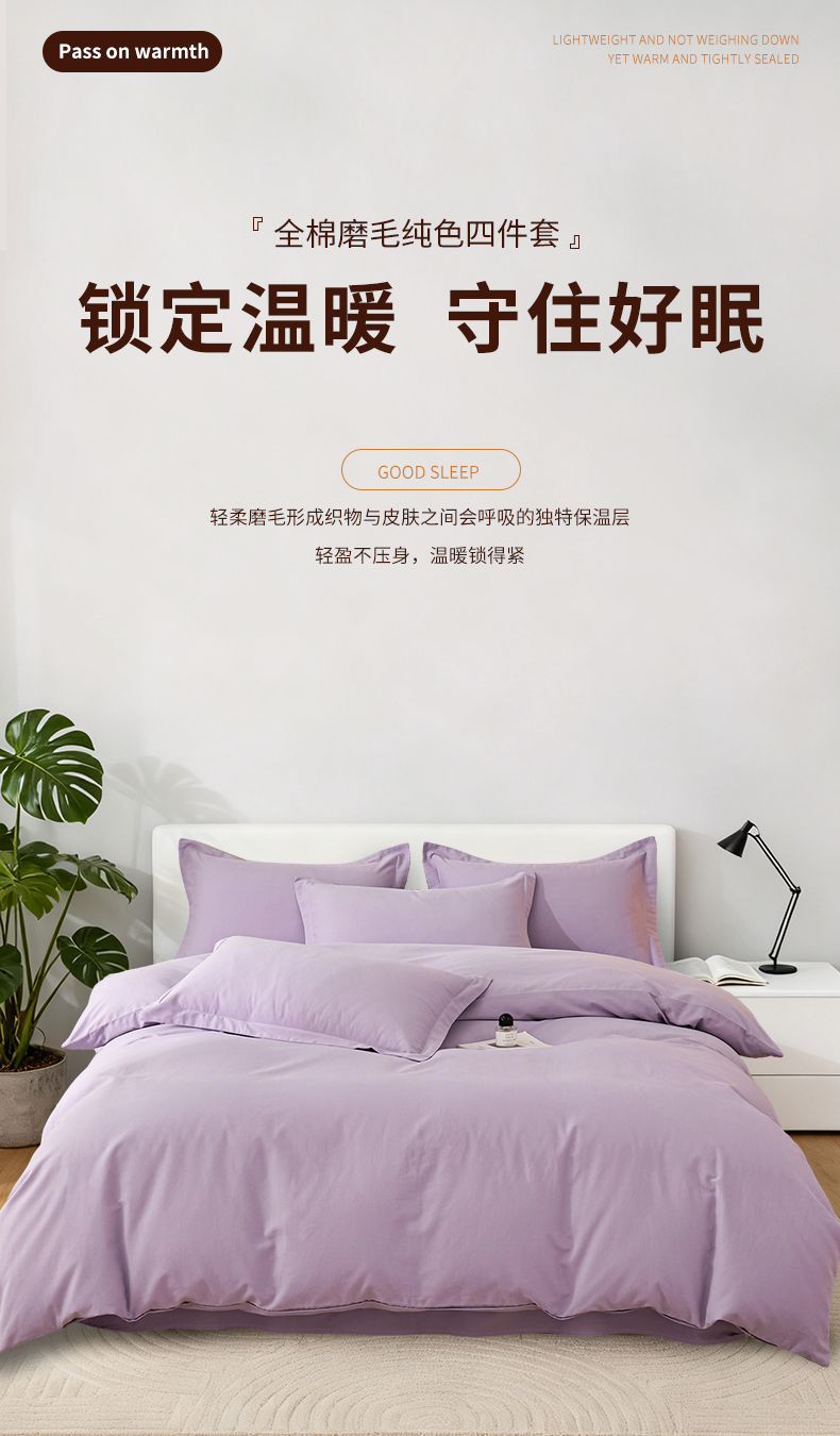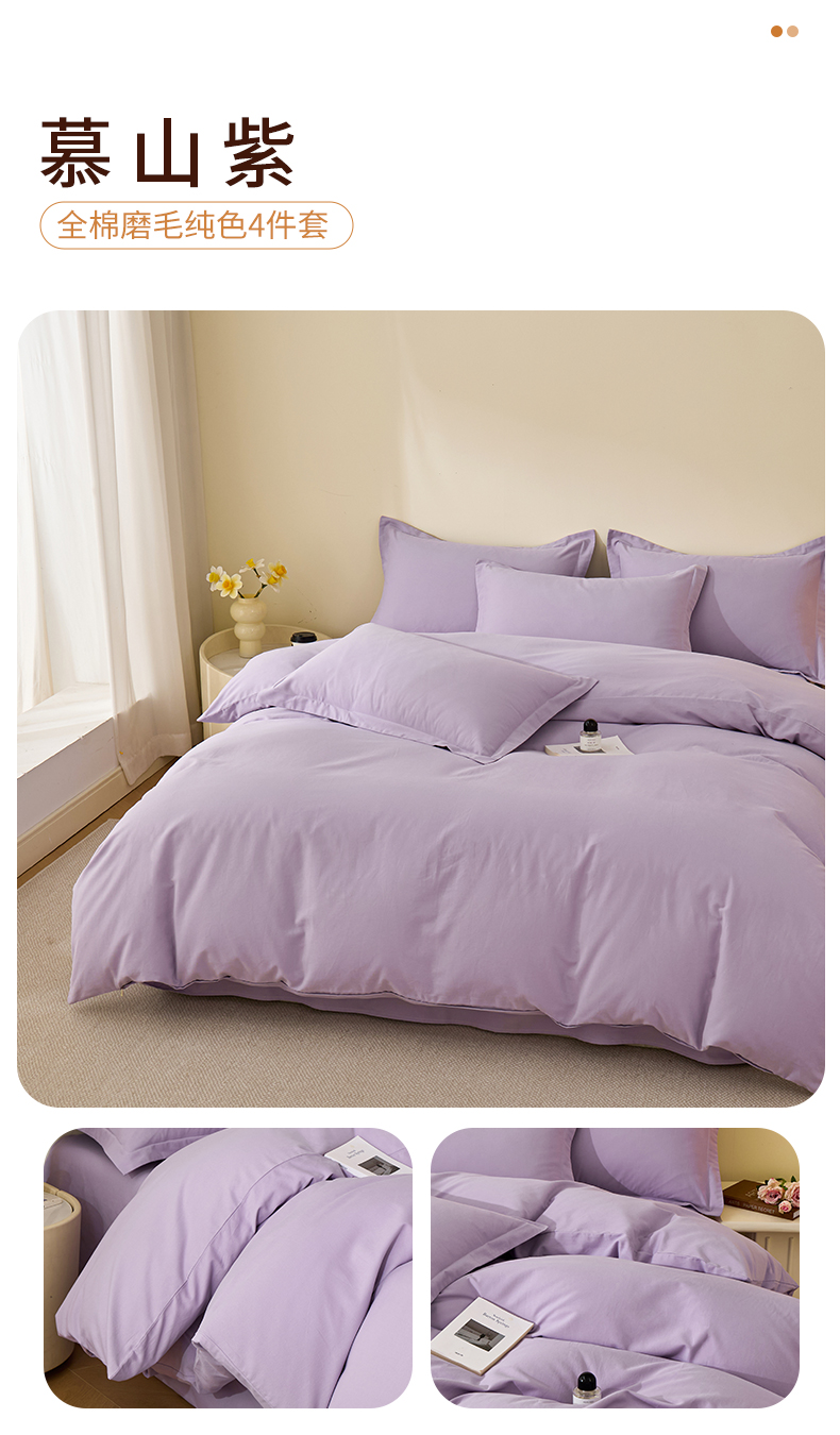 当前位置: 91家纺网 > 商品网购 > 床品套件 > 四件套 > 全棉普通四件套 > 元元家居(元元被业) 2025秋冬新款全棉纯棉磨毛纯色四件套 慕山紫
