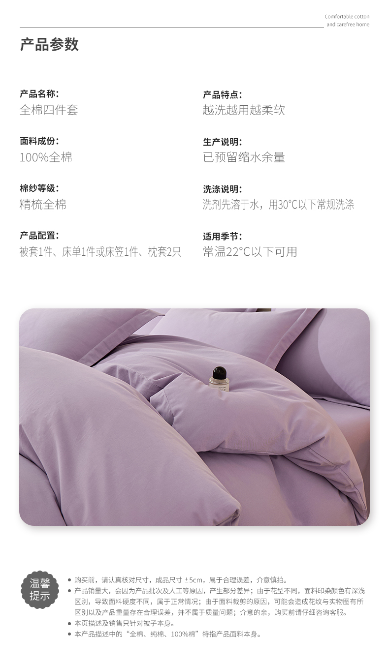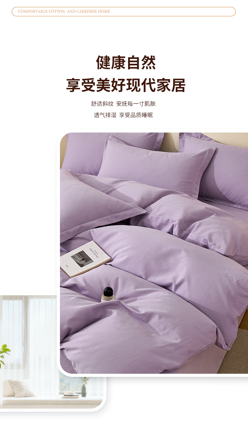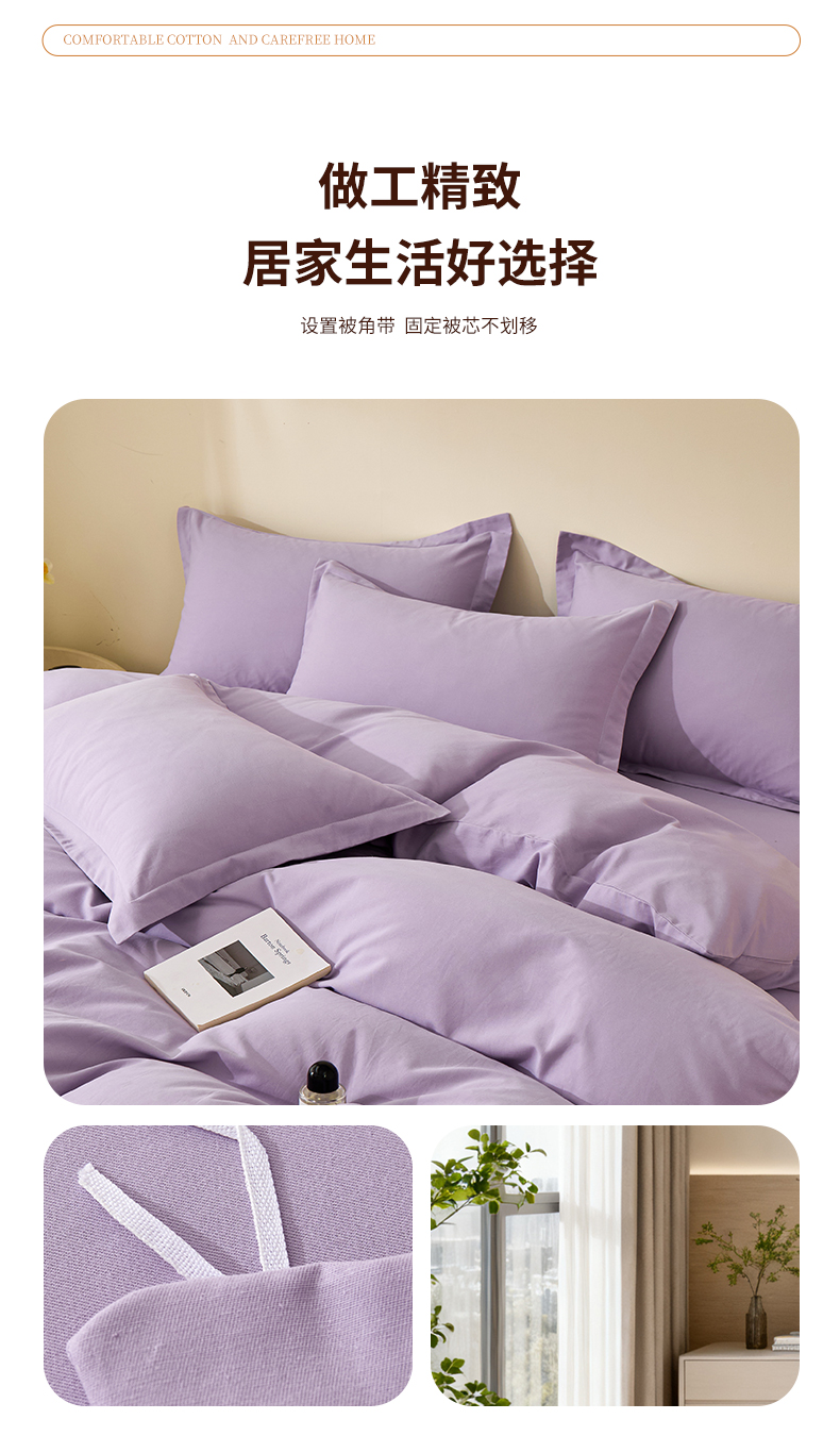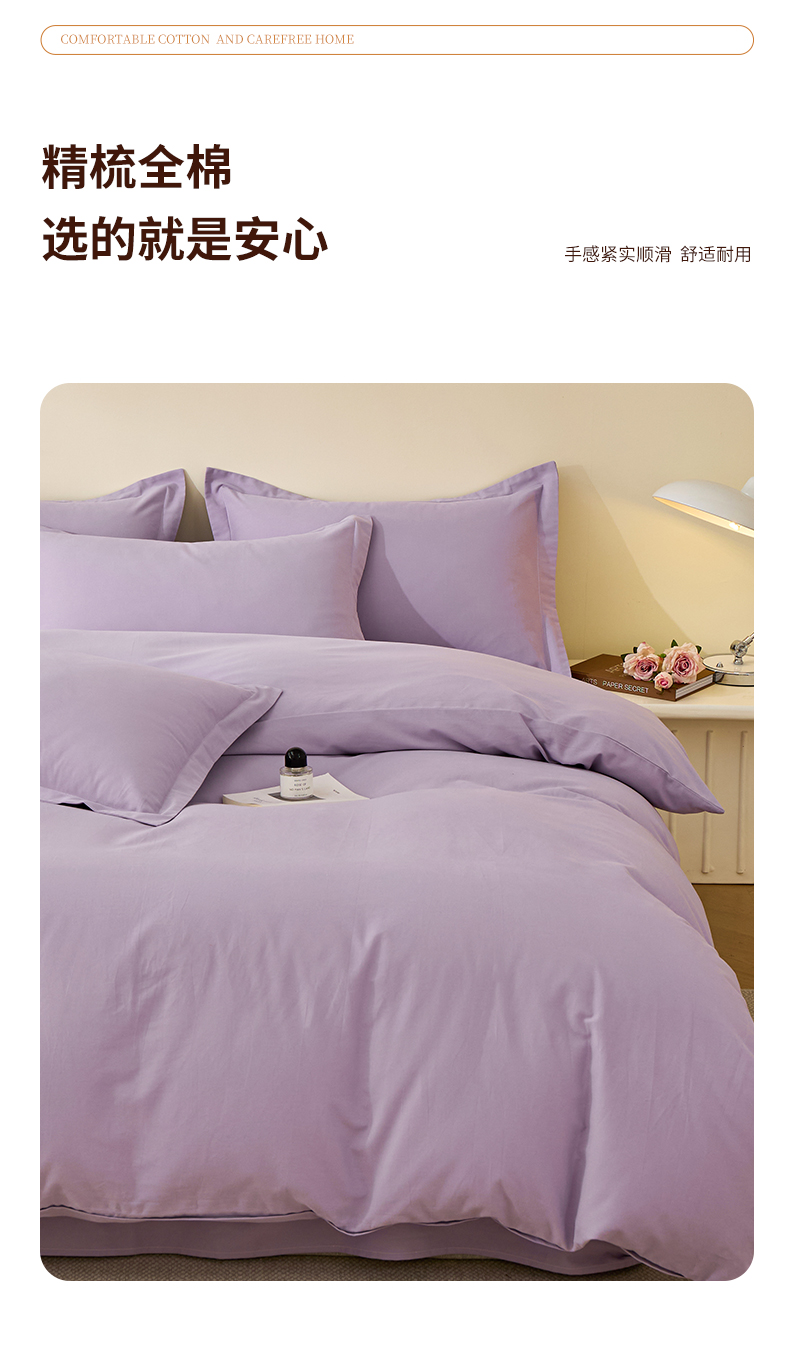 当前位置: 91家纺网 > 商品网购 > 床品套件 > 四件套 > 全棉普通四件套 > 元元家居(元元被业) 2025秋冬新款全棉纯棉磨毛纯色四件套 慕山紫