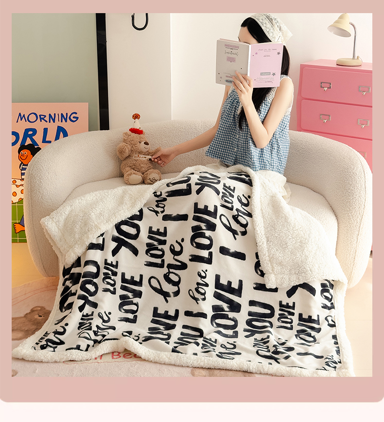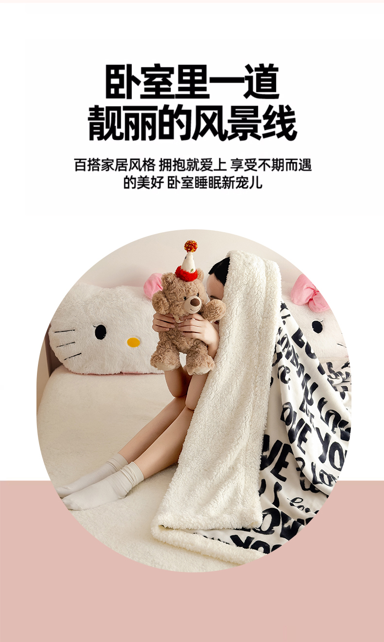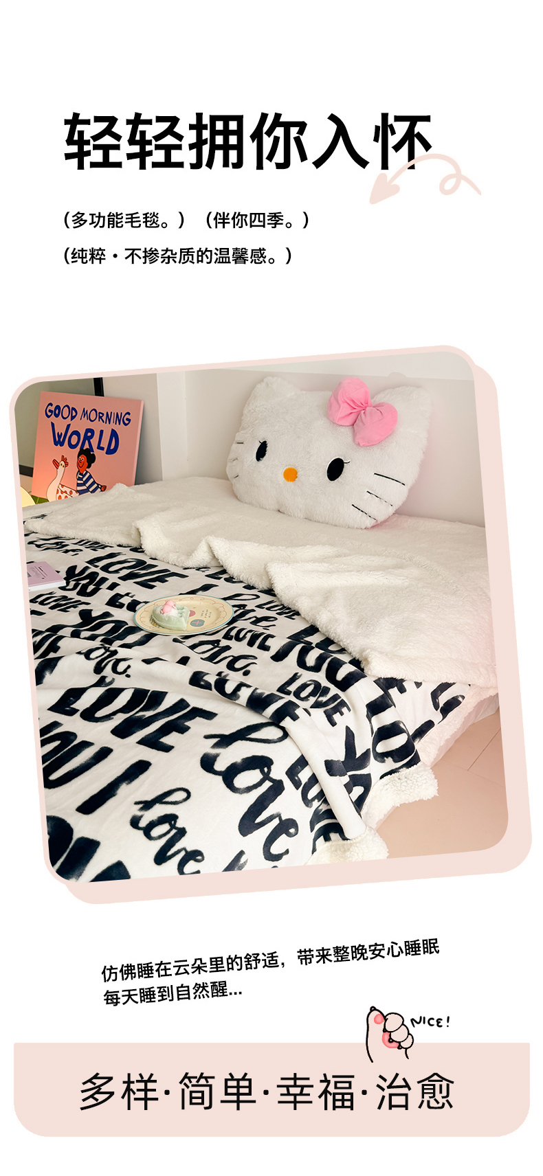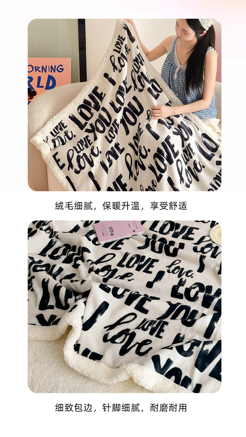 艾特你 2025新款ins羊羔绒牛奶绒可被套休闲毯单被套-毯子图 情话