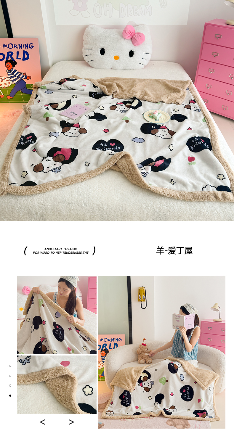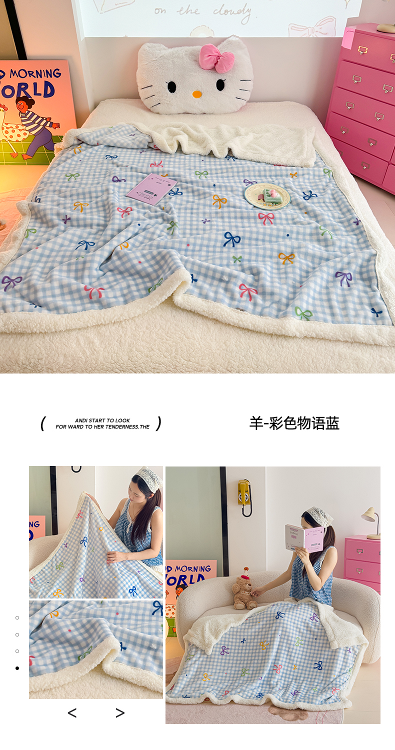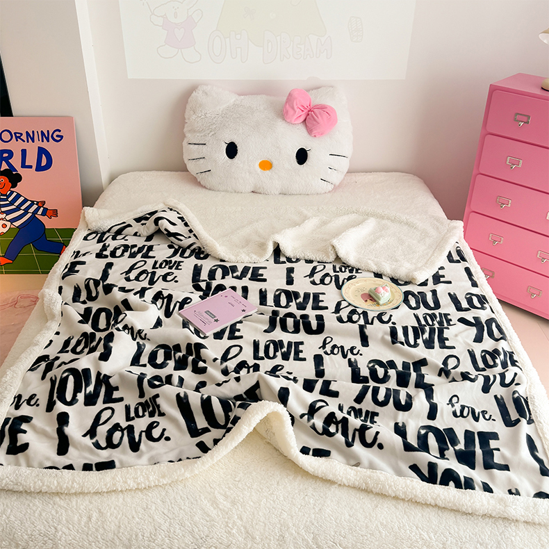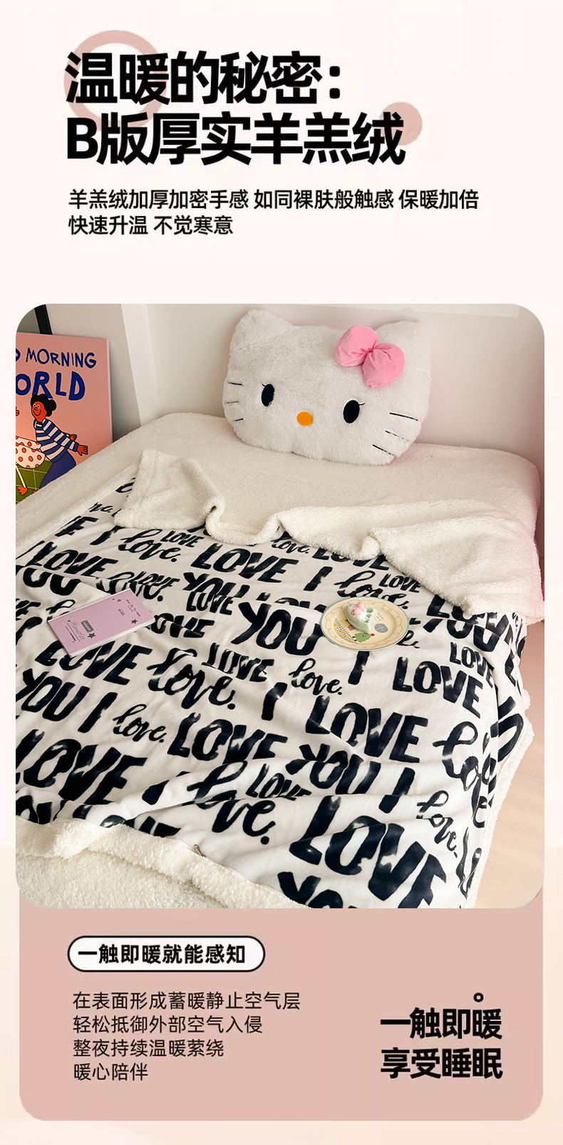 艾特你 2025新款ins羊羔绒牛奶绒可被套休闲毯单被套-毯子图 情话