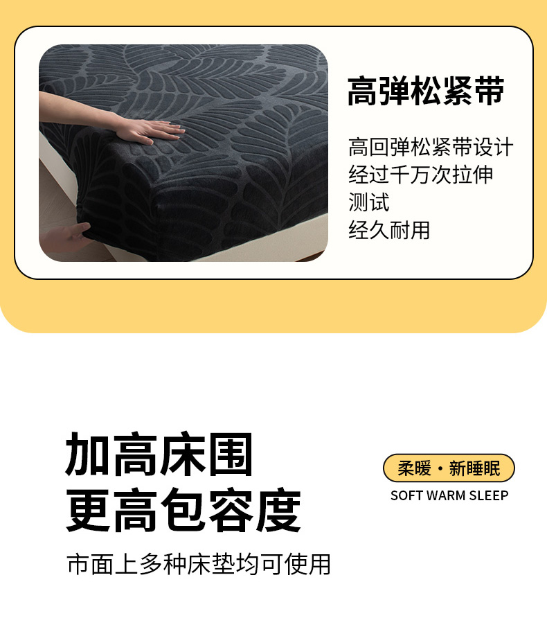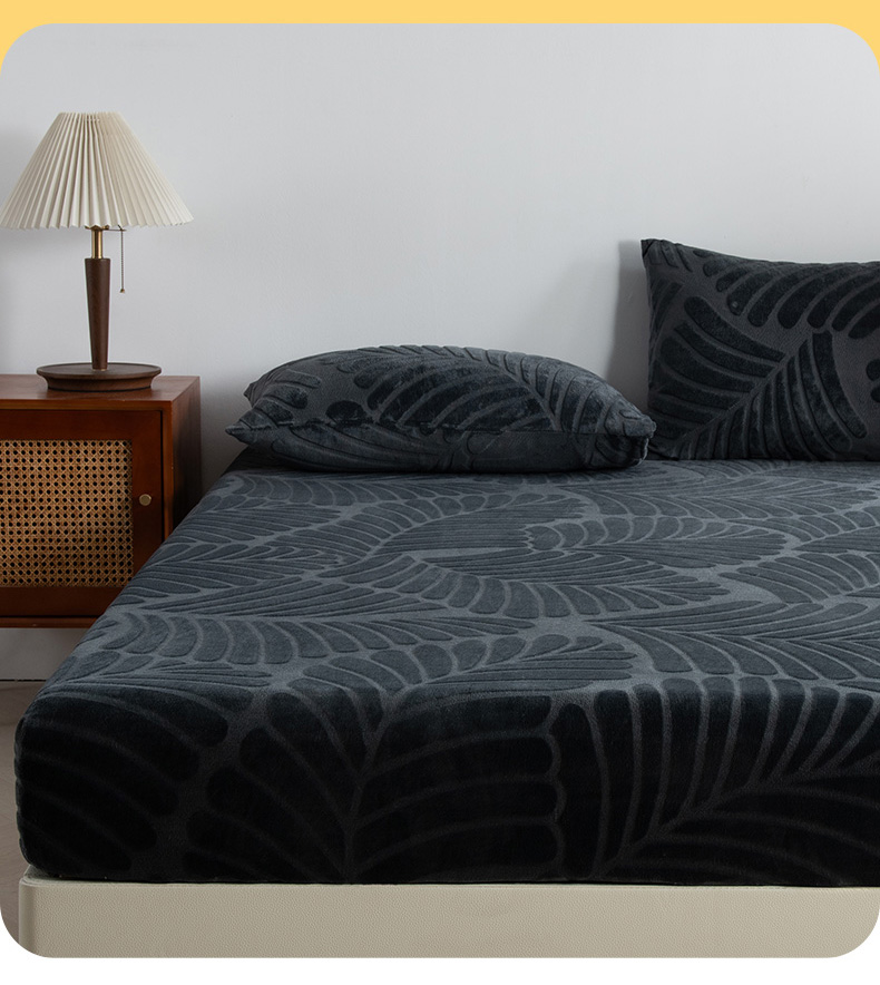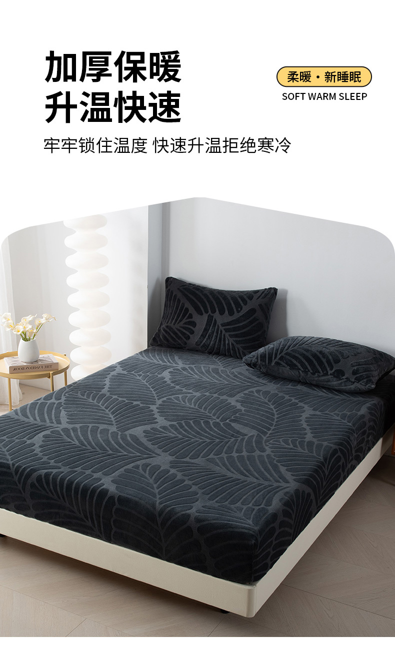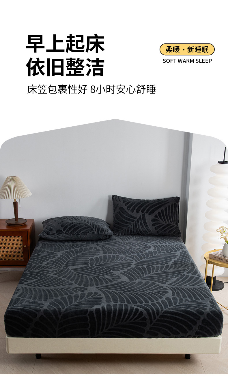 商品名称:给笠 2025新款220克牛奶绒大树叶单床笠 床笠单件 剪花大树叶 碳灰