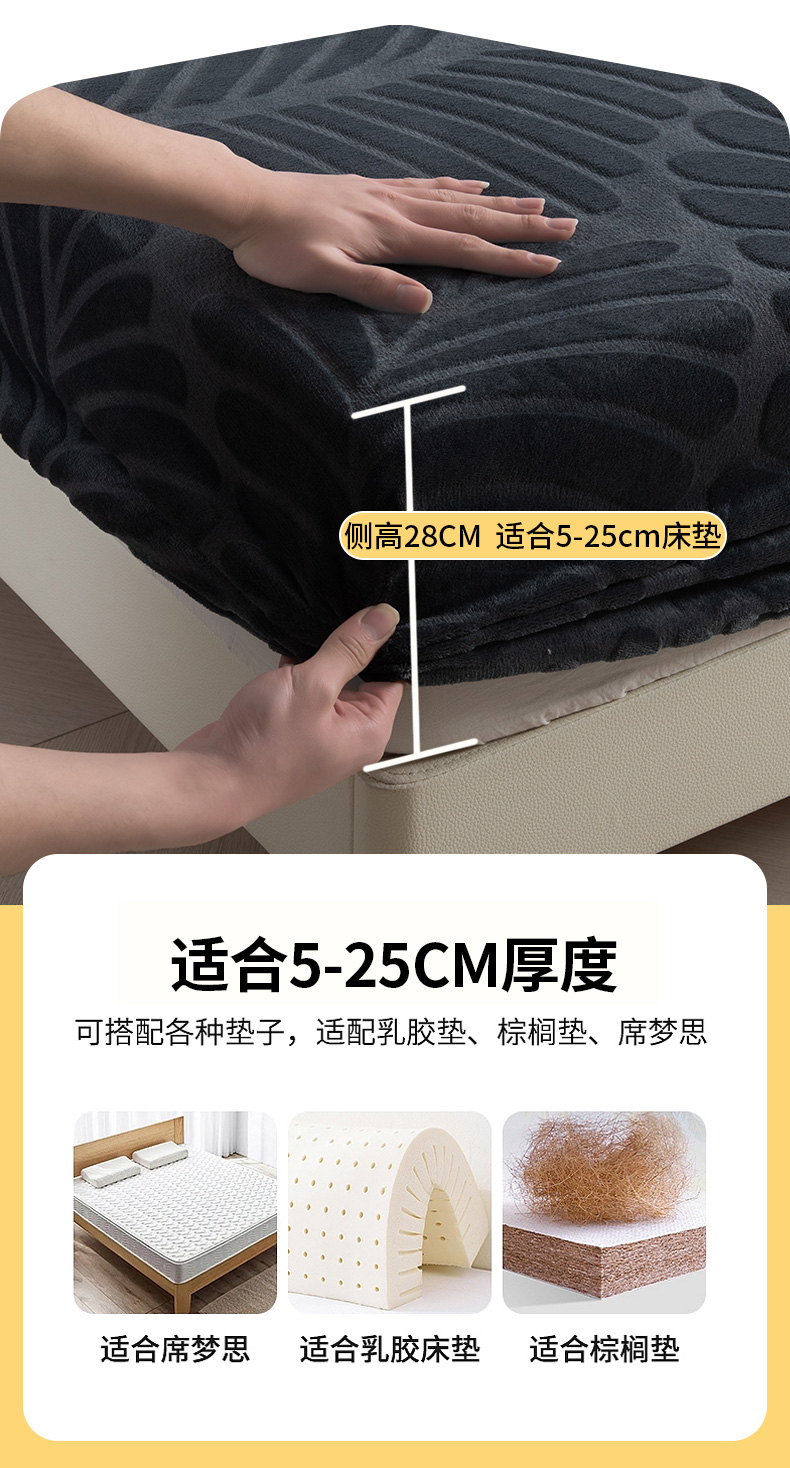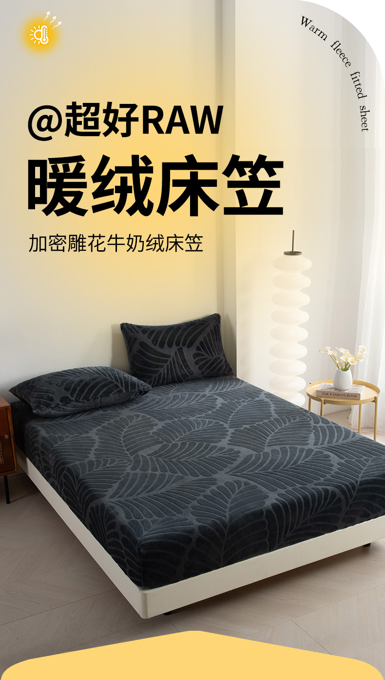 (总)给笠 2025新款200克剪花五叶草爱维牛奶绒床笠,深灰,宝石蓝,豆沙,雅士灰