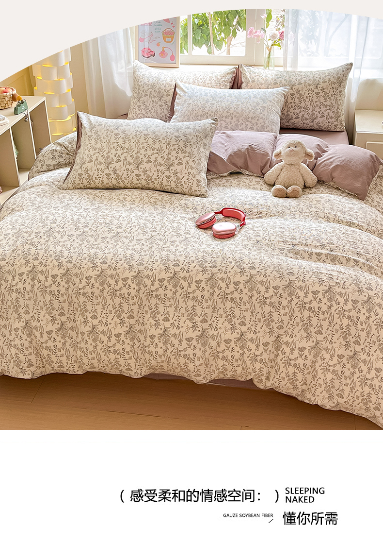 如约 2025新款木棉双层纱印花四件套 草木集黄