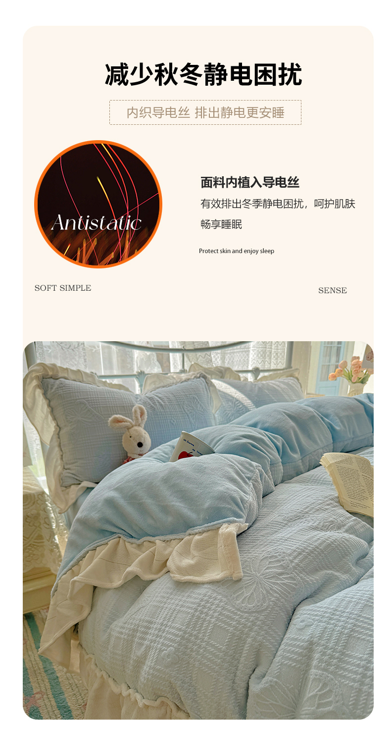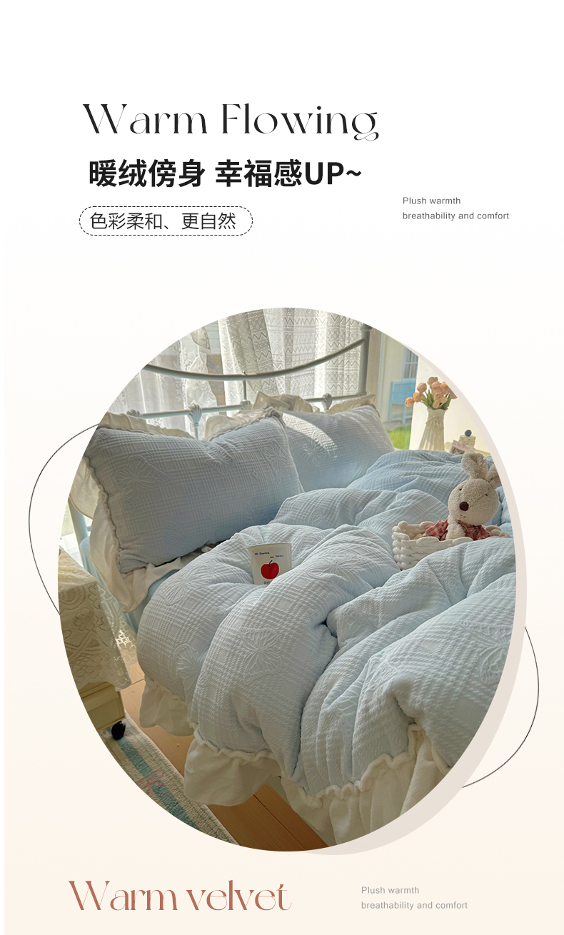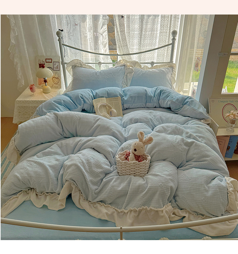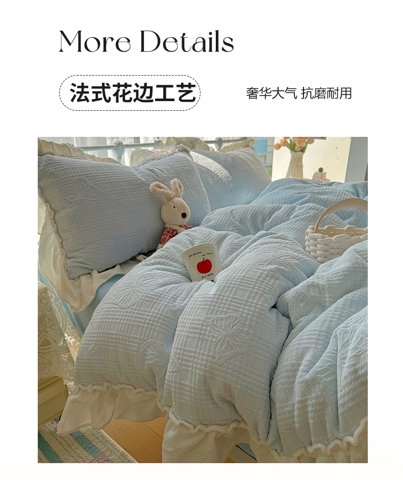 当前位置: 91家纺网 > 商品网购 > 床品套件 > 四件套 > 牛奶绒四件套 > 捌月 2025新款奶油风法式大花边雕花牛奶绒四件套 化蝶-晴空蓝