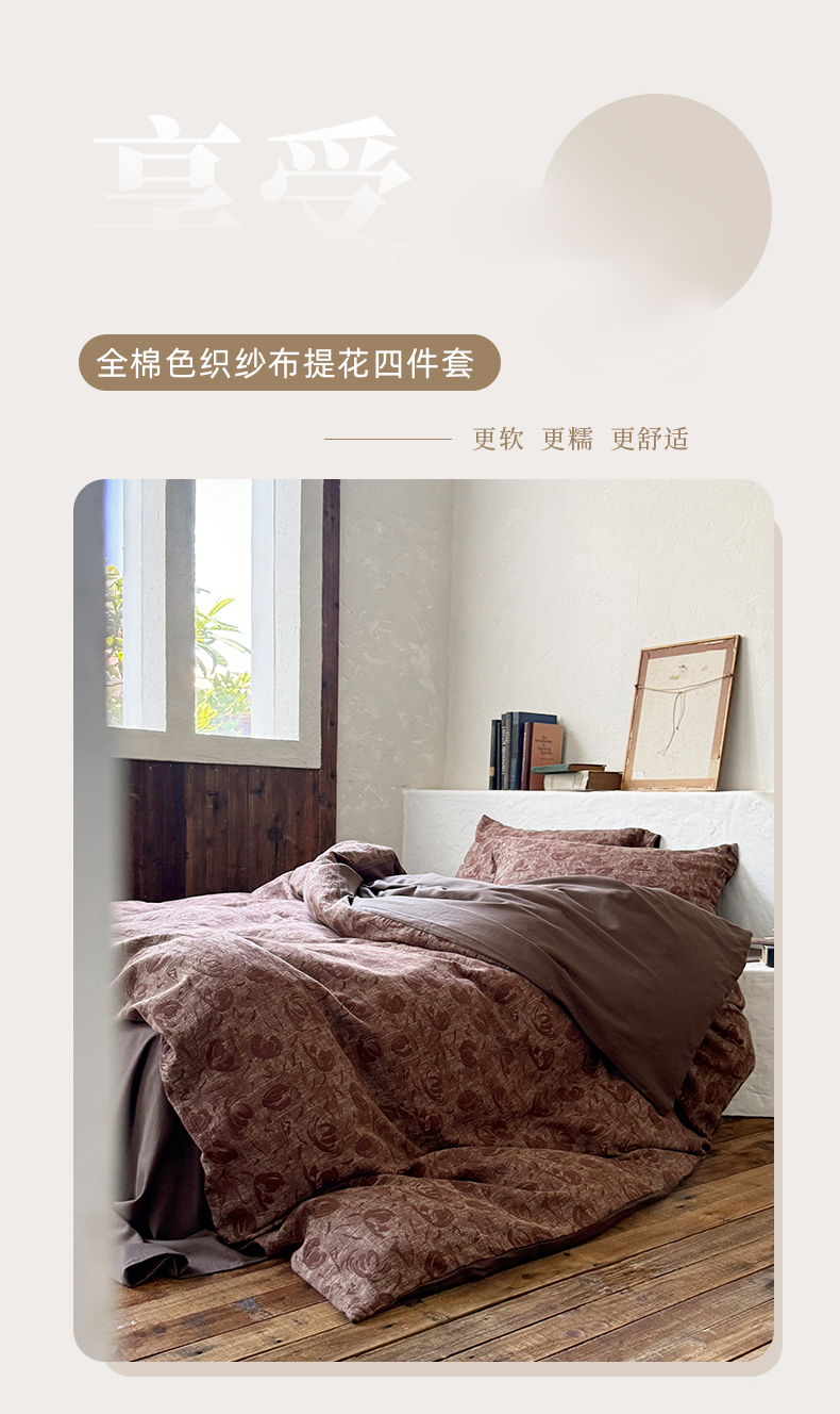 当前位置: 91家纺网 > 商品网购 > 床品套件 > 四件套 > 全棉普通四件套 > 山舍家居 2025新款全棉纯棉色织提花四件套-雾璃 雾璃-咖