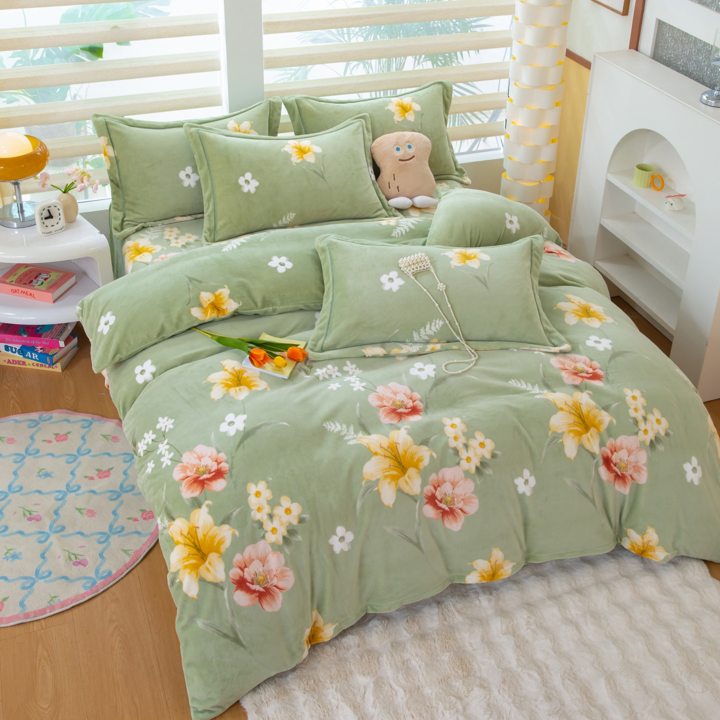 (总)卡迪亚家纺 2025新款牛奶绒床盖款荷叶边四件套-花颜,花颜-春湖绿,花颜-豆沙红,花颜-高级灰,花颜-活力蓝,花颜-魅力紫,花颜-抹茶绿,花颜-胭脂粉
