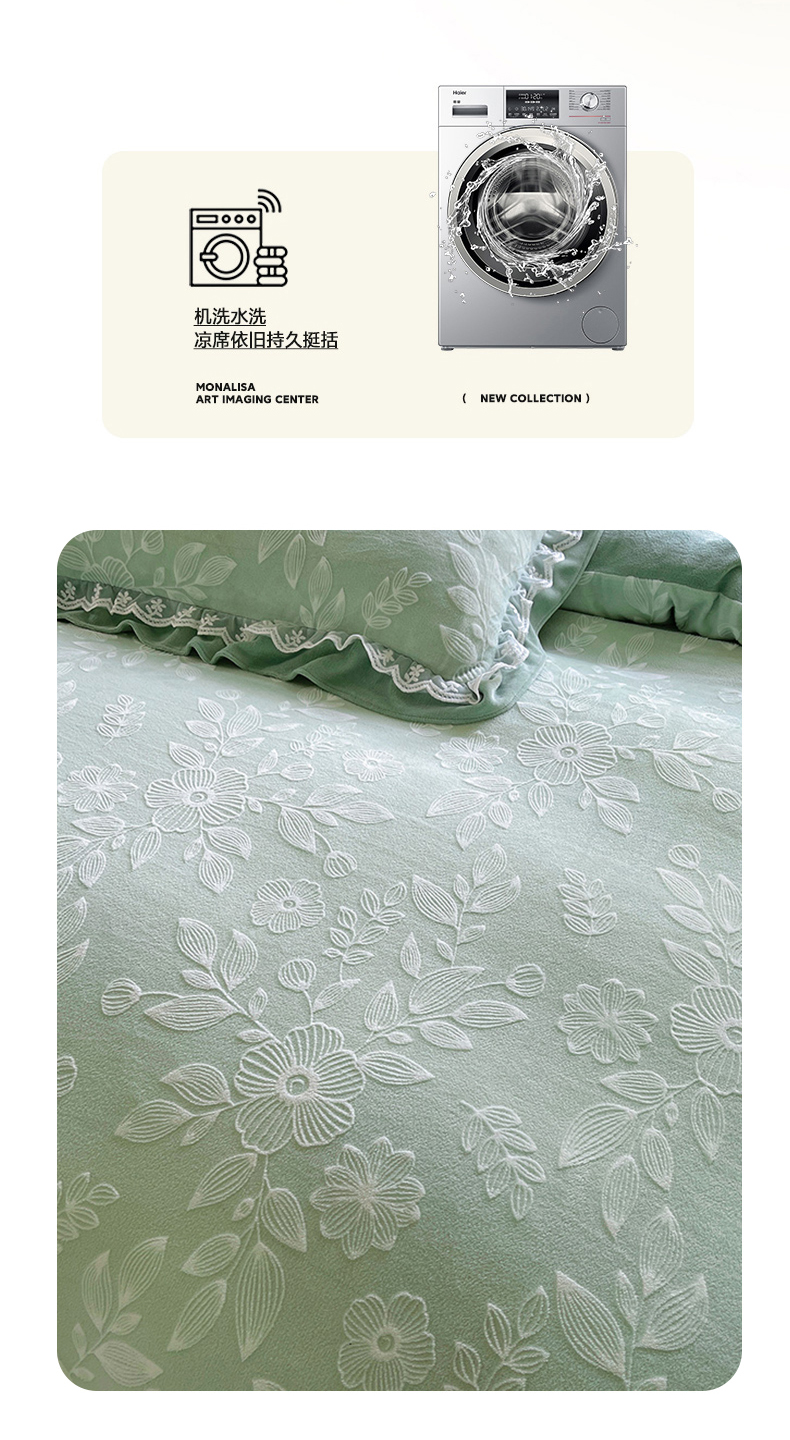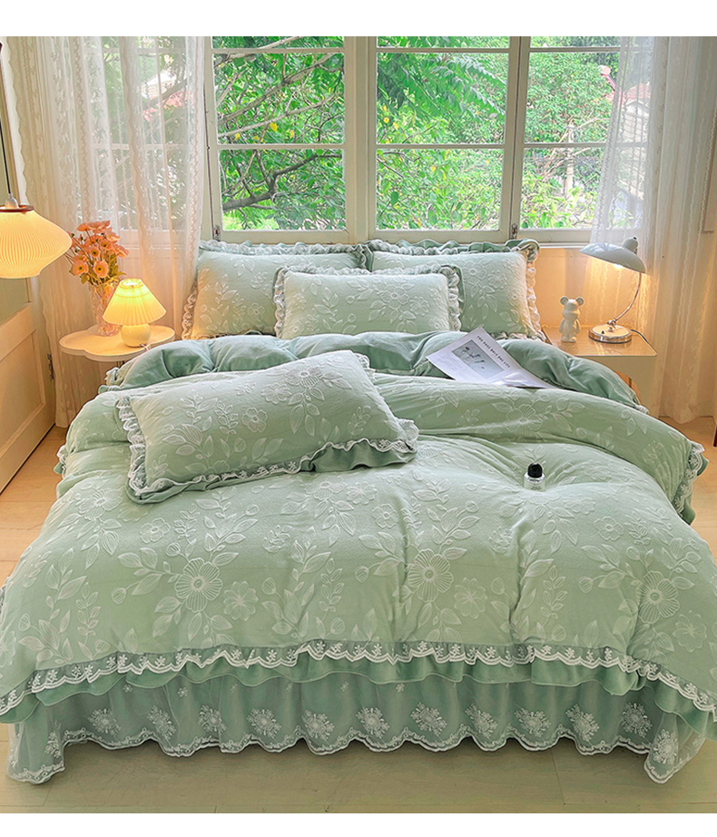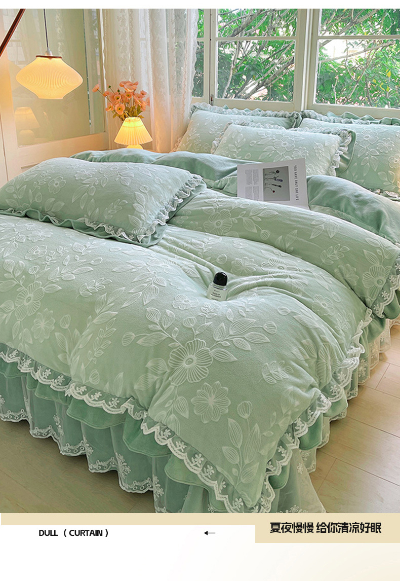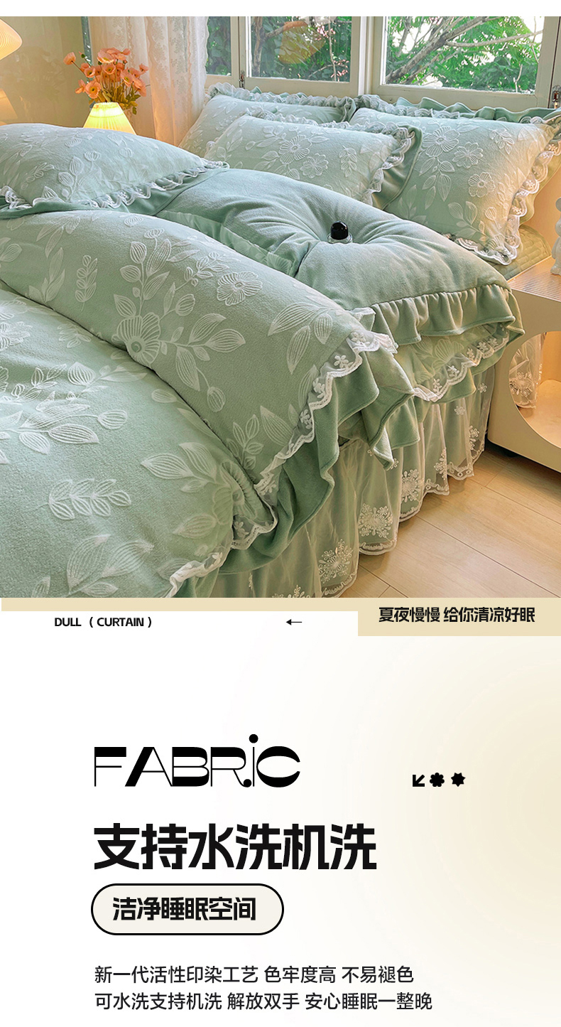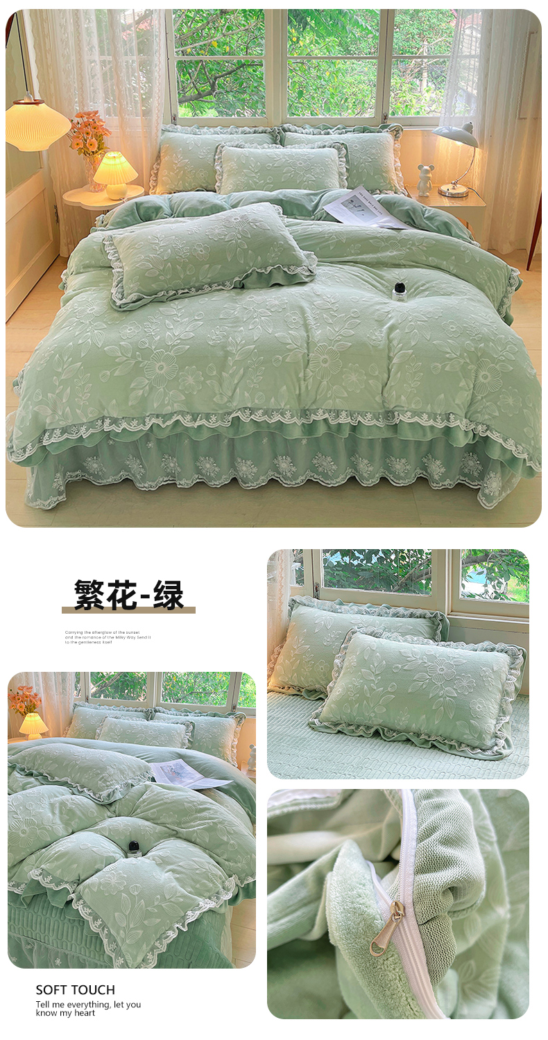 商品名称:梦之星 2025新款牛奶绒雕花床盖款床单款四件套 繁花-绿