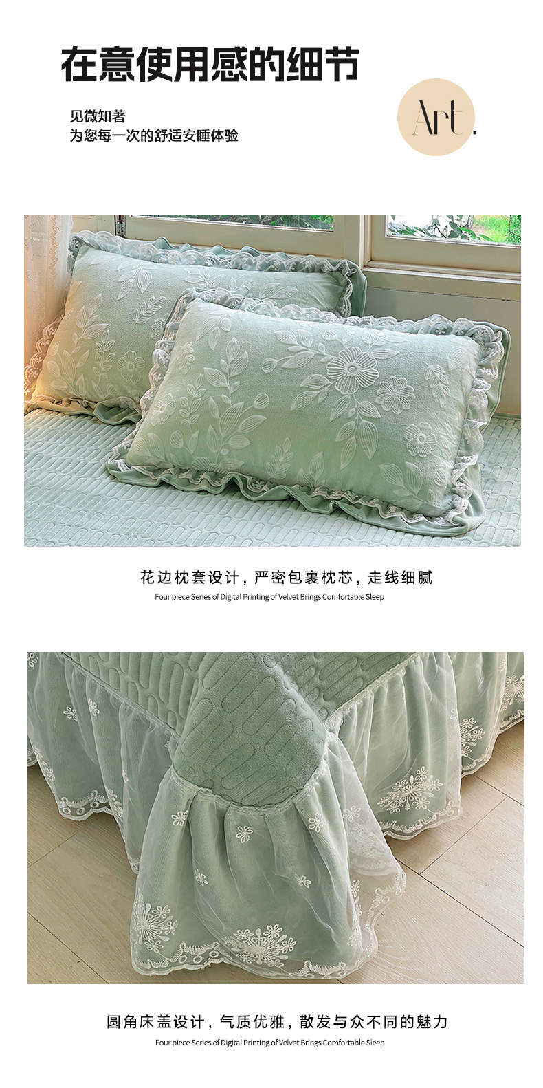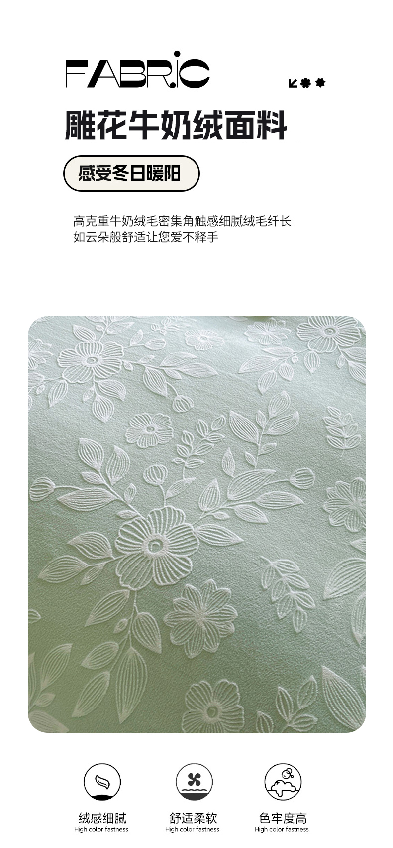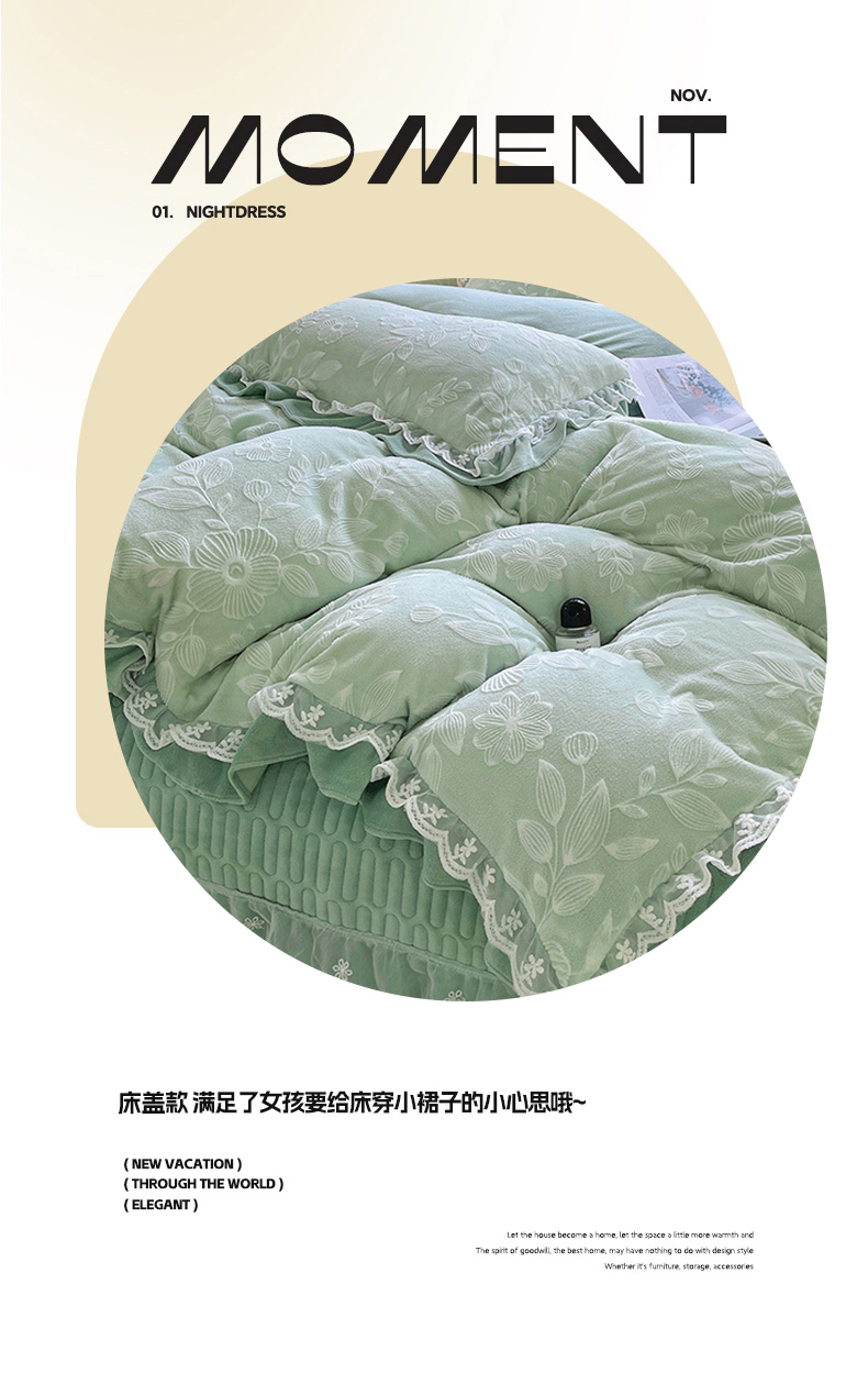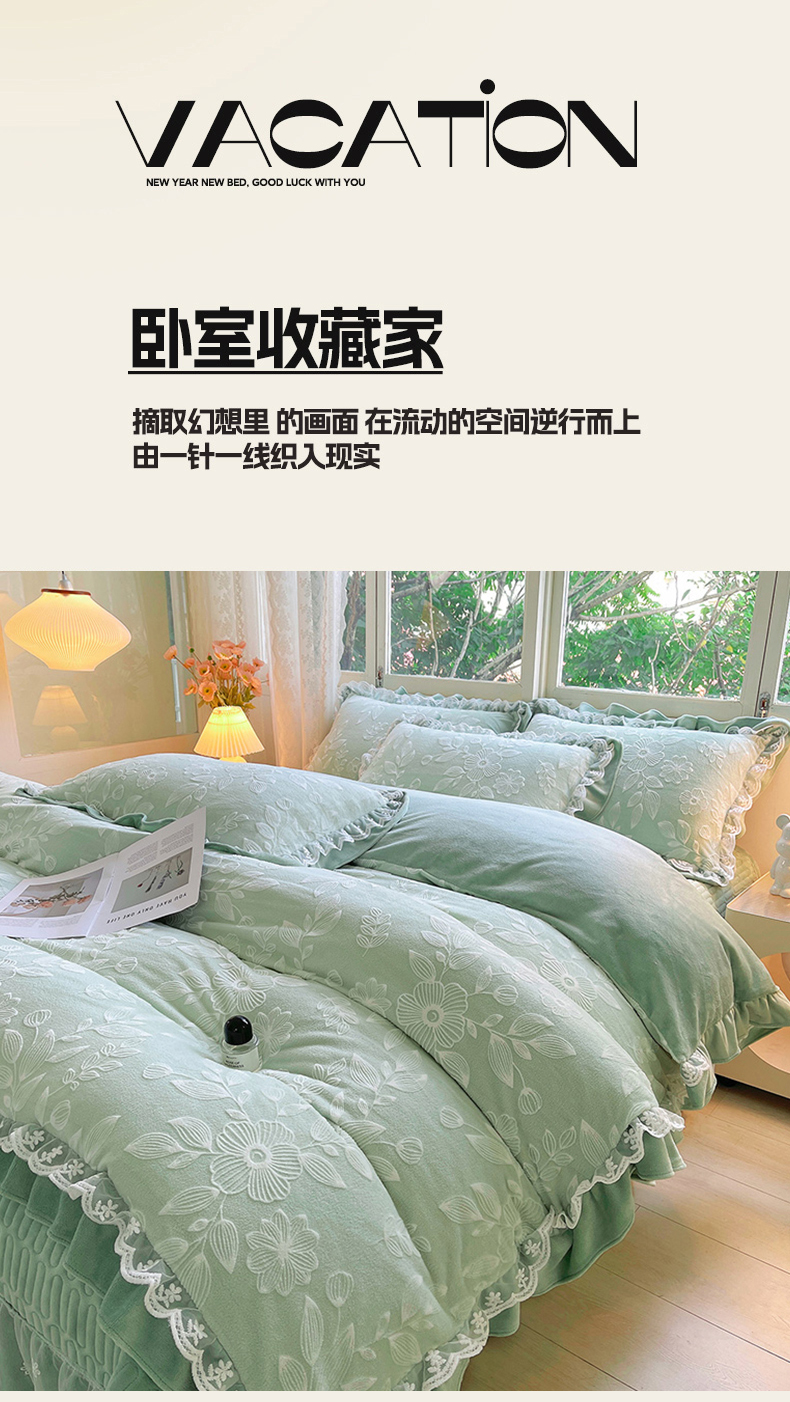 商品名称:梦之星 2025新款牛奶绒雕花床盖款床单款四件套 繁花-绿