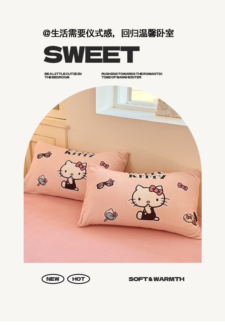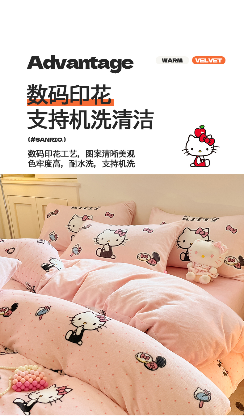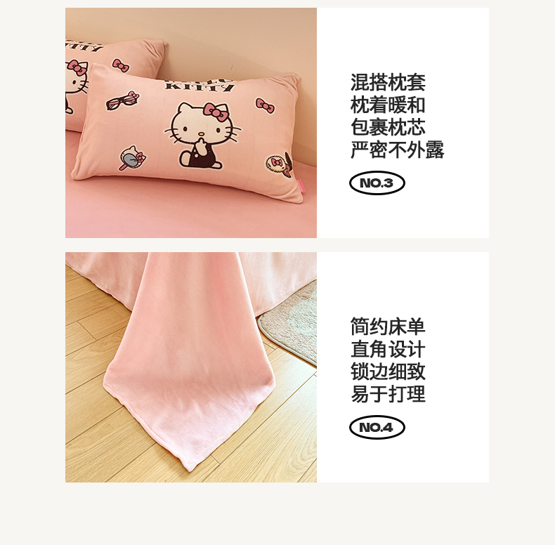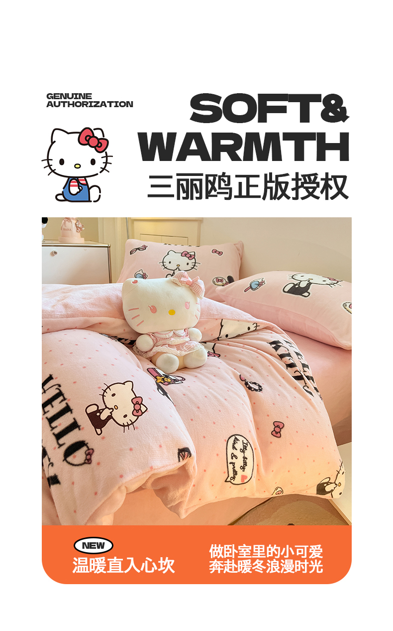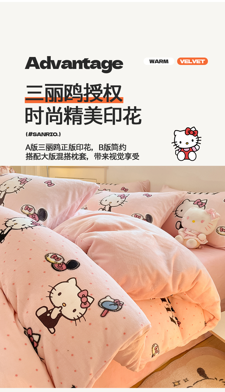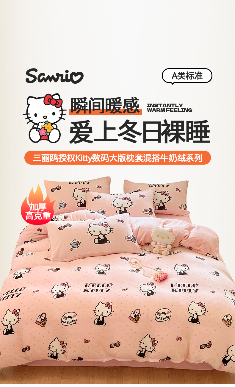 当前位置: 91家纺网 > 商品网购 > 床品套件 > 四件套 > 牛奶绒四件套 > 桃子家居 2025新品正版三丽鸥授权Kitty数码大版枕套混搭卡通加厚高克重牛奶绒系列四件套单品 绒三丽鸥-混搭美美KT