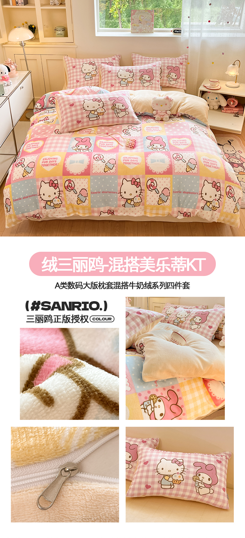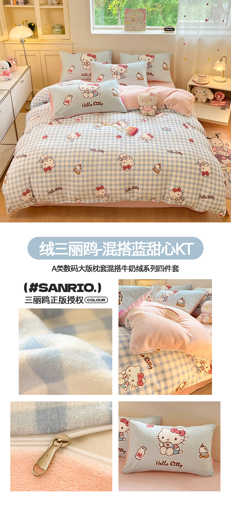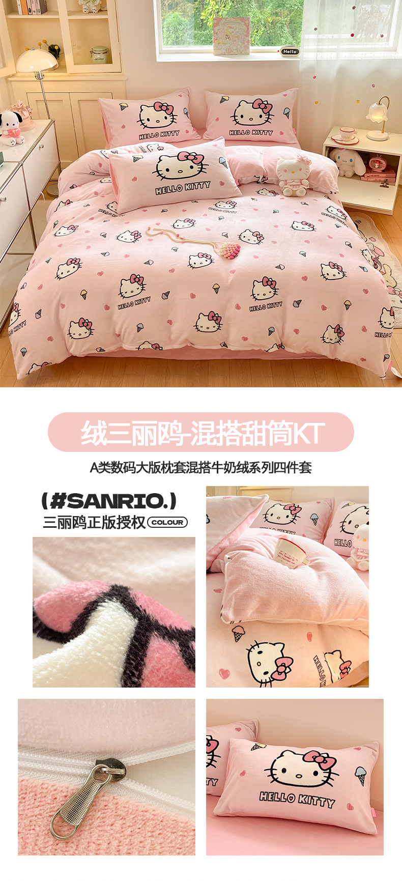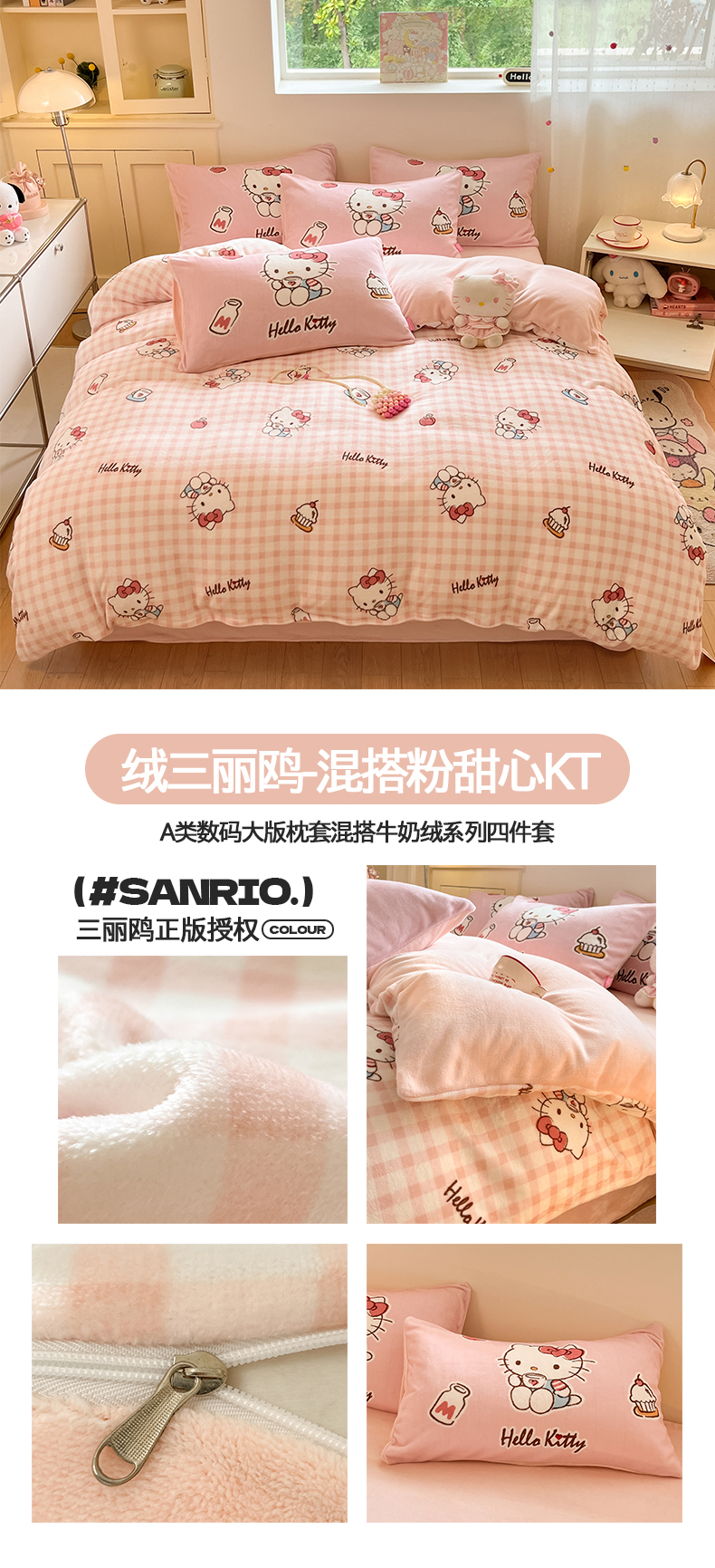 当前位置: 91家纺网 > 商品网购 > 床品套件 > 四件套 > 牛奶绒四件套 > 桃子家居 2025新品正版三丽鸥授权Kitty数码大版枕套混搭卡通加厚高克重牛奶绒系列四件套单品 绒三丽鸥-混搭美美KT