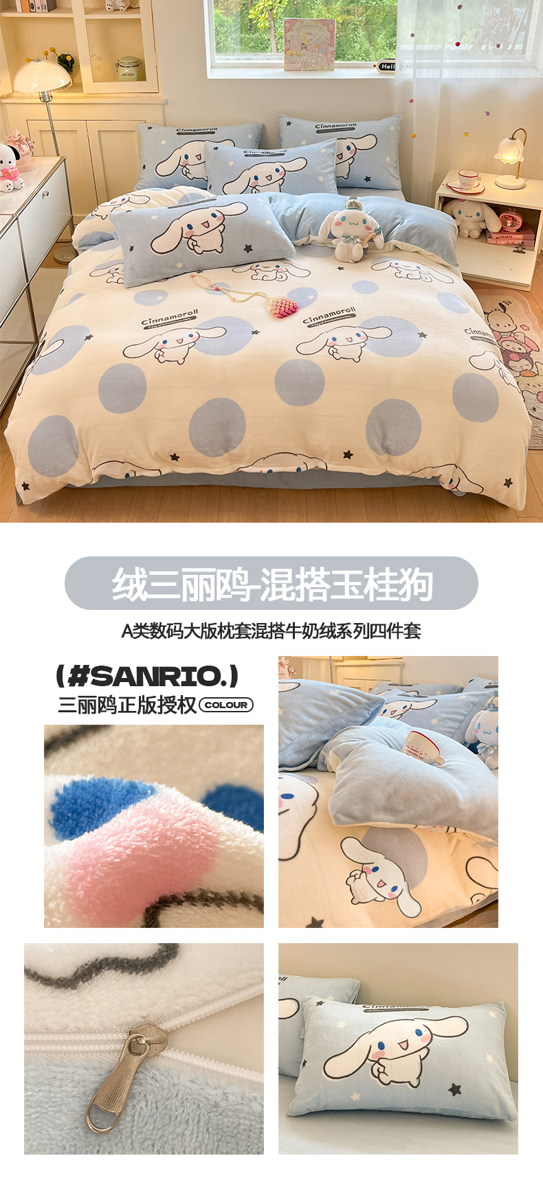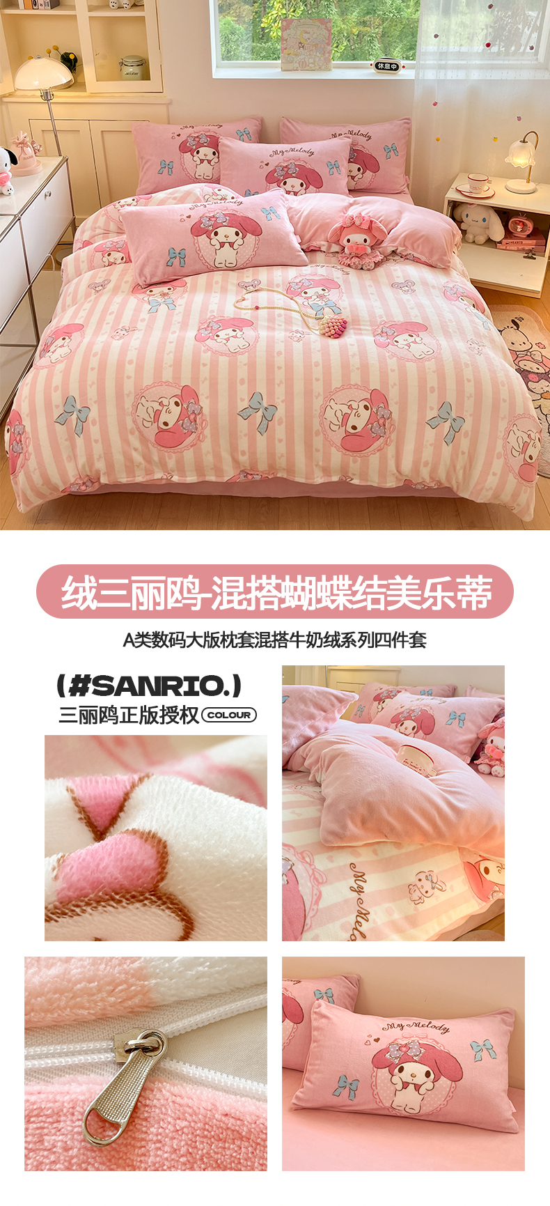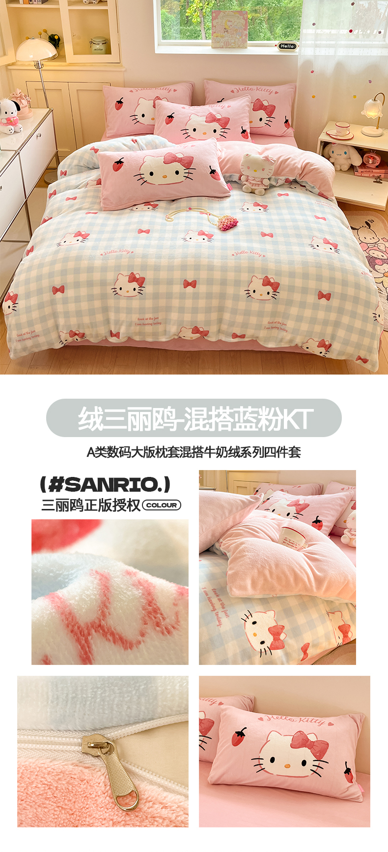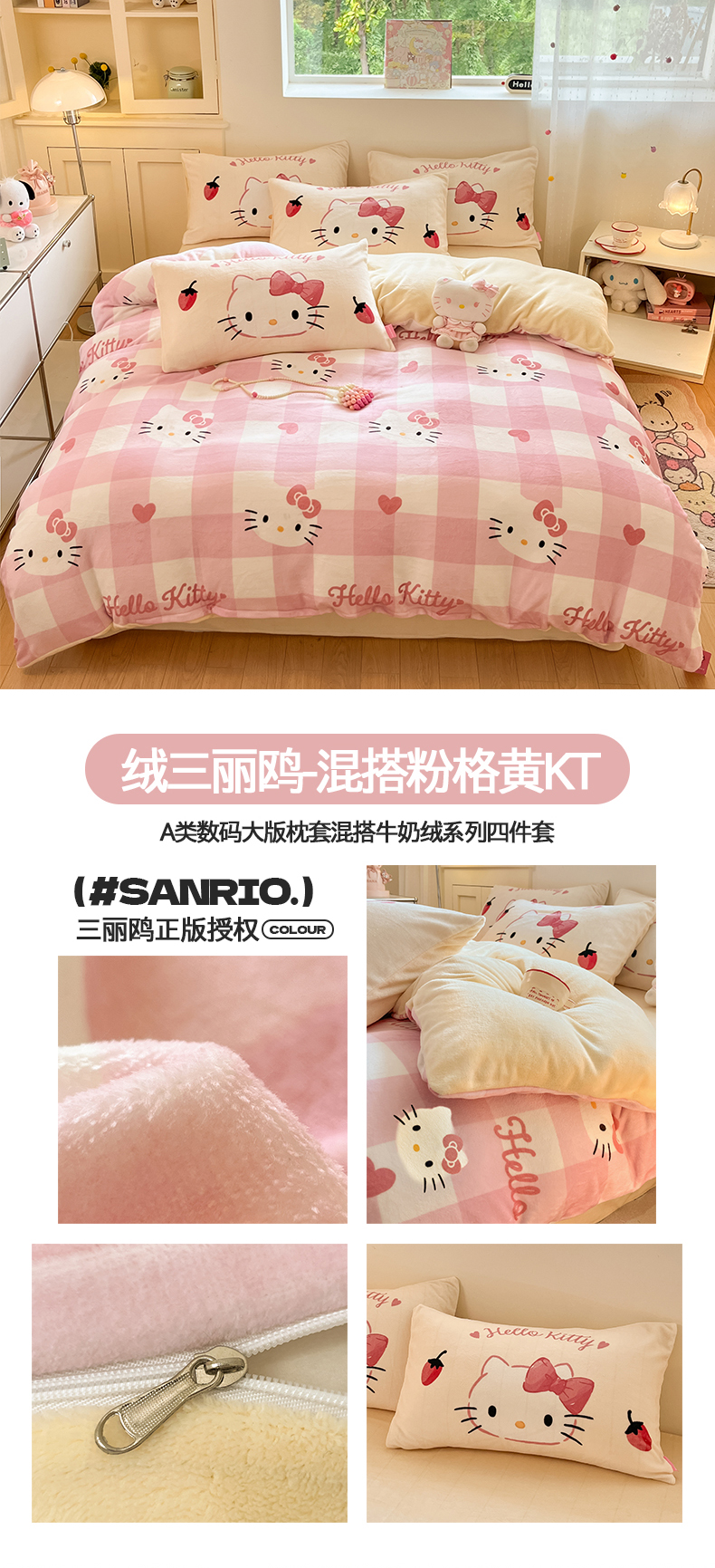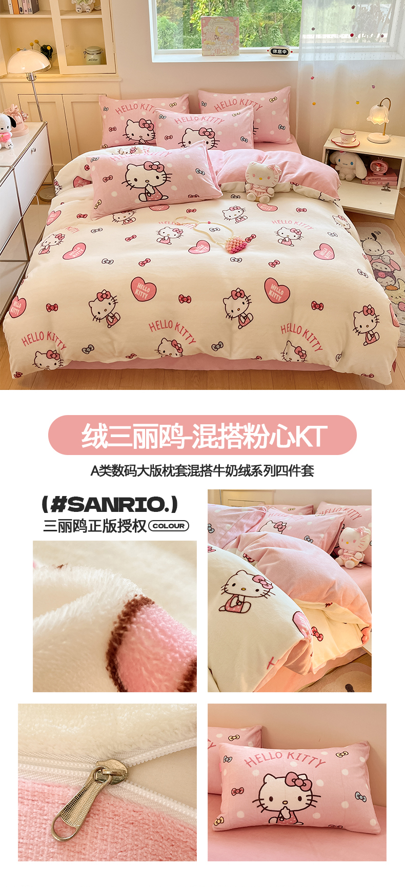 当前位置: 91家纺网 > 商品网购 > 床品套件 > 四件套 > 牛奶绒四件套 > 桃子家居 2025新品正版三丽鸥授权Kitty数码大版枕套混搭卡通加厚高克重牛奶绒系列四件套单品 绒三丽鸥-混搭美美KT