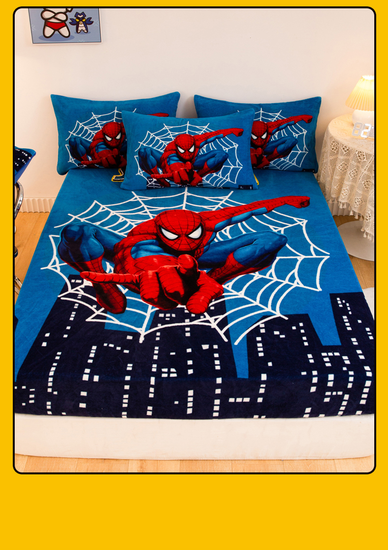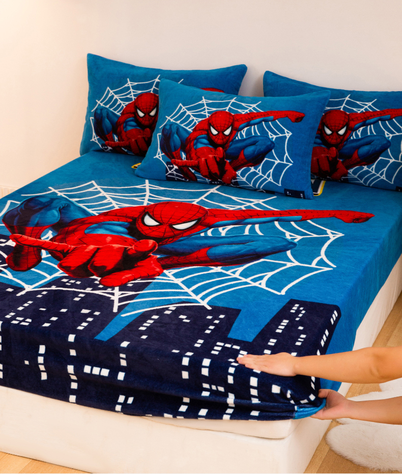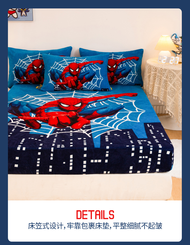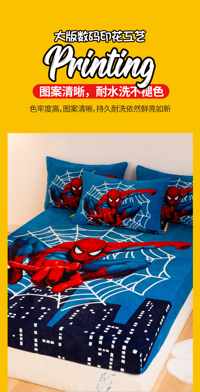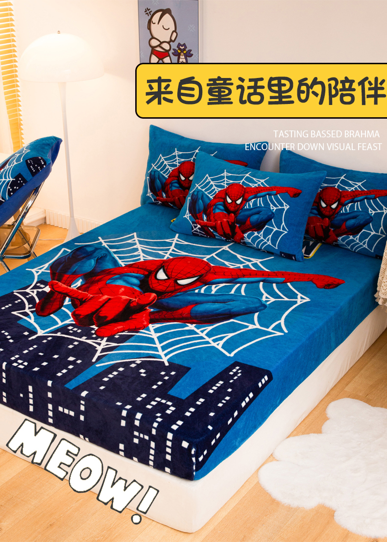 一电 外贸2025新款卡通珊瑚绒床笠单件床罩冬季加厚牛奶绒床垫保护罩全包床单套 蜘蛛侠