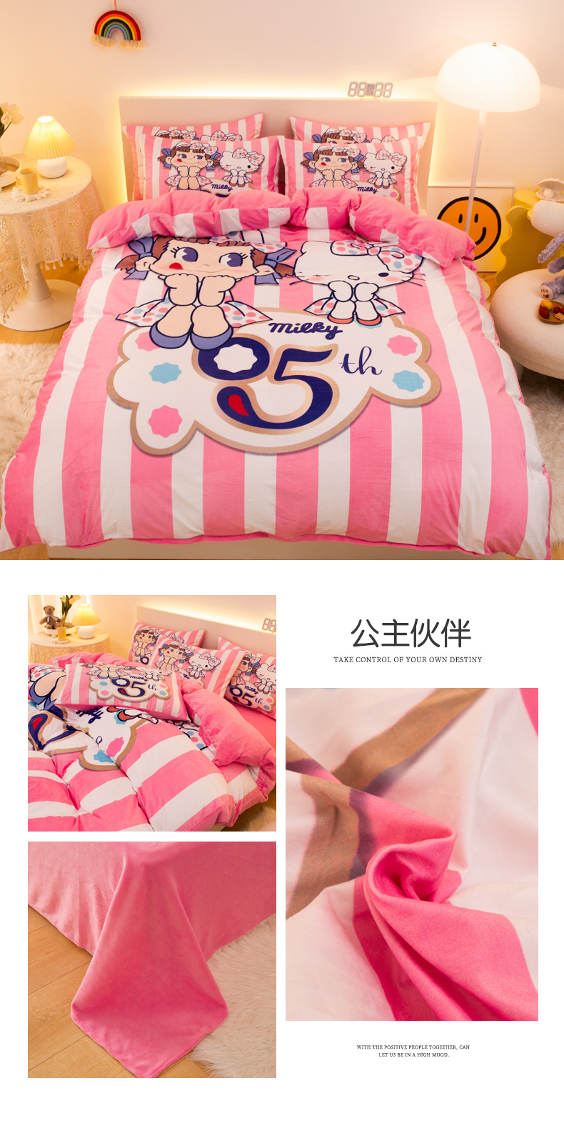 (总)一电 2025新款冬季双面牛奶珊瑚绒床上四件套法兰绒床品加绒被套床单三件套-第三批,公主库洛米,天使库洛米,甜筒库洛米,小兔子,圆点库洛米